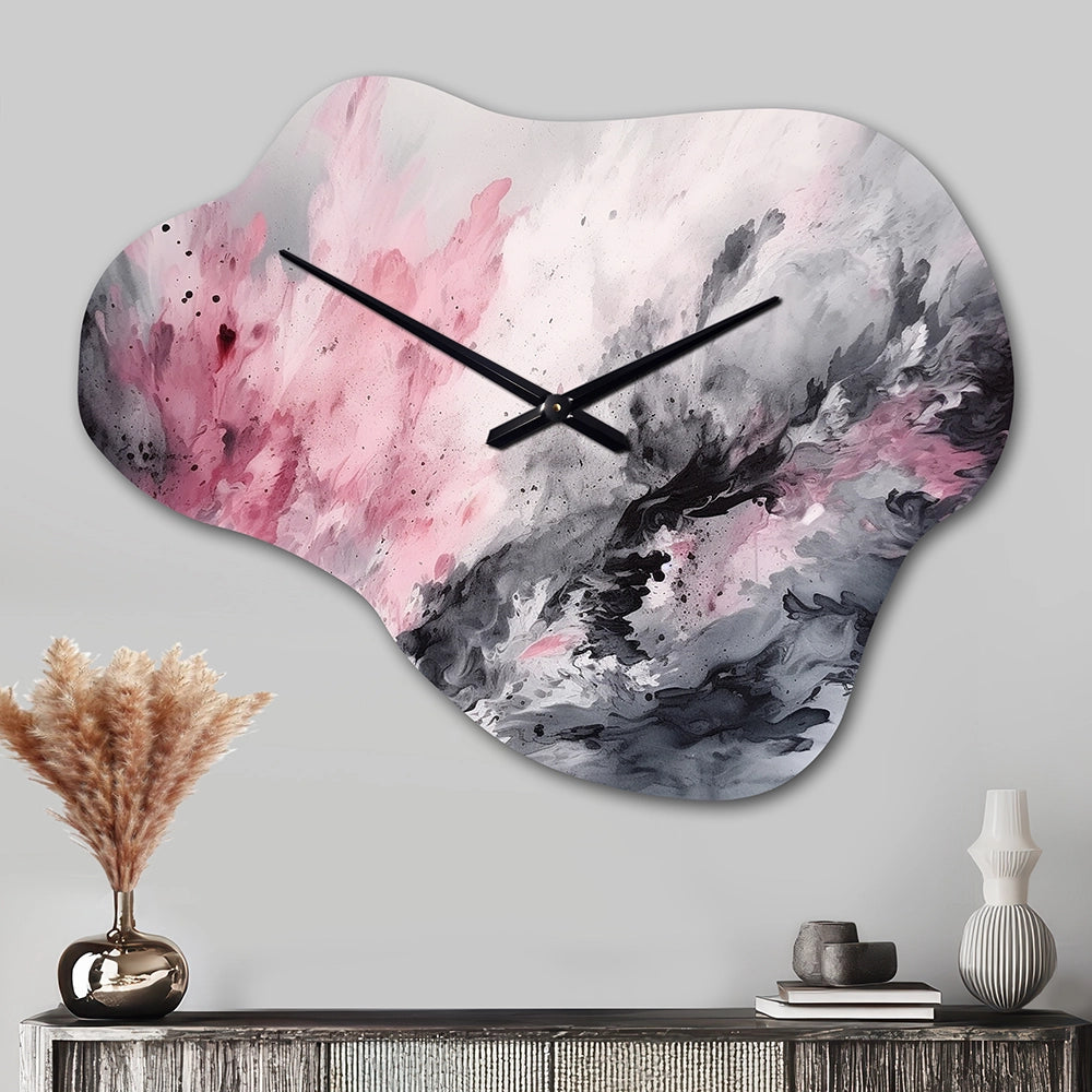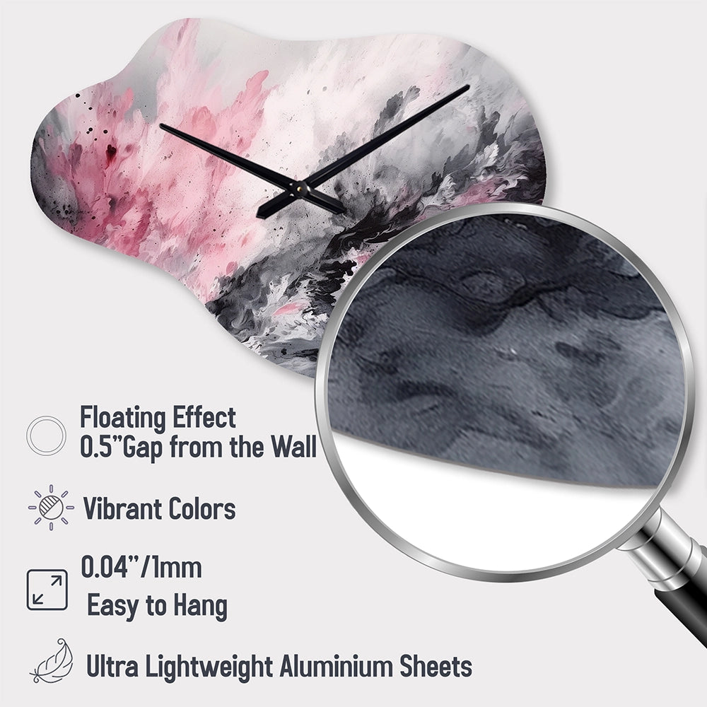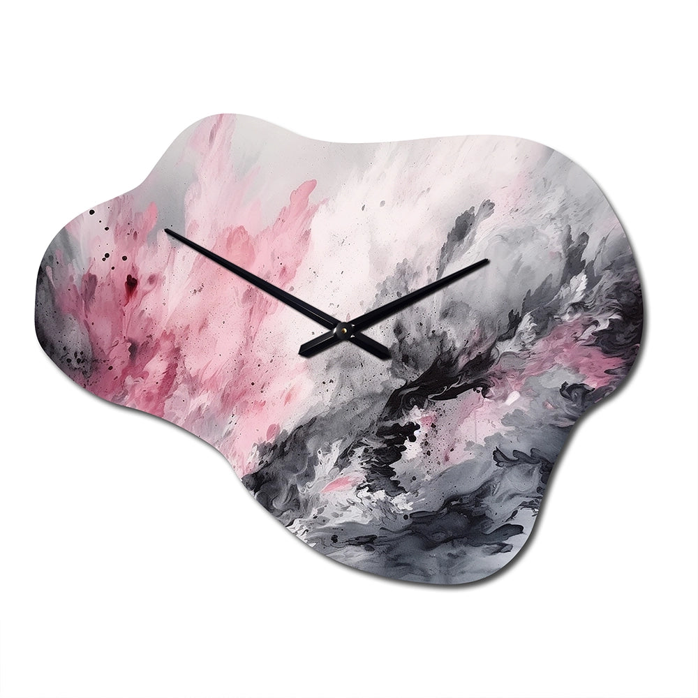 Evolving In Pink Grey Liquid Ink I - Asymmetric Metal Wall Clock