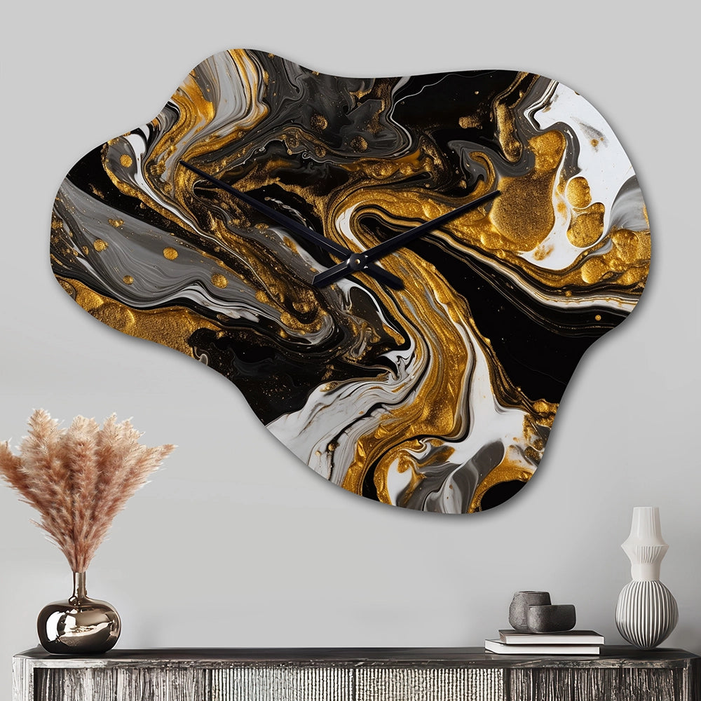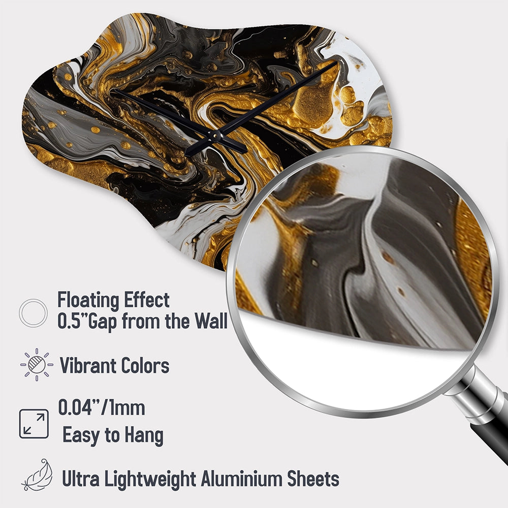 Gold Black Marbled Dreamscape II - Asymmetric Metal Wall Clock