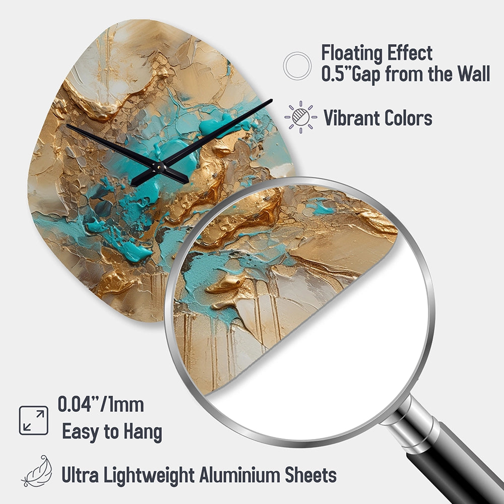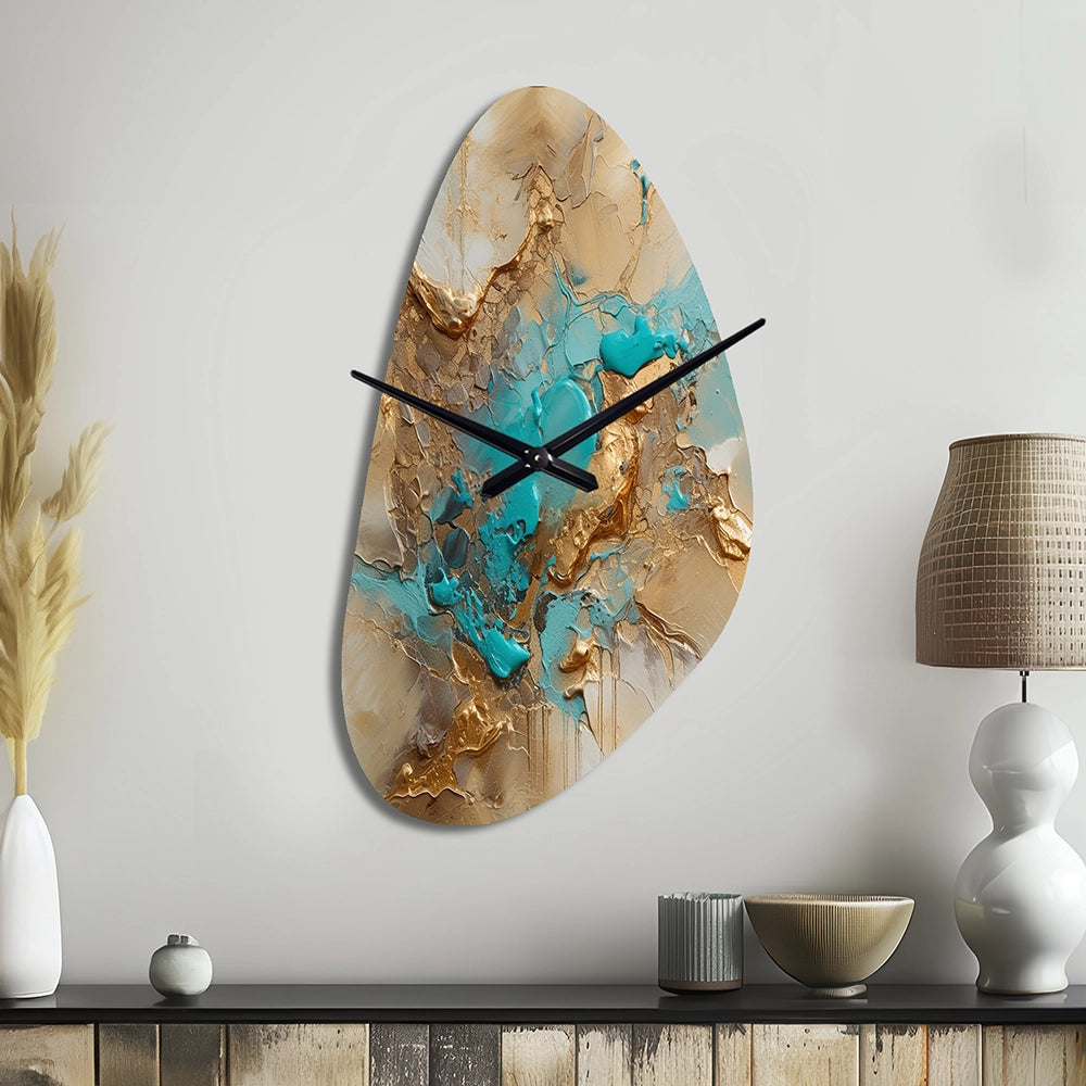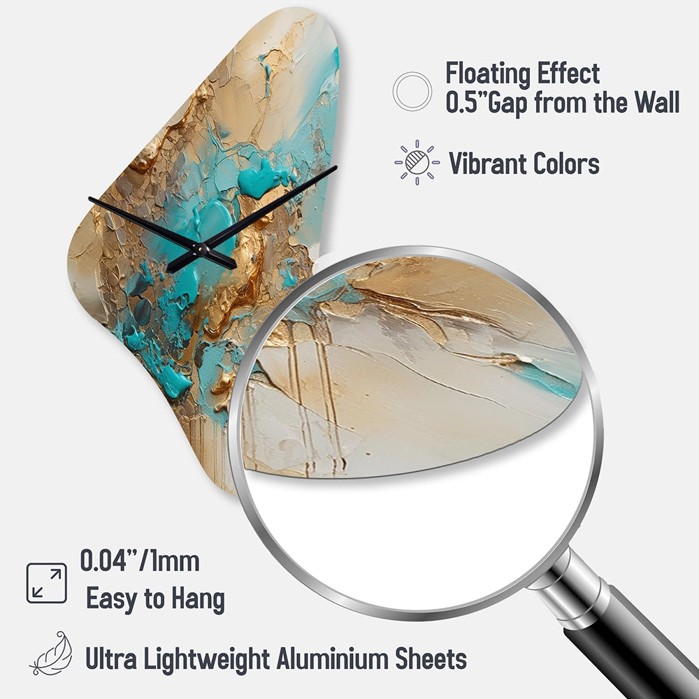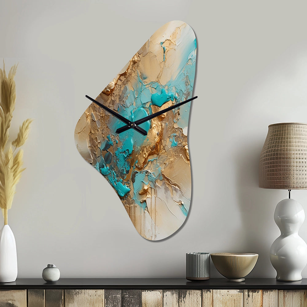 Elevate your space with this Modern asymmetrical metal wall Clock. Our handcrafted metal wall sculptures combine modern design with artistic elegance, creating a striking focal point in any room. This asymmetric metal wall Clock features unique, irregular shapes that bring dynamic movement and depth to your walls. Perfect for Abstract decor, these Gold irregular metal wall sculptures are printed on aluminum panel, with extra gloss ensuring long-lasting beauty. Ideal for living rooms, offices decor, or entrance, this statement piece adds a bold, Abstract touch to any decor.