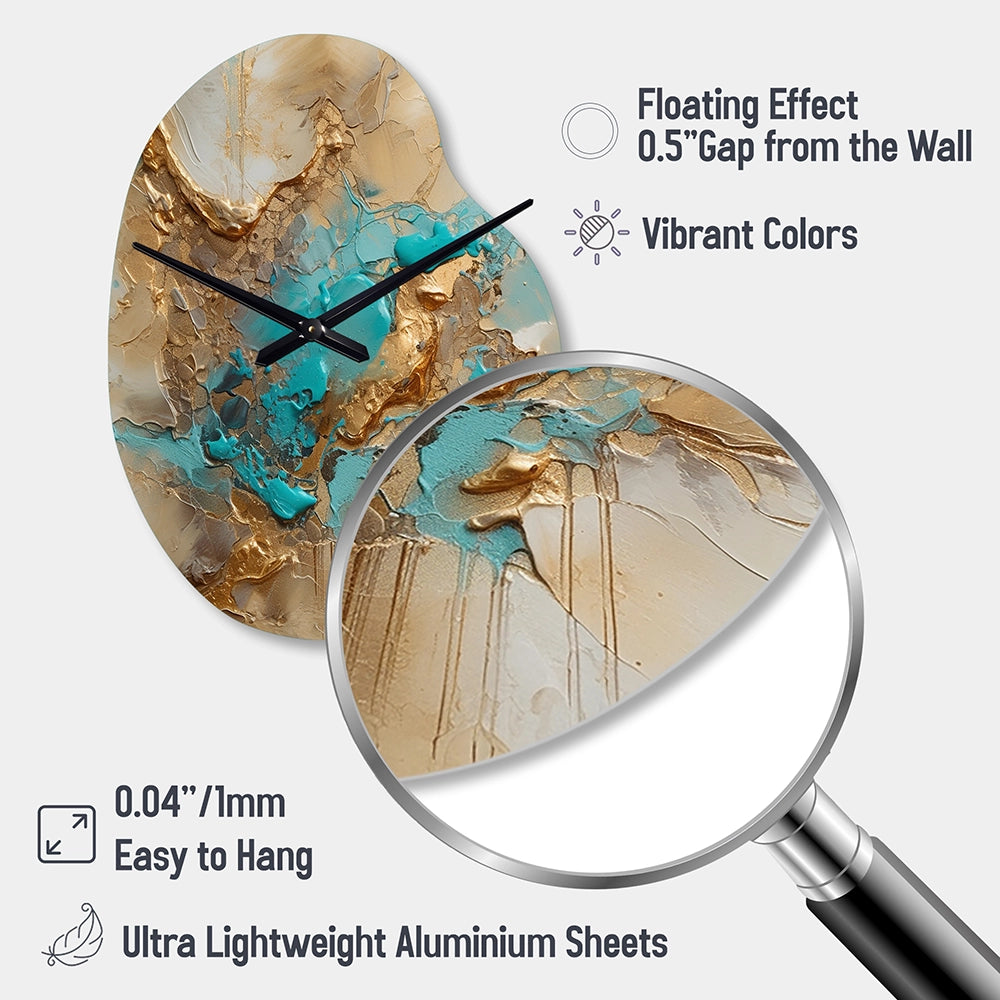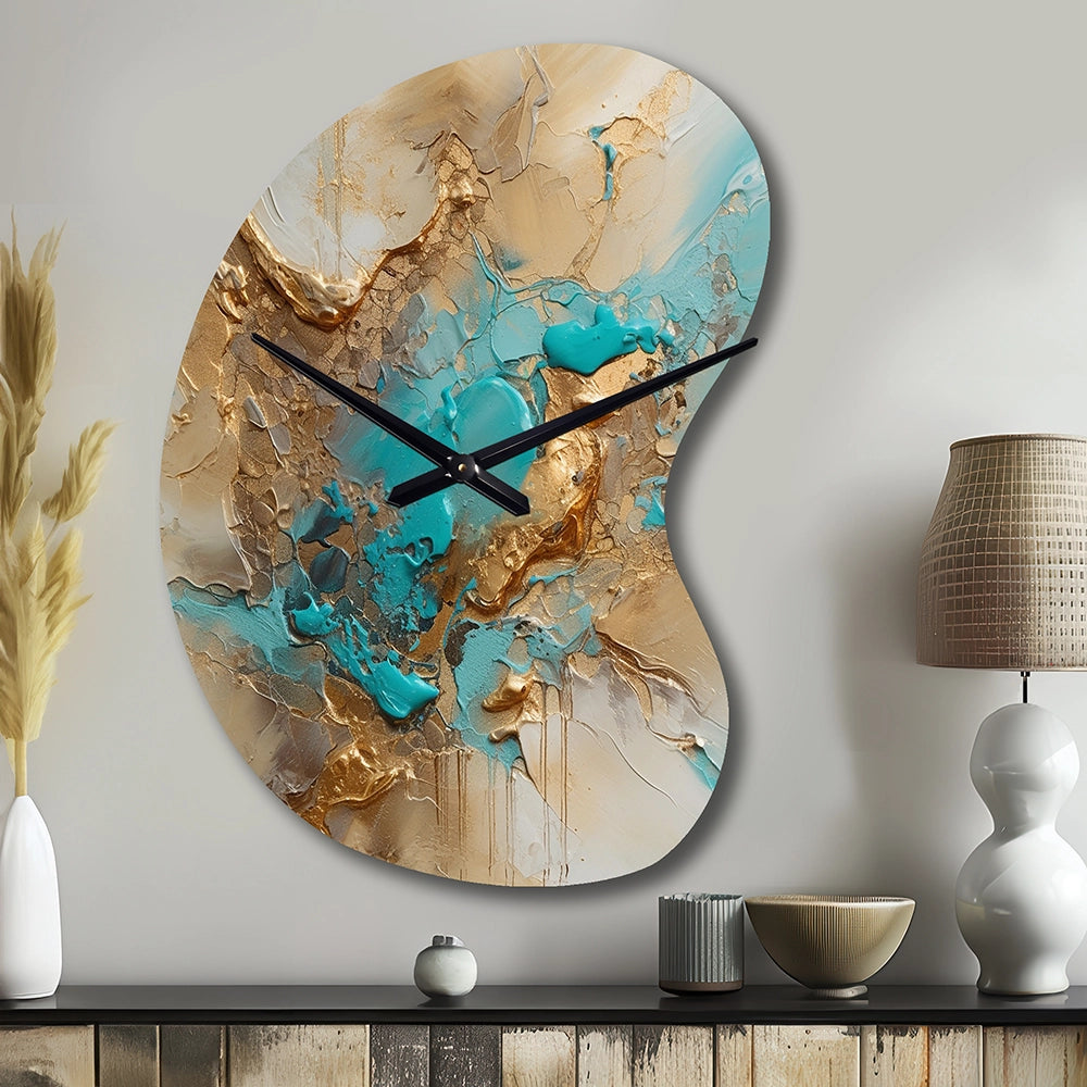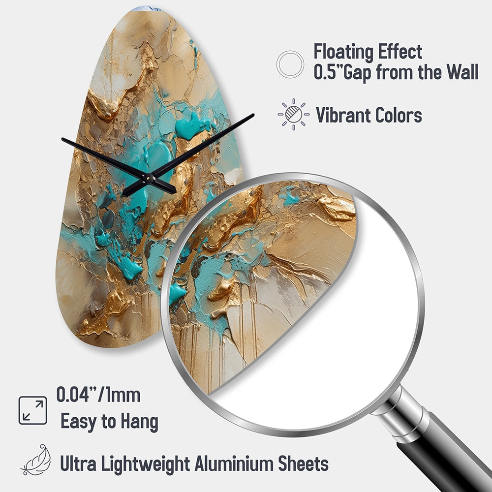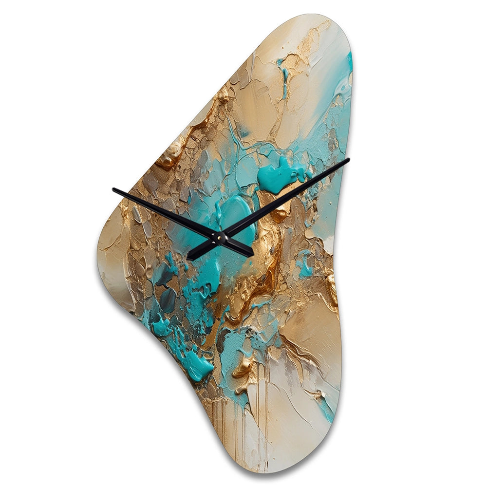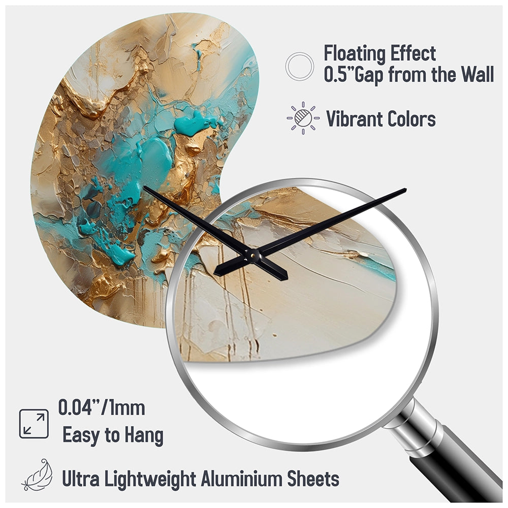 Elevate your space with this Modern asymmetrical metal wall Clock. Our handcrafted metal wall sculptures combine modern design with artistic elegance, creating a striking focal point in any room. This asymmetric metal wall Clock features unique, irregular shapes that bring dynamic movement and depth to your walls. Perfect for Abstract decor, these Gold irregular metal wall sculptures are printed on aluminum panel, with extra gloss ensuring long-lasting beauty. Ideal for living rooms, offices decor, or entrance, this statement piece adds a bold, Abstract touch to any decor.