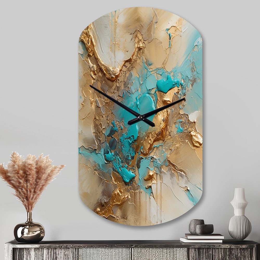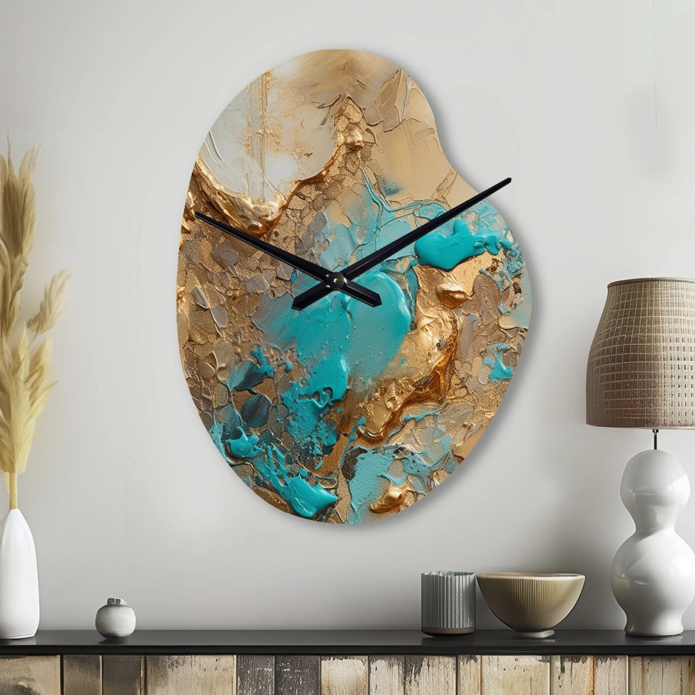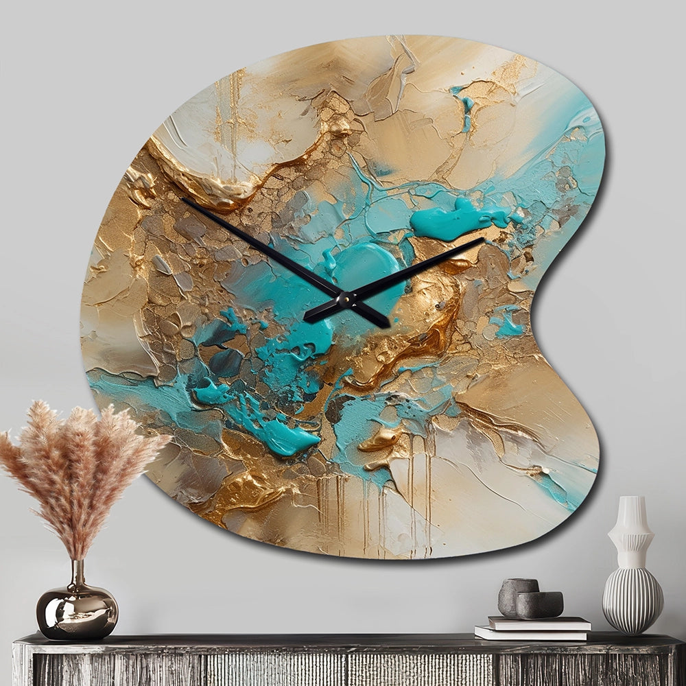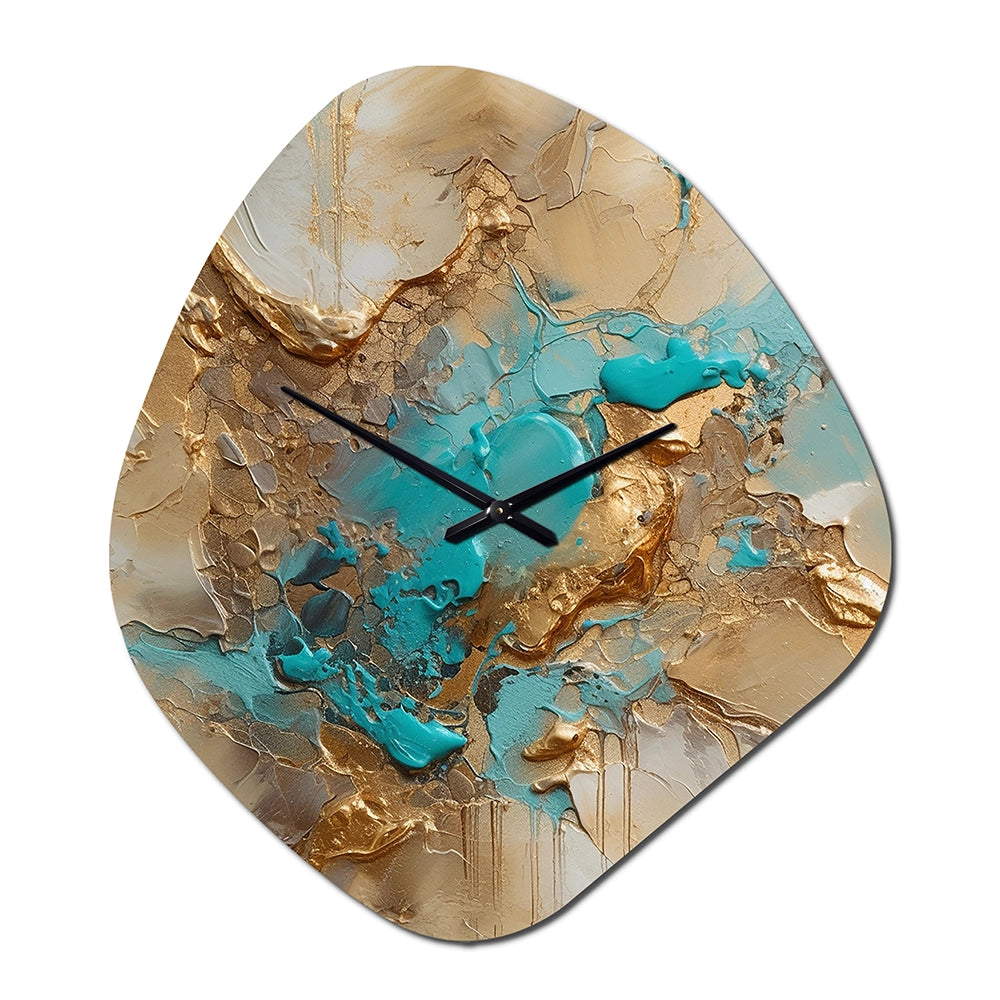 Elevate your space with this Modern asymmetrical metal wall Clock. Our handcrafted metal wall sculptures combine modern design with artistic elegance, creating a striking focal point in any room. This asymmetric metal wall Clock features unique, irregular shapes that bring dynamic movement and depth to your walls. Perfect for Abstract decor, these Gold irregular metal wall sculptures are printed on aluminum panel, with extra gloss ensuring long-lasting beauty. Ideal for living rooms, offices decor, or entrance, this statement piece adds a bold, Abstract touch to any decor.