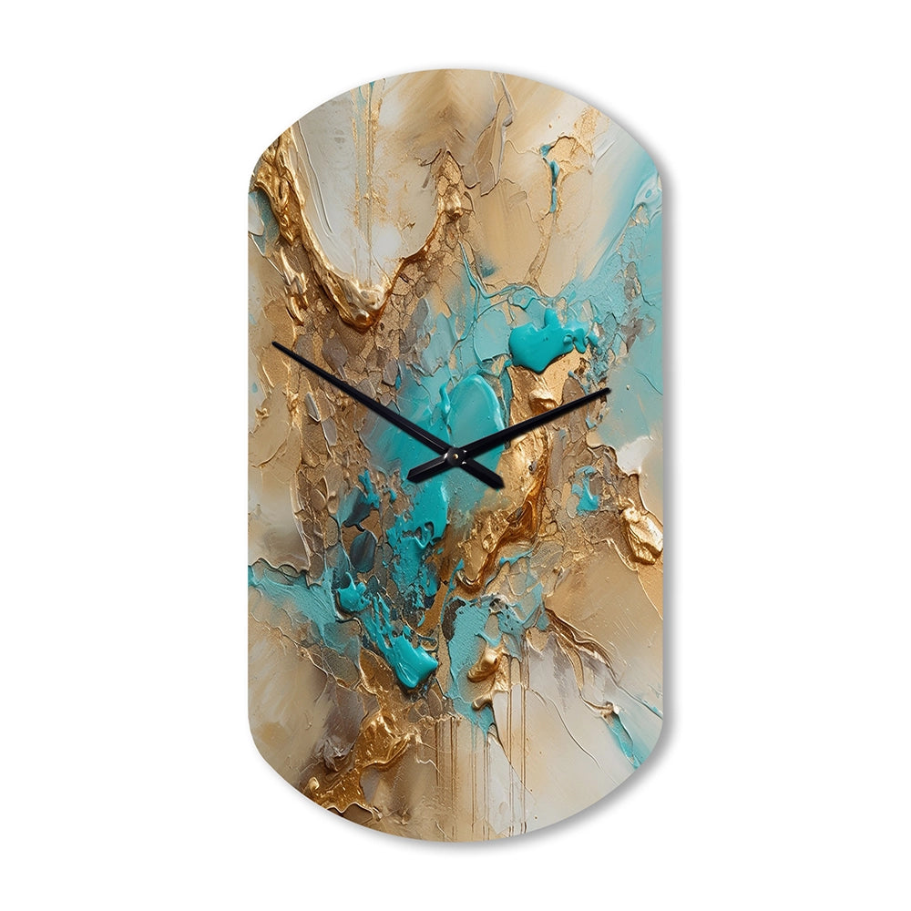 Gold Blue Transcendent Liquid Ink II - Asymmetric Metal Wall Clock