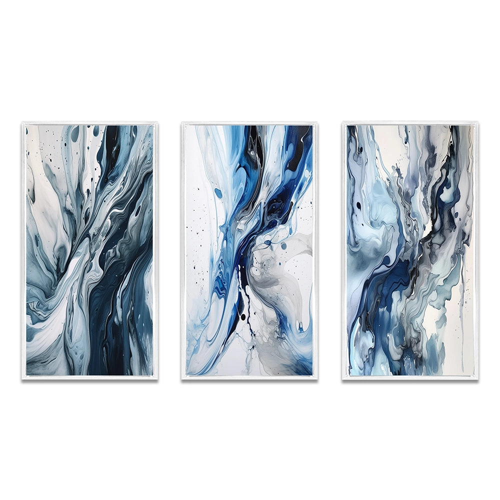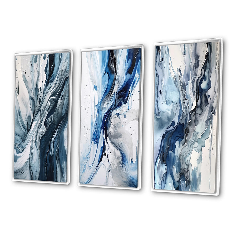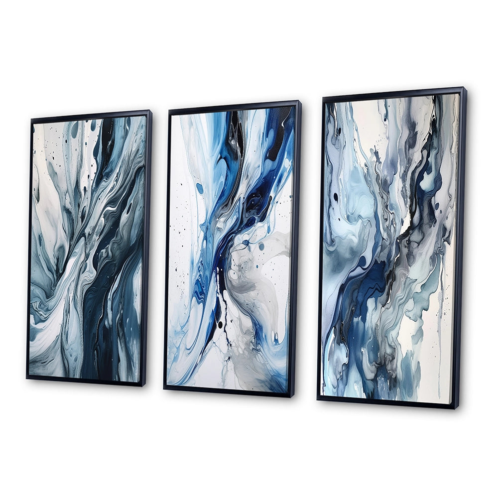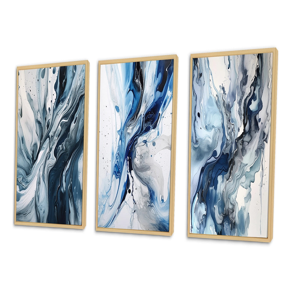 Abstract Wall Art Set - Blue and Grey Ethereal Elixir II - 3 Pieces
