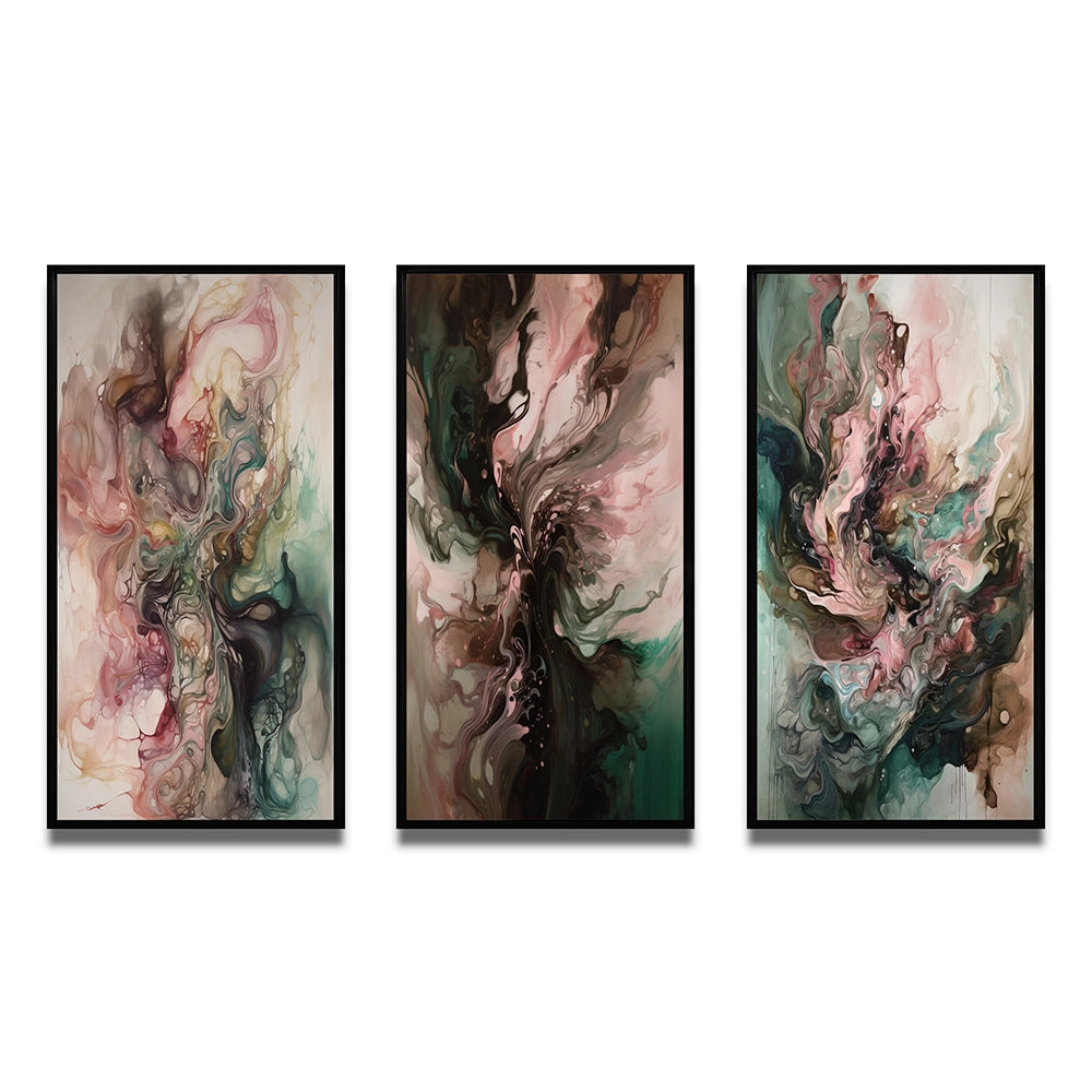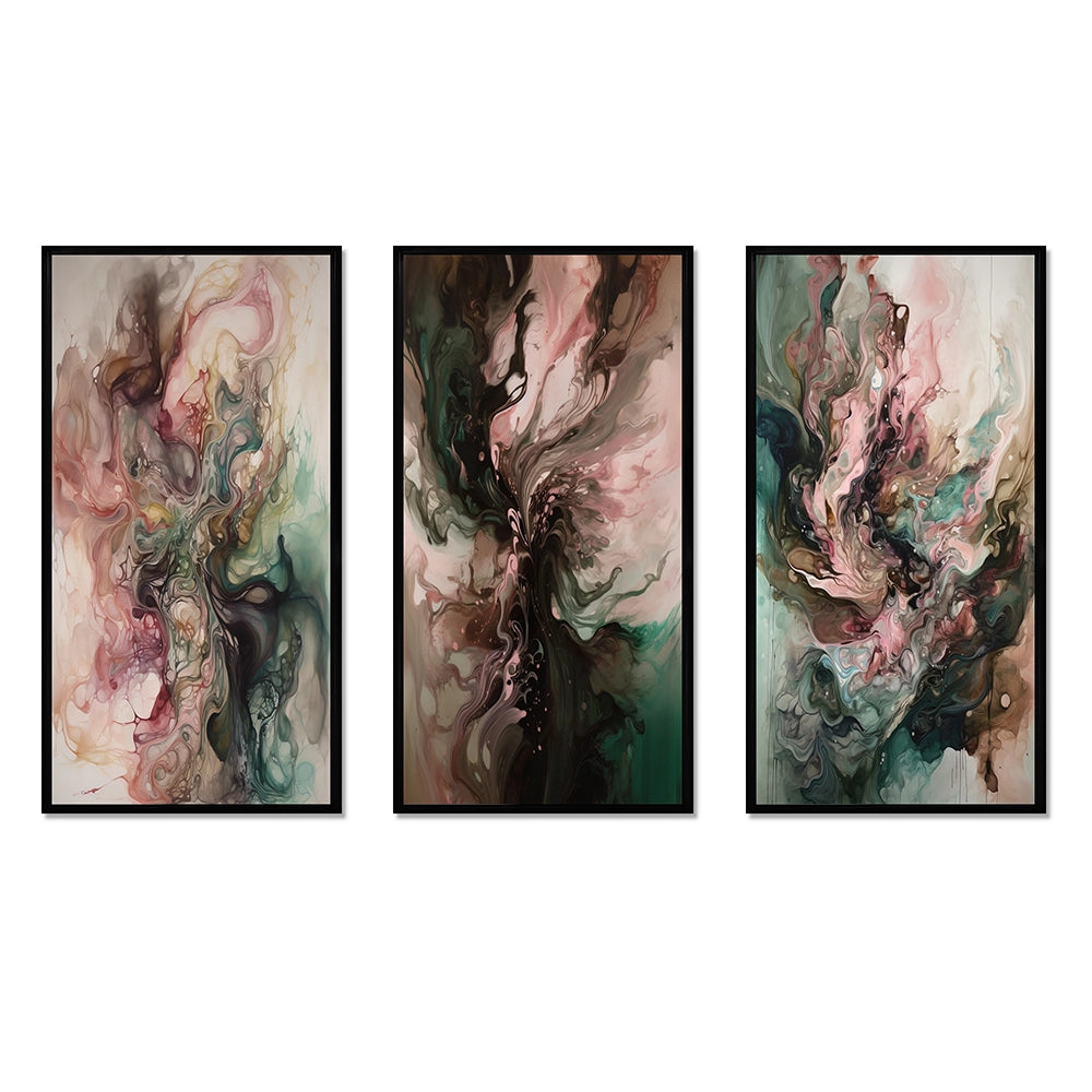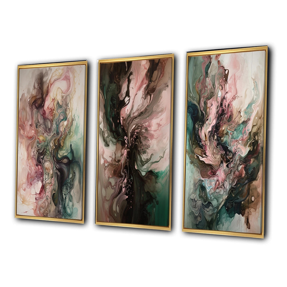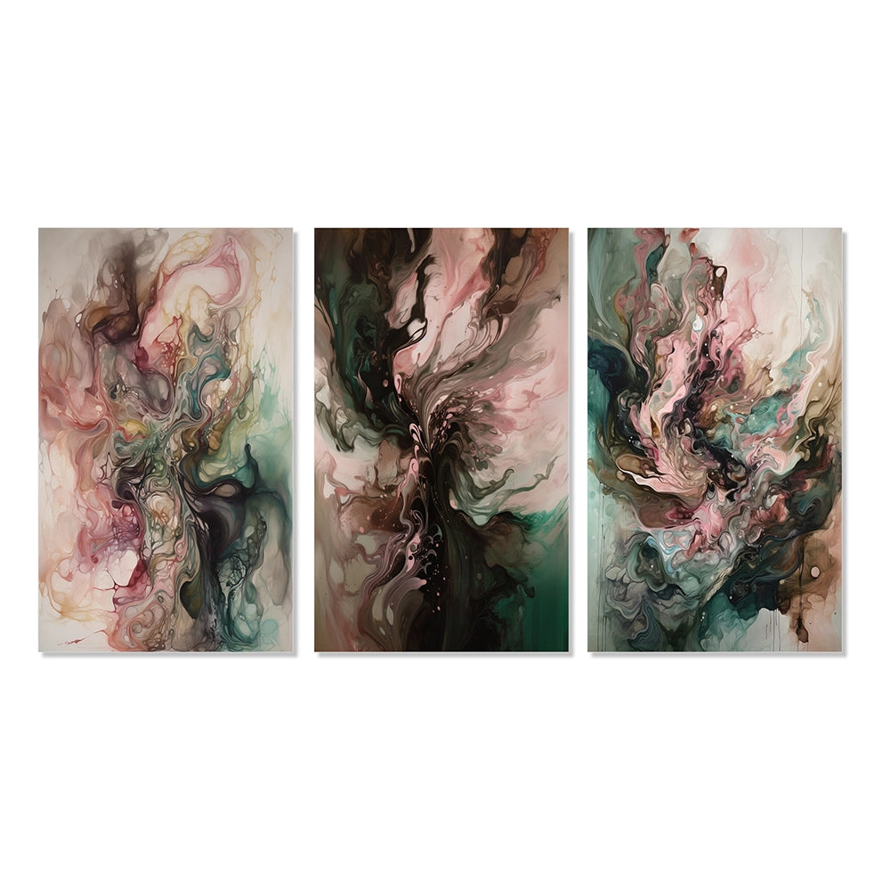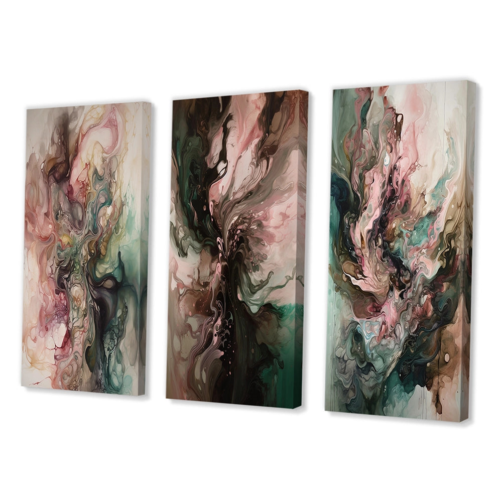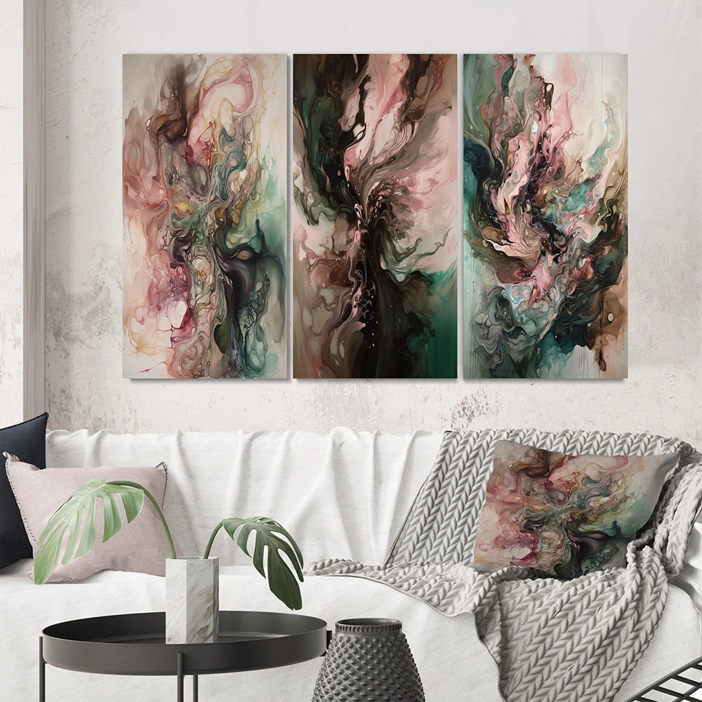 Modern Wall Art Set - Pink Green Inner Worlds Of Marble III - 3 Pieces