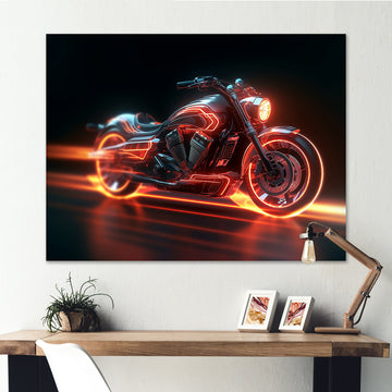 Neon Light Strips Motorcycle - Car/Van Canvas Wall Art