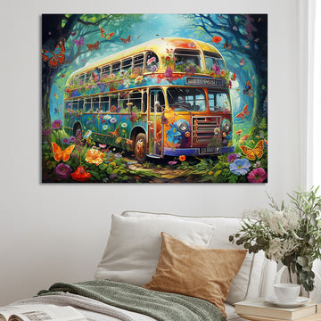 Magic Hippie Bus In The Flower Forest - Car Van Canvas Wall Art