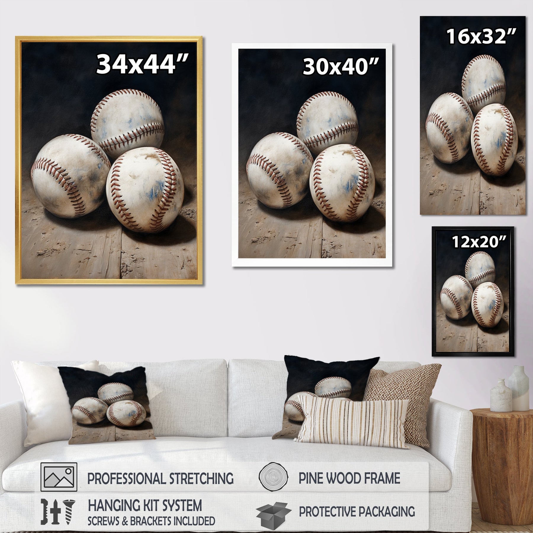 This beautiful Baseball Subtle Double Play Canvas Art is printed using the highest quality fade-resistant ink on canvas. Every one of our fine art giclee canvas prints is printed on premium quality cotton canvas, using the finest quality inks which will not fade over time. Each giclee print is stretched tightly over a 1-inch wood sub frame for small size prints or a 1.5-inch wood subframe for large size prints ensuring the canvas is taught and does not buckle. This canvas art print is gallery-wrapped (the design continues on the sides), giving it a real art gallery feel. All of our canvas prints are carefully packaged with plastic protection, fragile labeling, and sturdy boxes to ensure safe delivery. Every canvas print arrives ready to hang on the wall, with the hanging kits included.