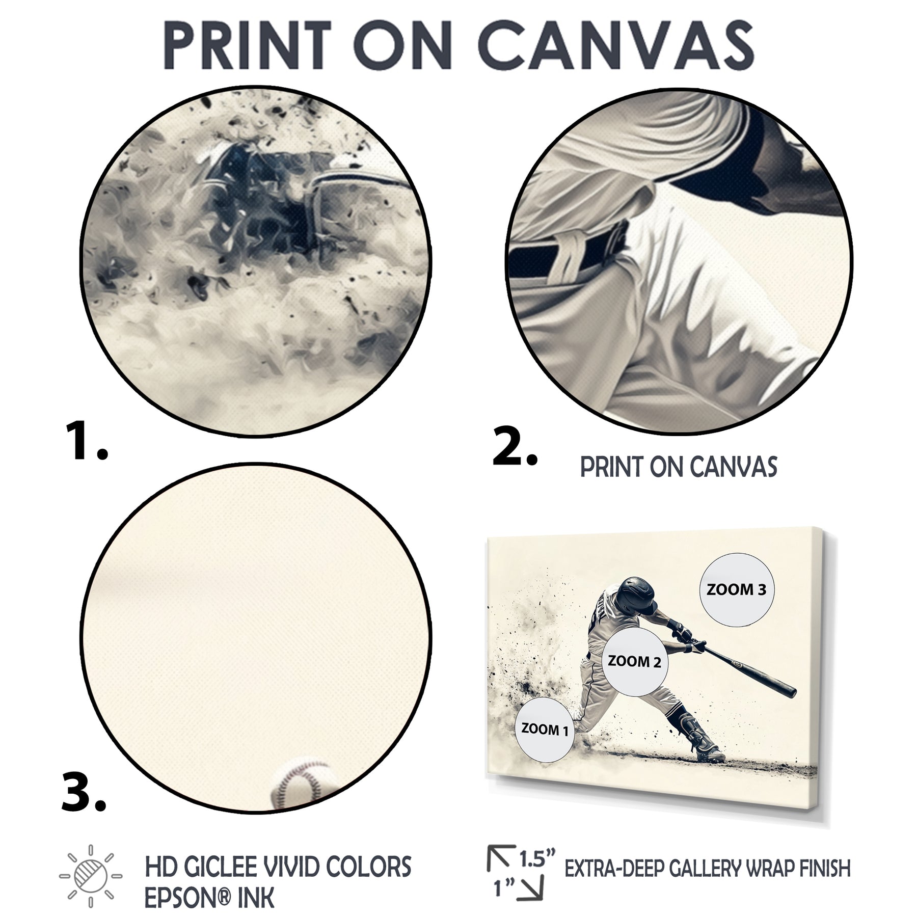 This beautiful Grey Baseball Minimal Swing Ii Accented With Canvas Art is printed using the highest quality fade-resistant ink on canvas. Every one of our fine art giclee canvas prints is printed on premium quality cotton canvas, using the finest quality inks which will not fade over time. Each giclee print is stretched tightly over a 1-inch wood sub frame for small size prints or a 1.5-inch wood subframe for large size prints ensuring the canvas is taught and does not buckle. This canvas art print is gallery-wrapped (the design continues on the sides), giving it a real art gallery feel. All of our canvas prints are carefully packaged with plastic protection, fragile labeling, and sturdy boxes to ensure safe delivery. Every canvas print arrives ready to hang on the wall, with the hanging kits included.