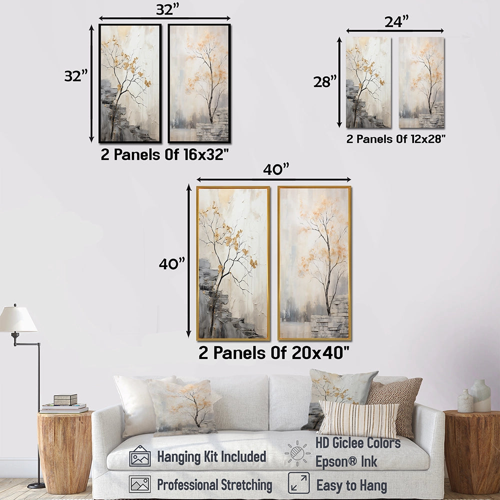 Forest River Canvas Wall Art Set of 2- Minimalism Calm River Forest