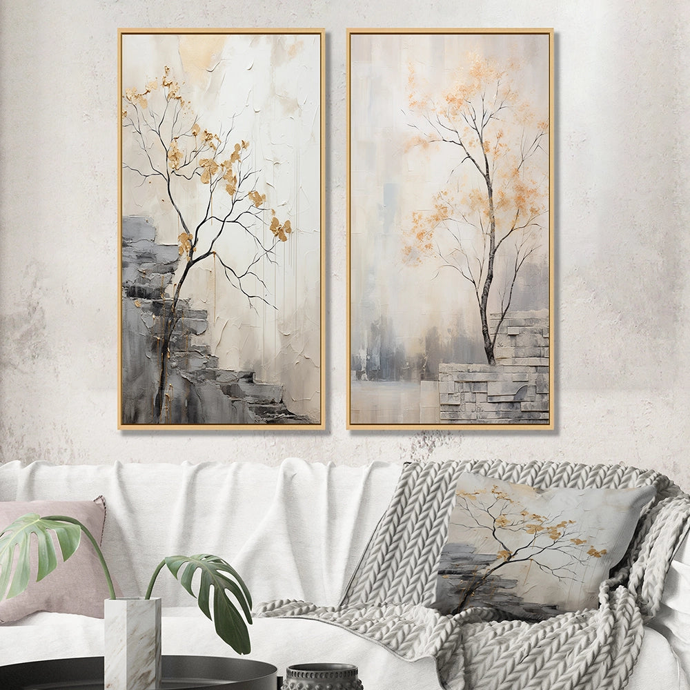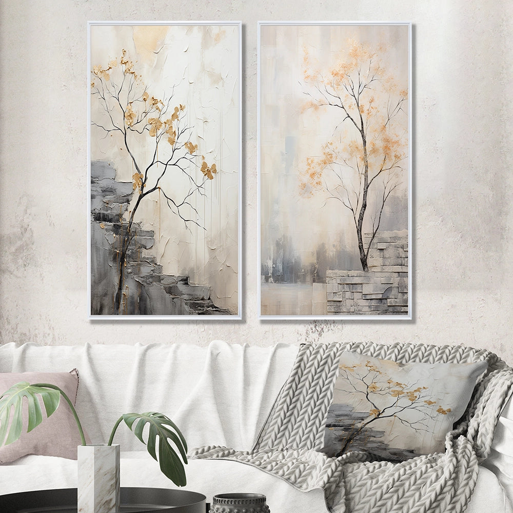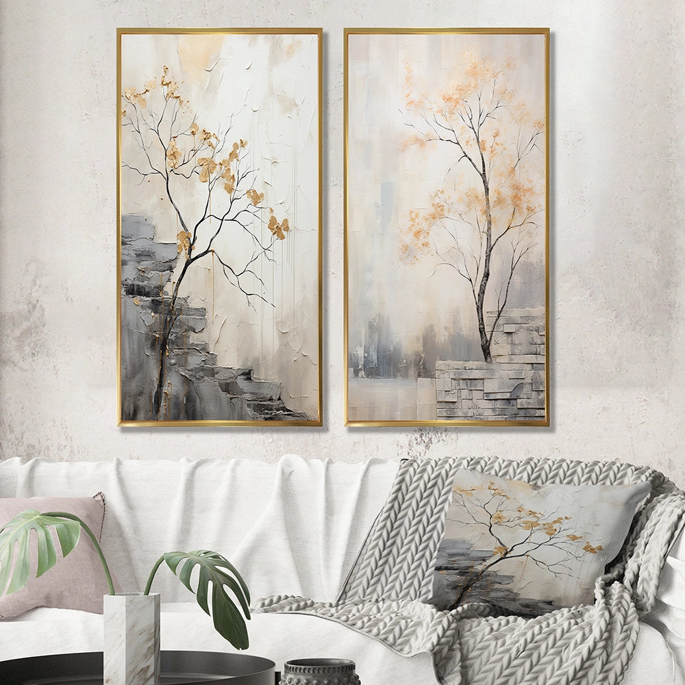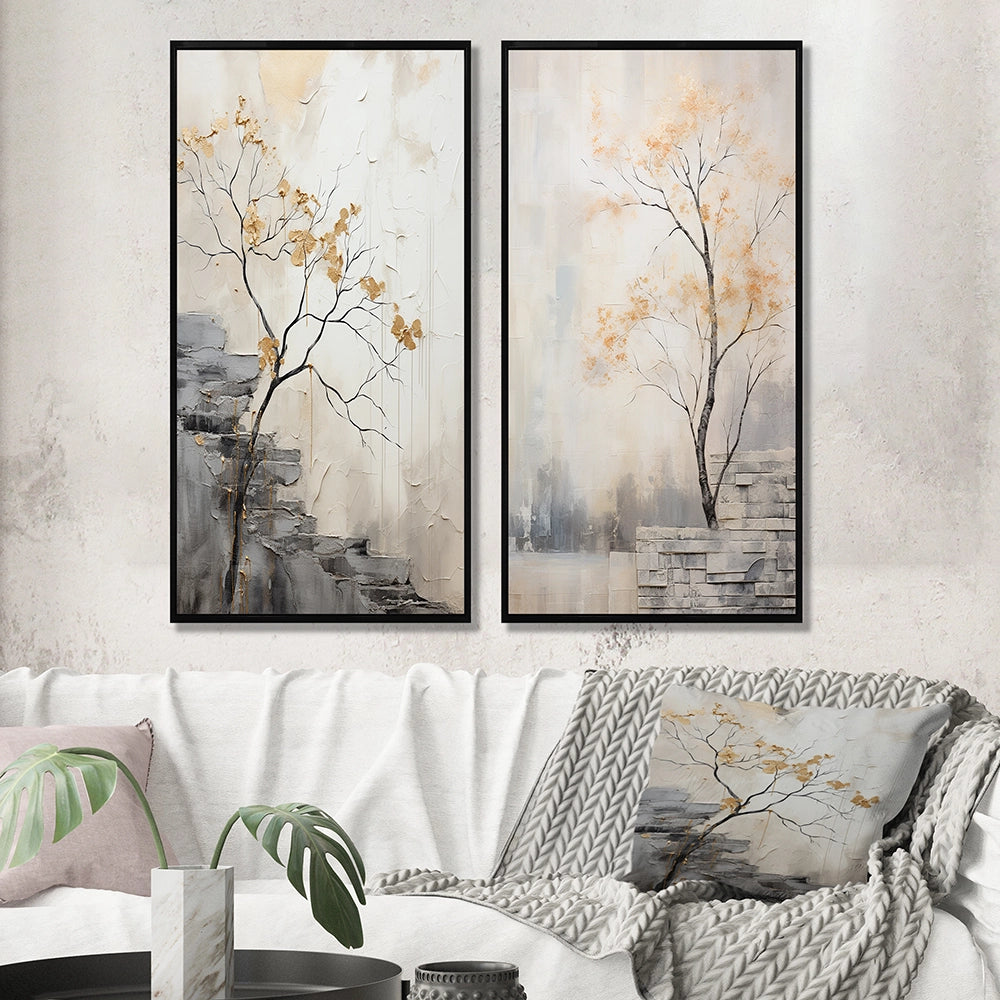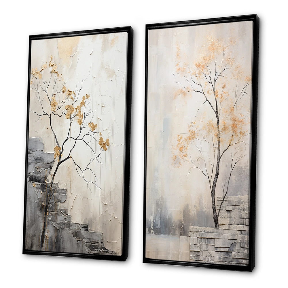 This beautiful Minimalism Calm River Forest Collage Set of 2 Wall art is printed on premium quality cotton canvas using the finest fade-resistant ink. With options like Wrapped Canvas and Floater Framed Wall Decor, we offer a versatile range to cater to your unique aesthetic preferences. The Wrapped Canvas Art is stretched tautly over a sturdy wooden frame, giving your artwork a sleek, borderless appearance. For those who desire a touch of elegance and depth, our floater-framed canvas art is the ideal choice. The Canvas set is delicately mounted within a floating frame, creating a striking visual contrast between the artwork and the frame. Our collection offers an array of frame colors to complement your interior design, Ensuring that your wall art set seamlessly integrates with your home or office decor.