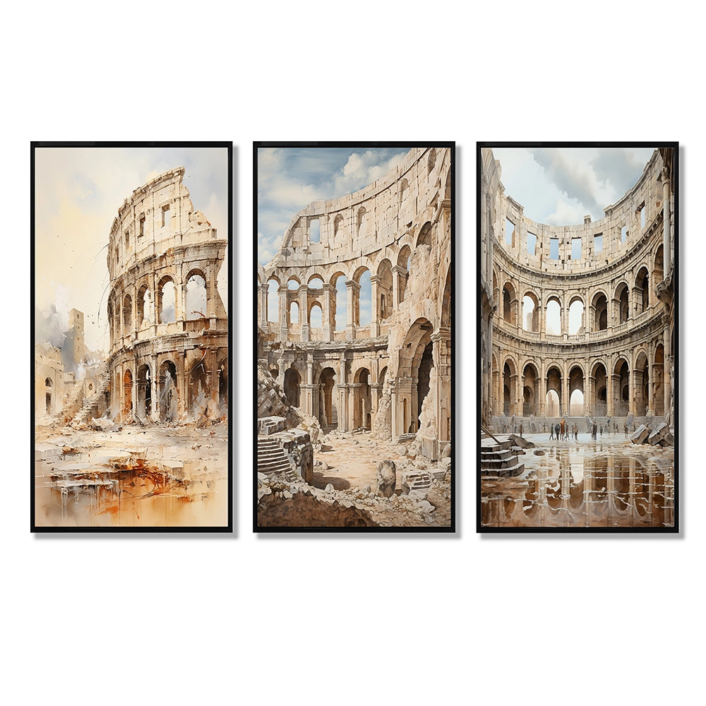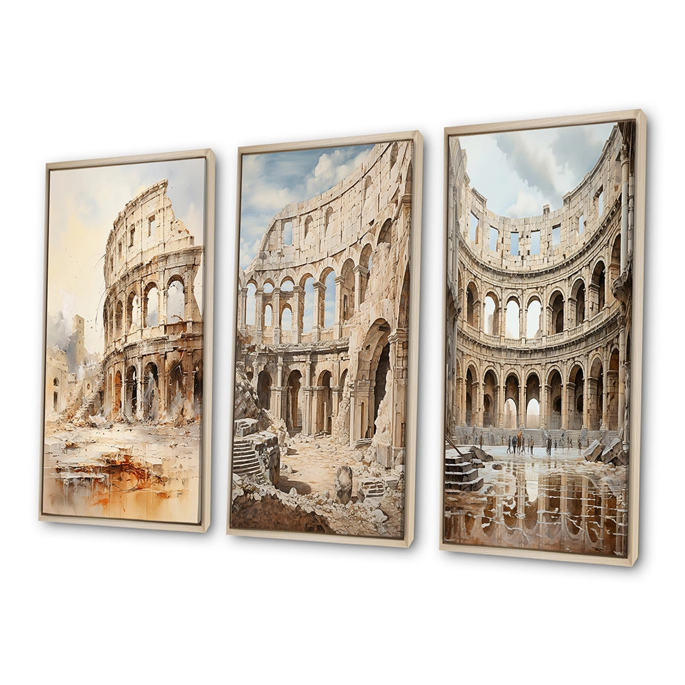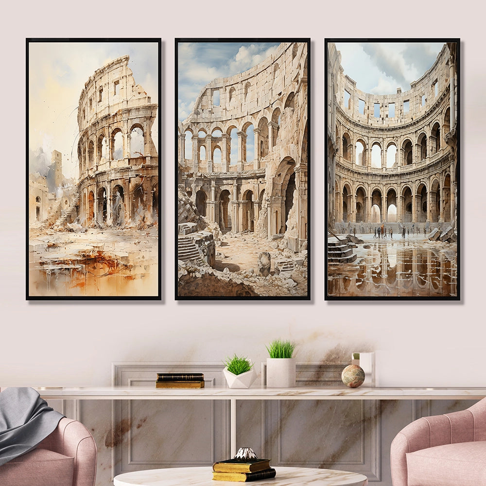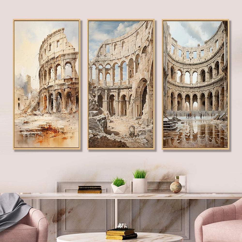 Traditional Canvas Wall Art Set - Italian Colosseum Memory - 2 Pieces