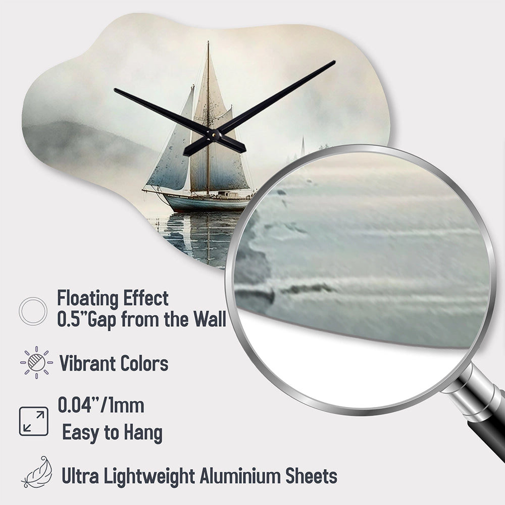 Boat On The Lake I - Asymmetric Metal Wall Clock