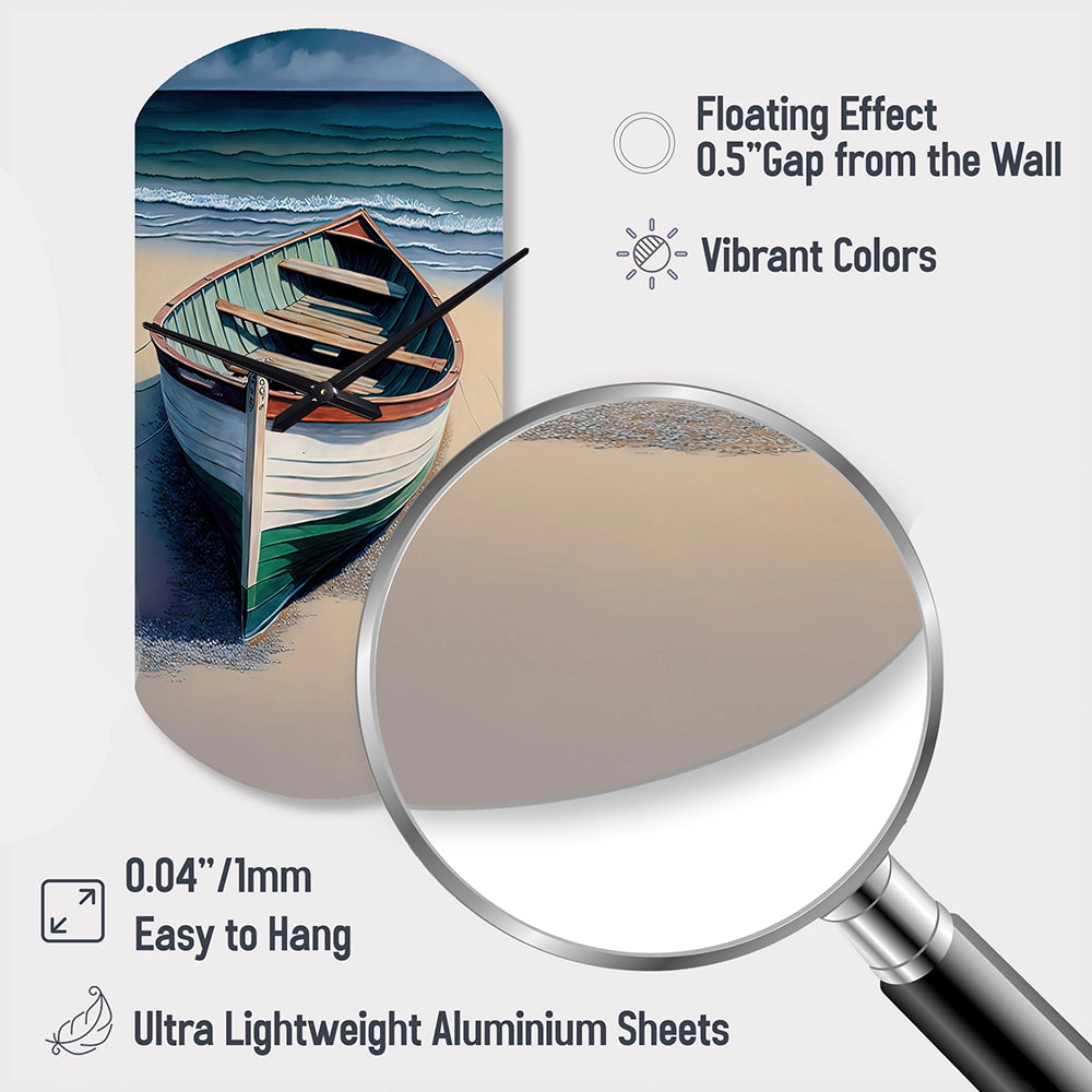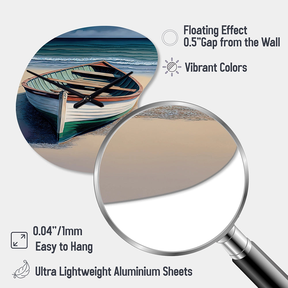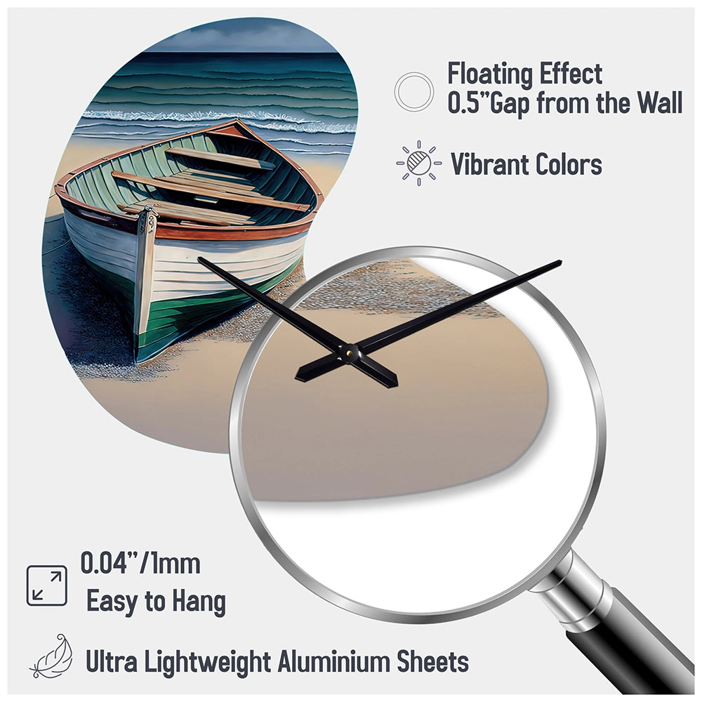 Boat On The Seashore II - Asymmetric Metal Wall Clock