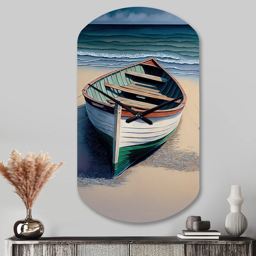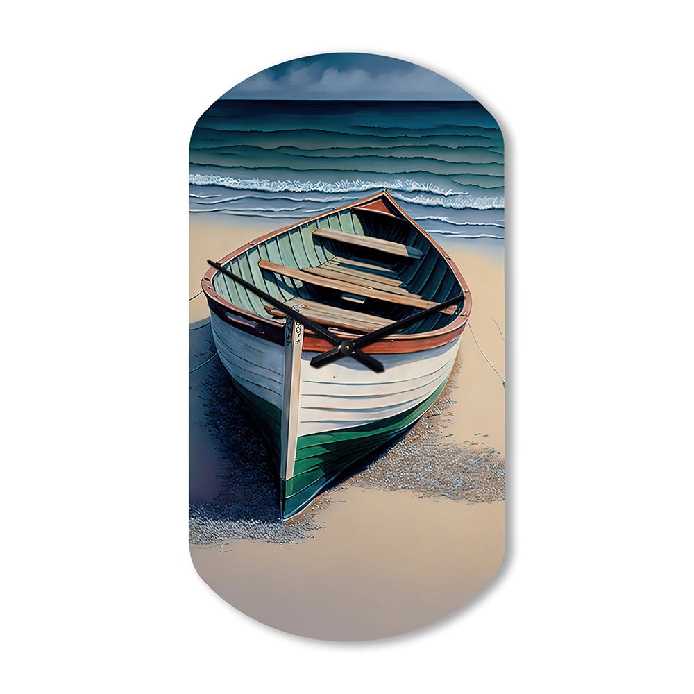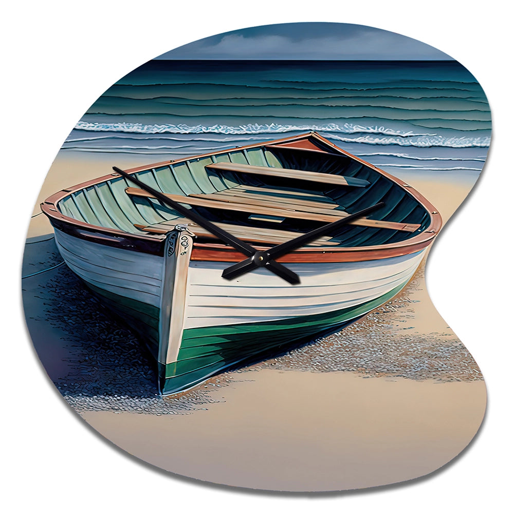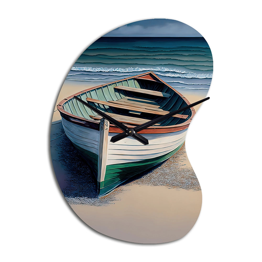 Boat On The Seashore II - Asymmetric Metal Wall Clock