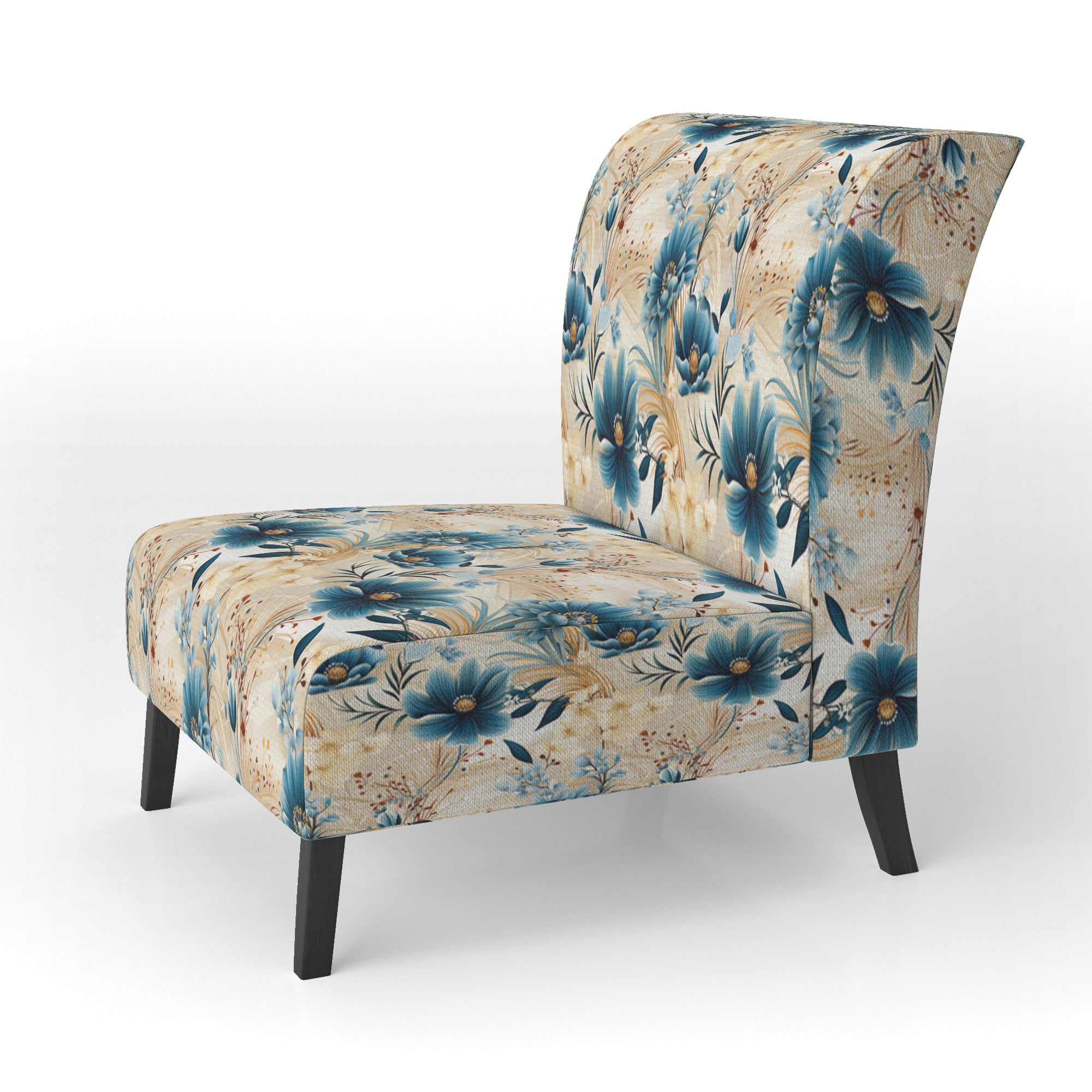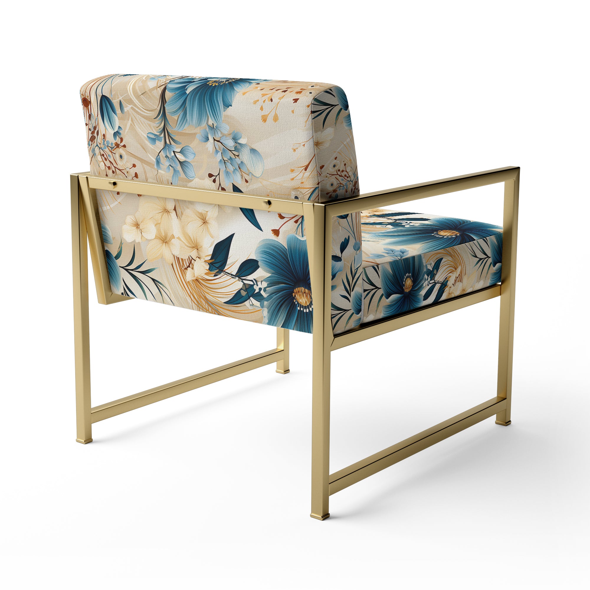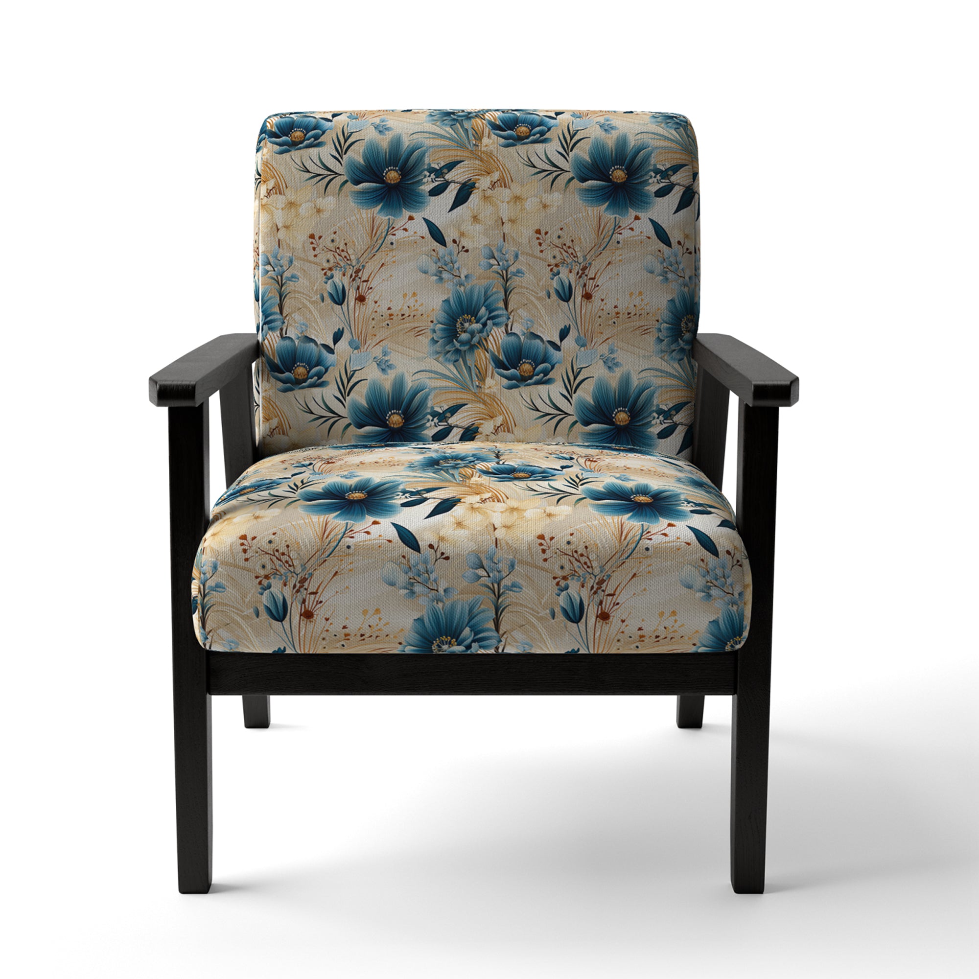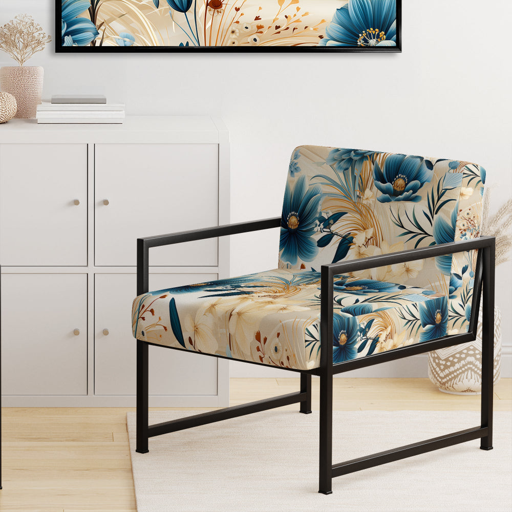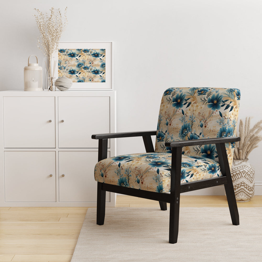 Beige And Blue Escape Flowers - Cottage Arm Chair