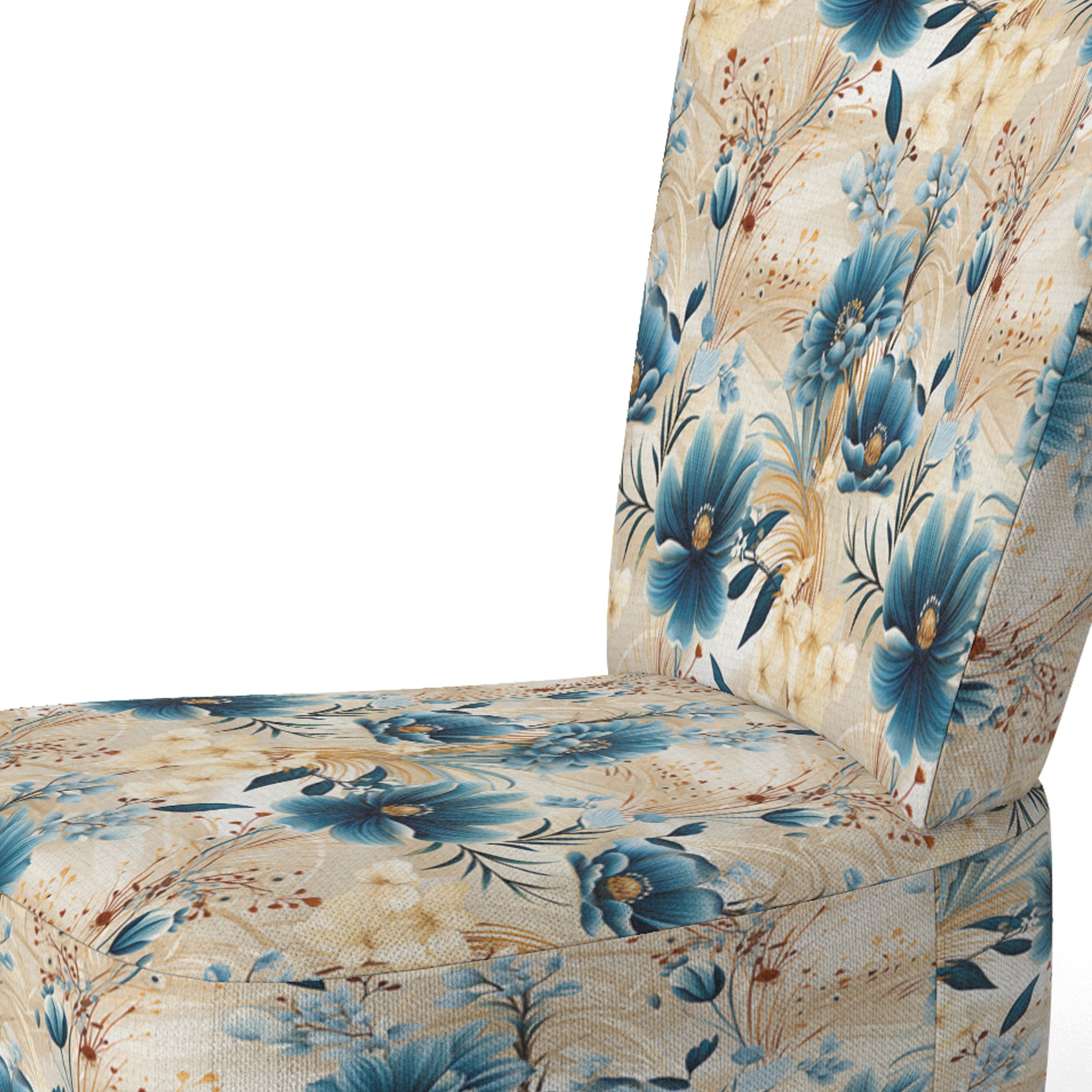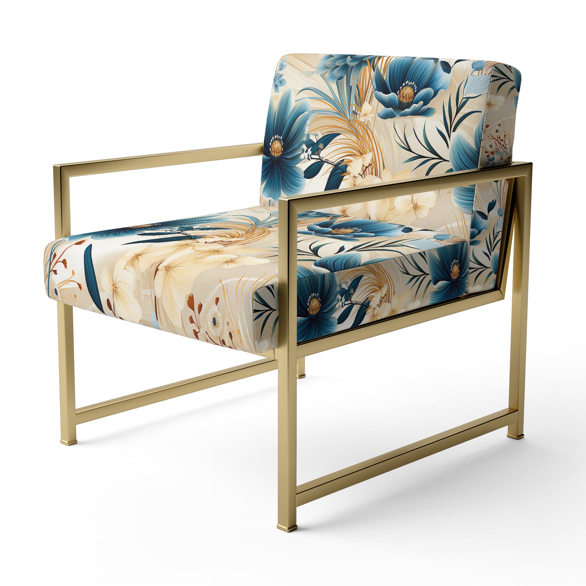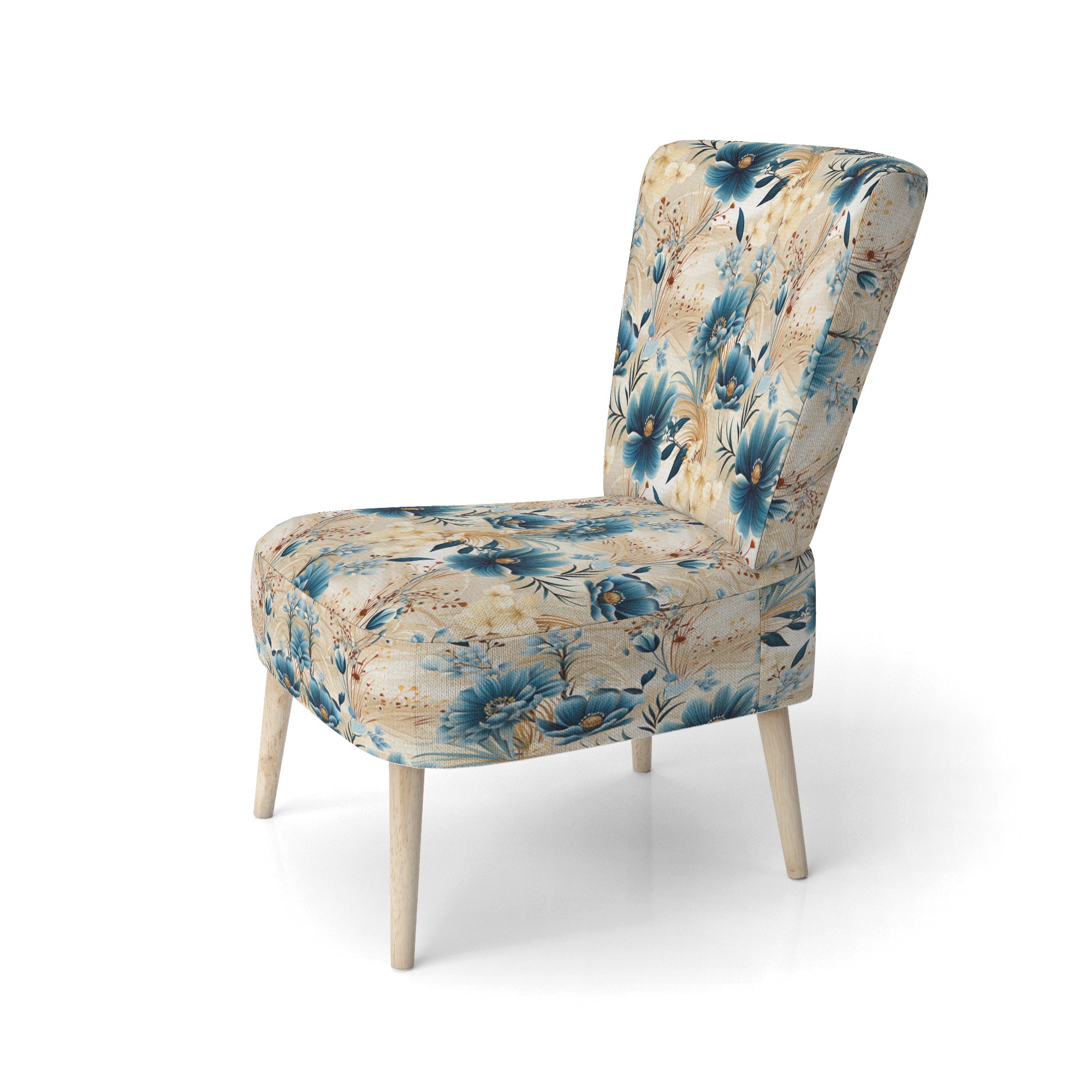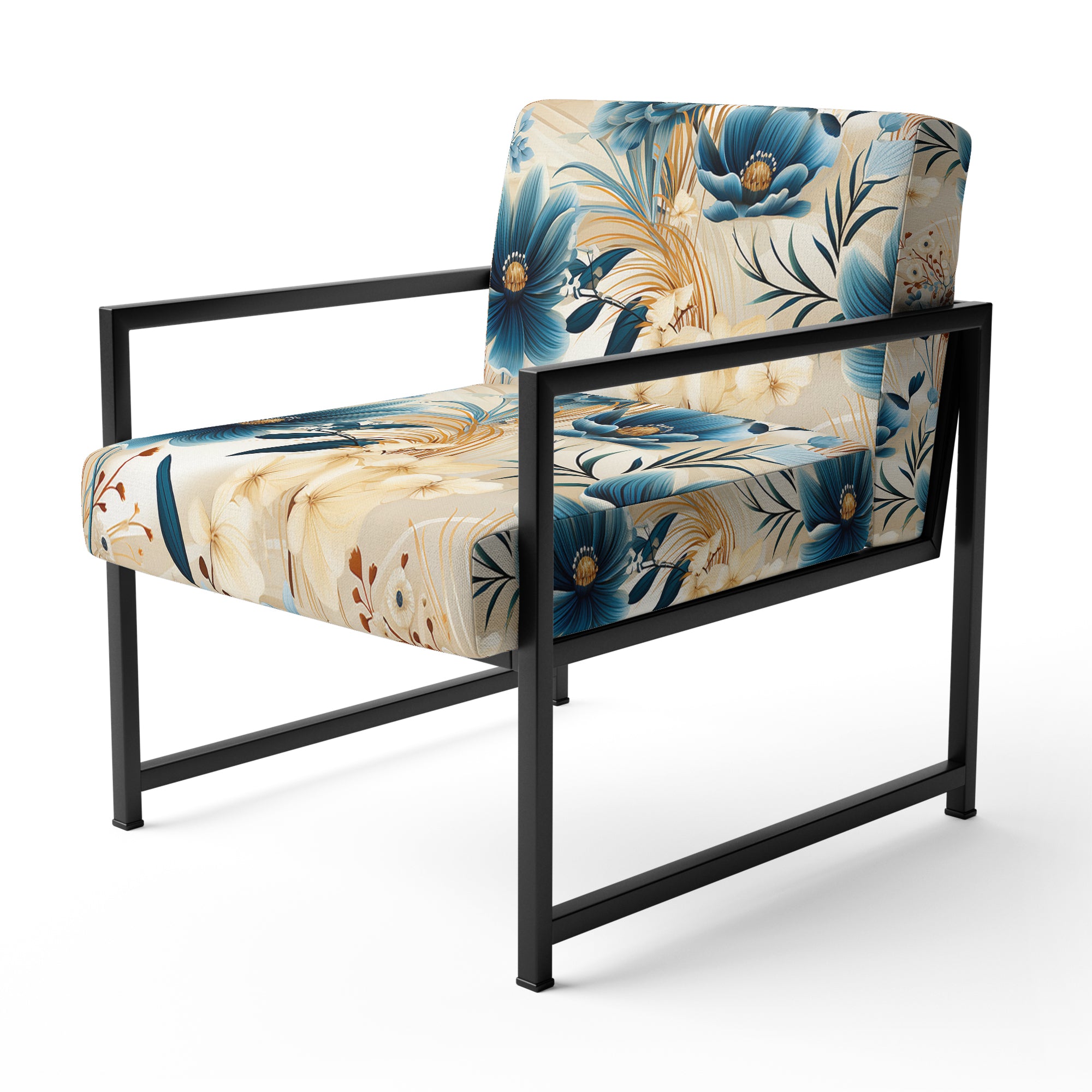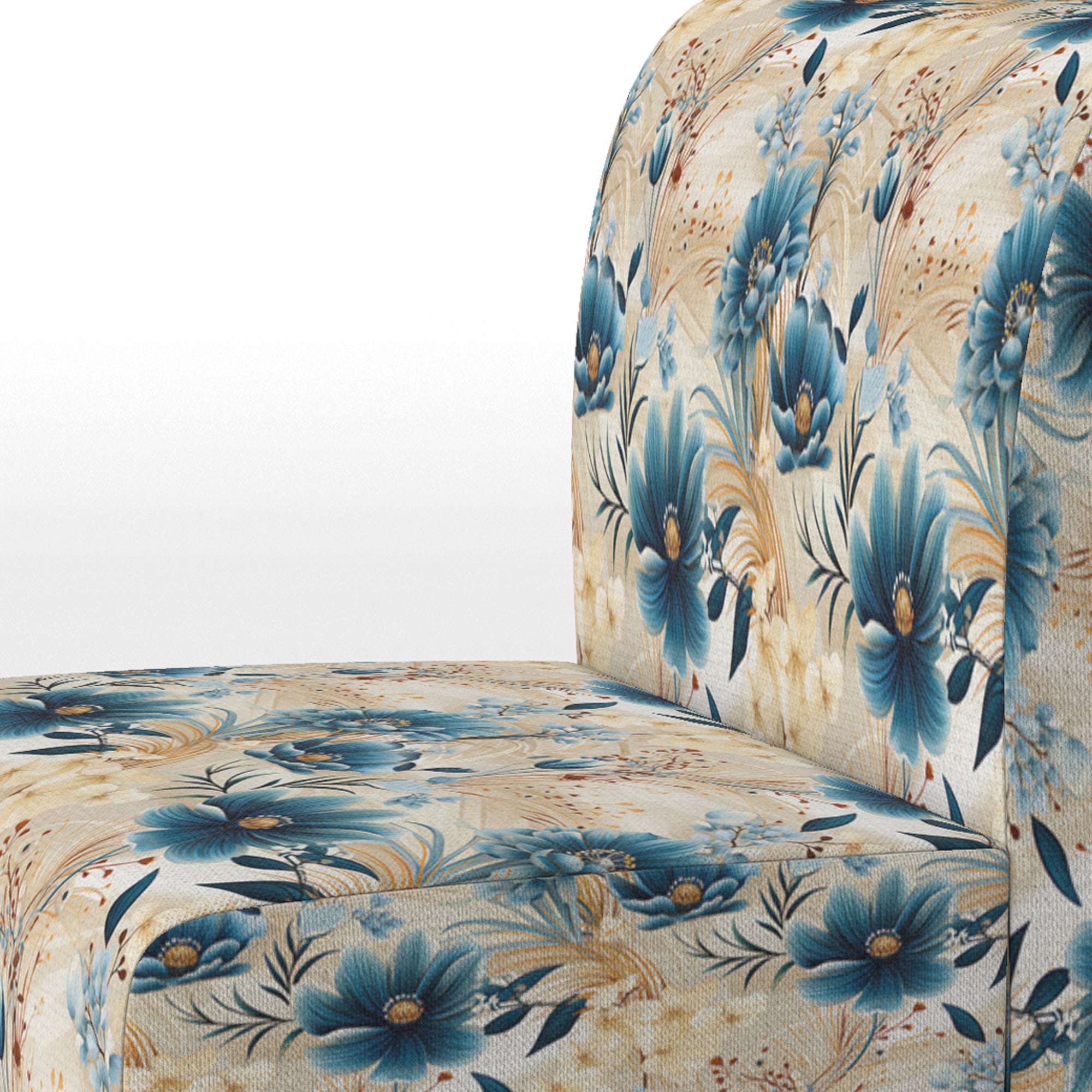 Beige And Blue Escape Flowers - Cottage Arm Chair
