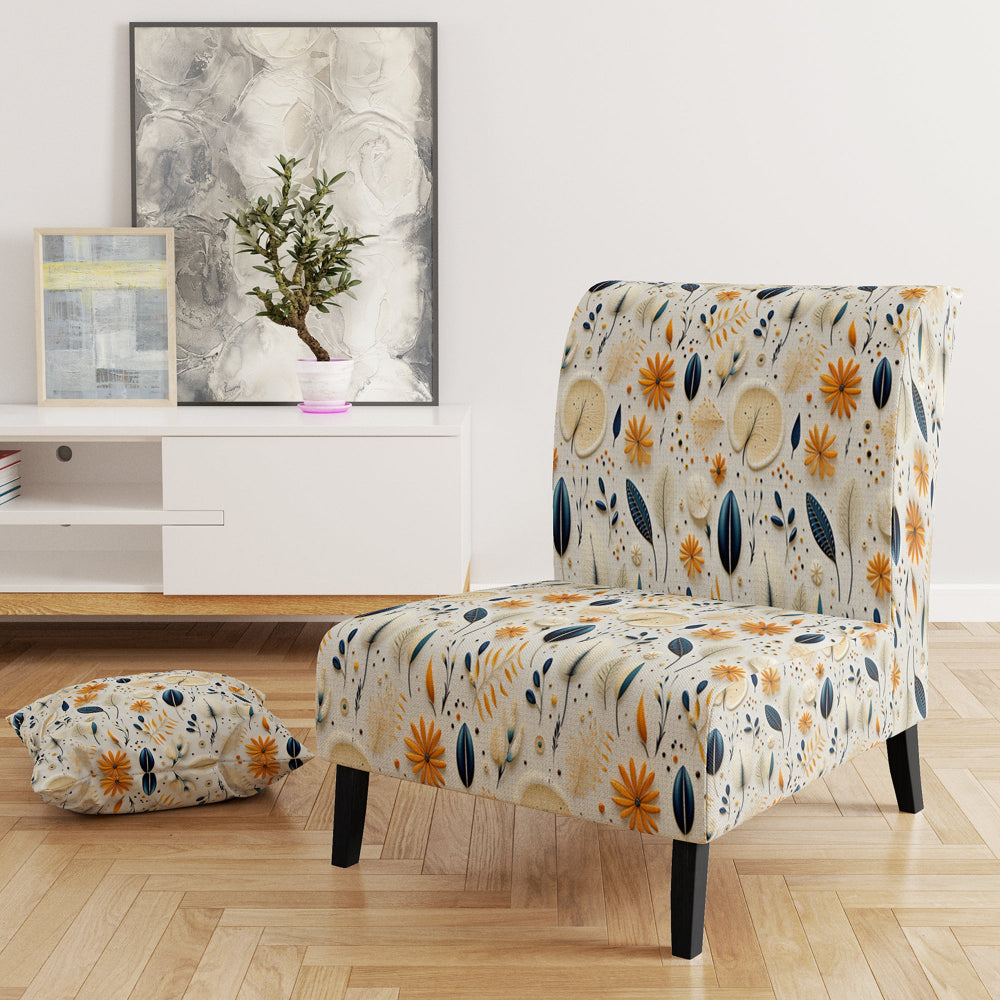 Blue And White Ferns Minimalism Boho Pattern - Cottage Accent Slipper Chair