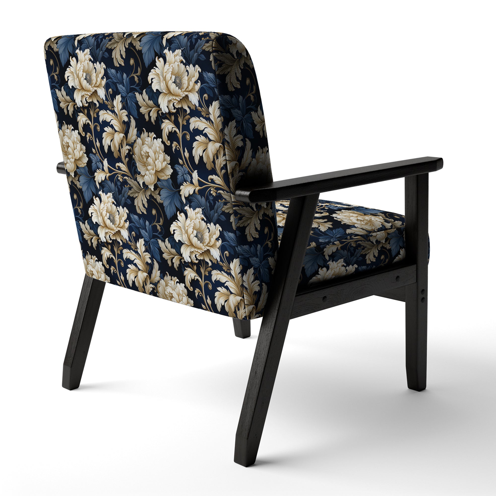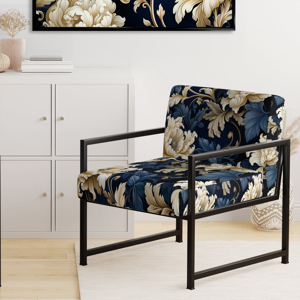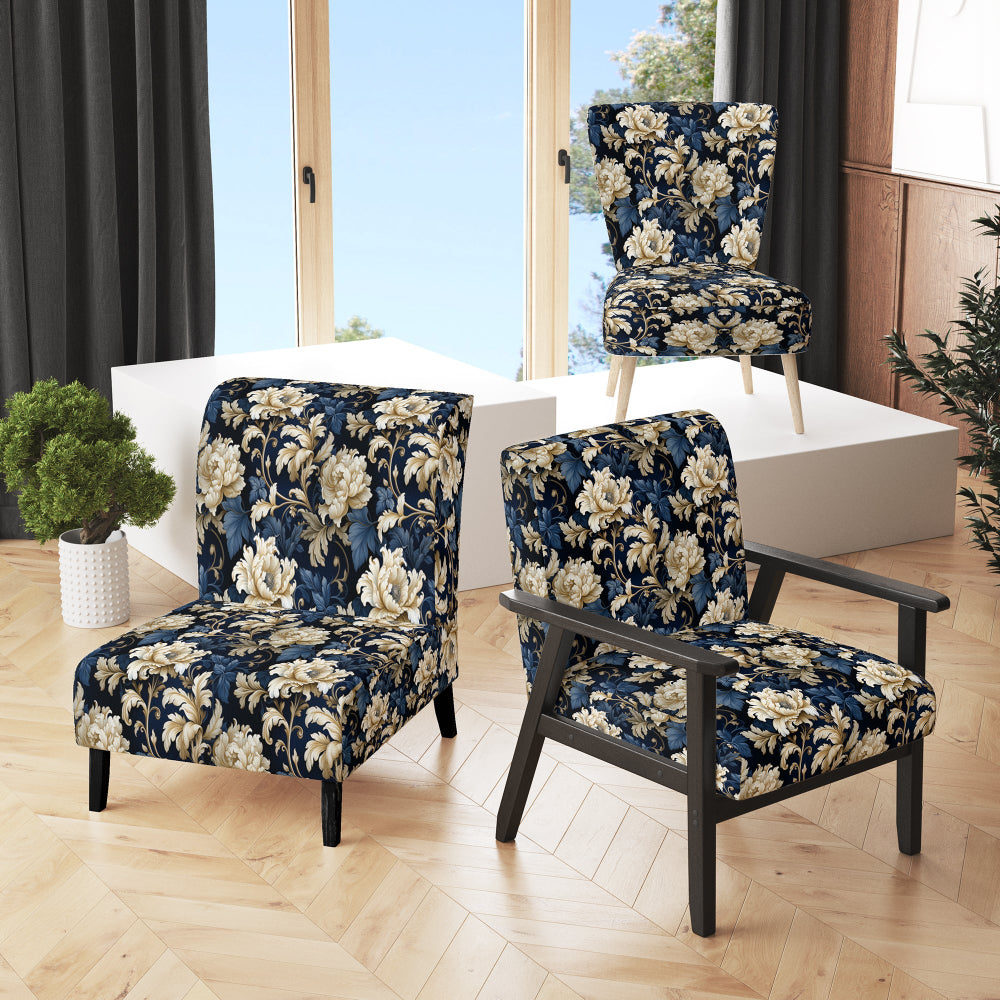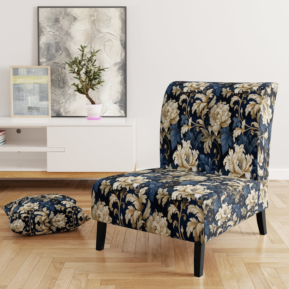 Blue Peonies Regal Damask Opulence - Cottage Arm Chair