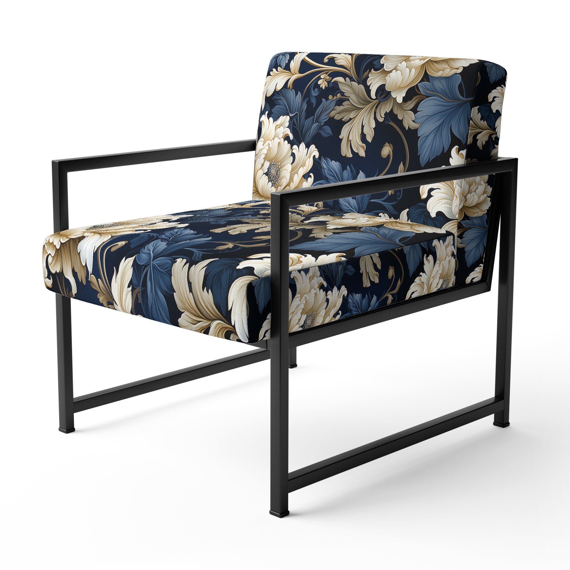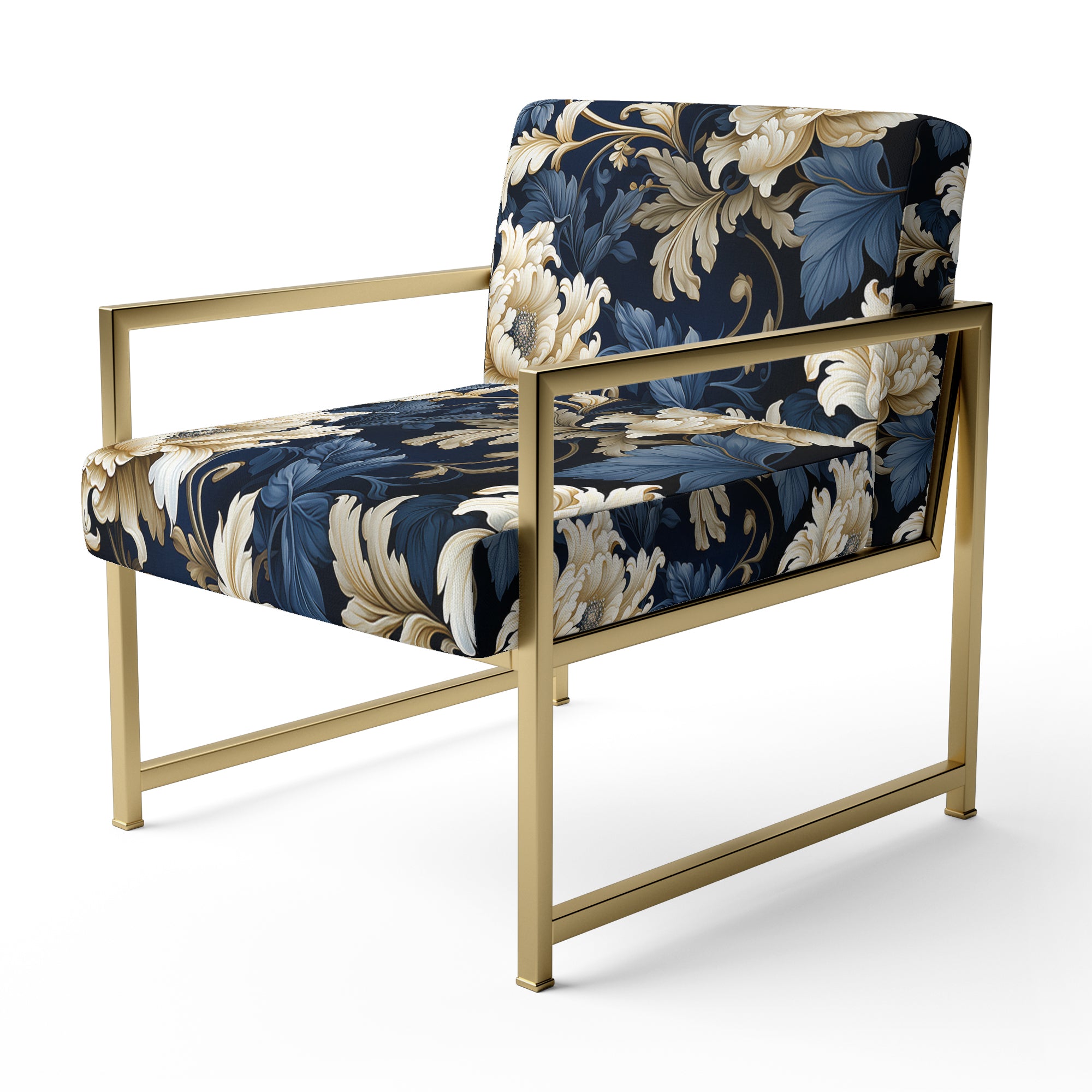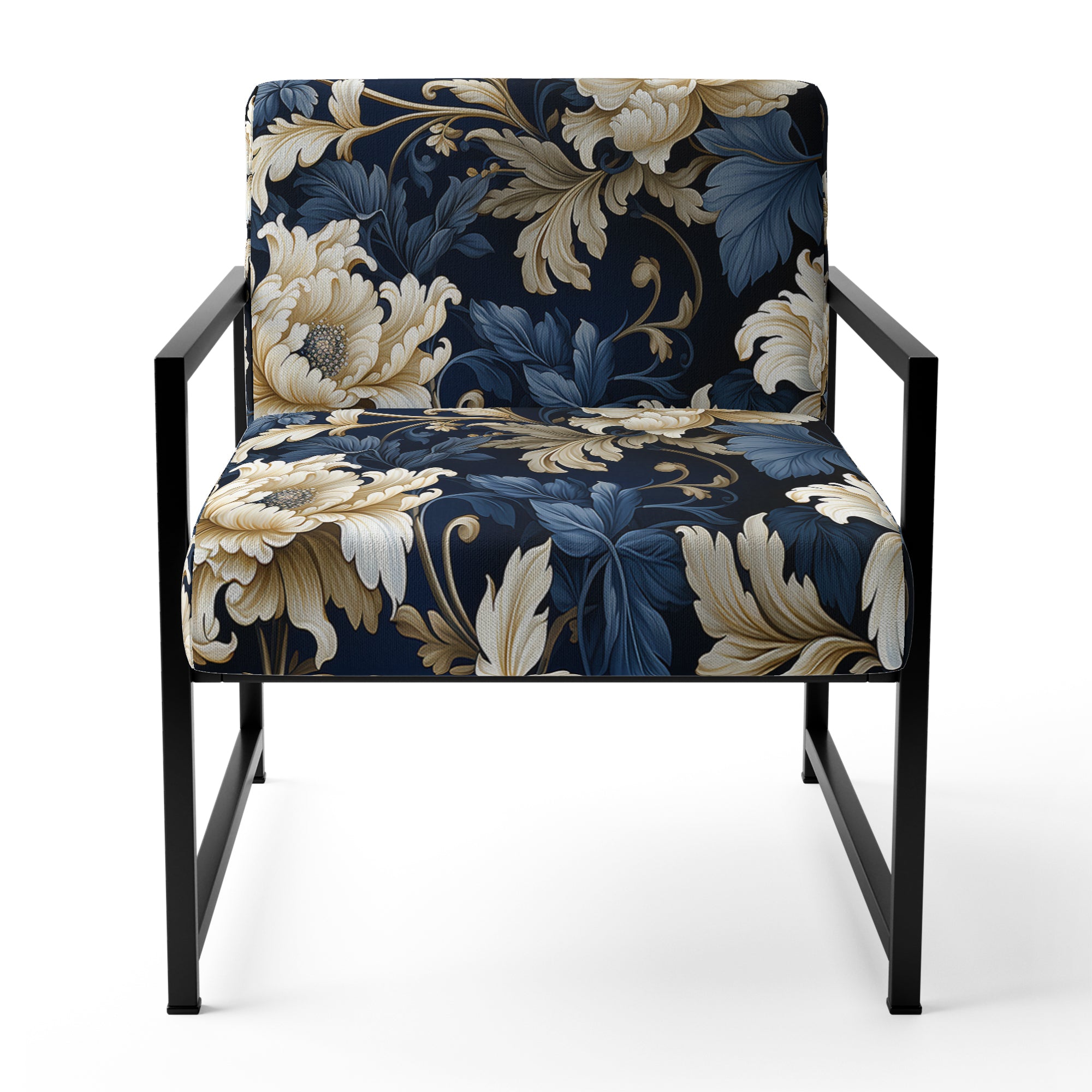 Blue Peonies Regal Damask Opulence - Cottage Arm Chair