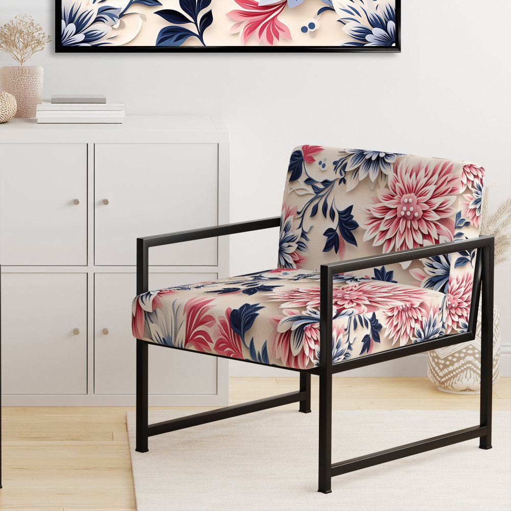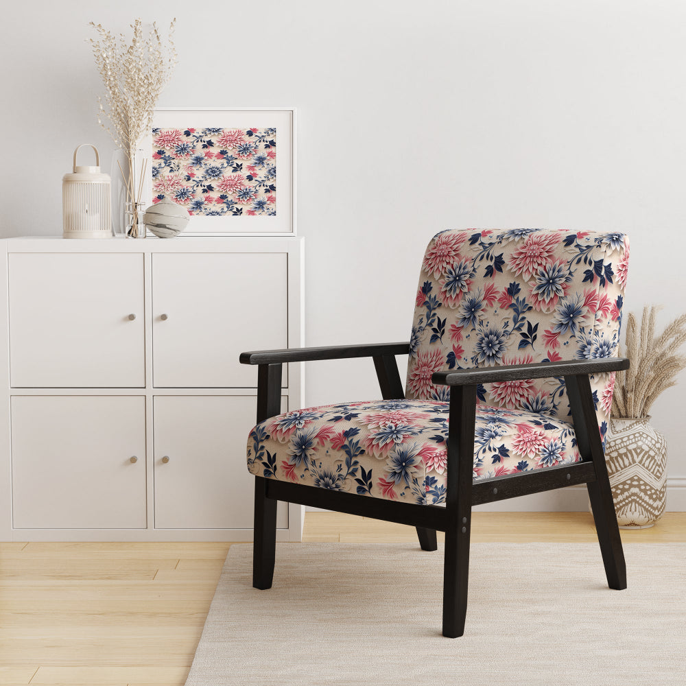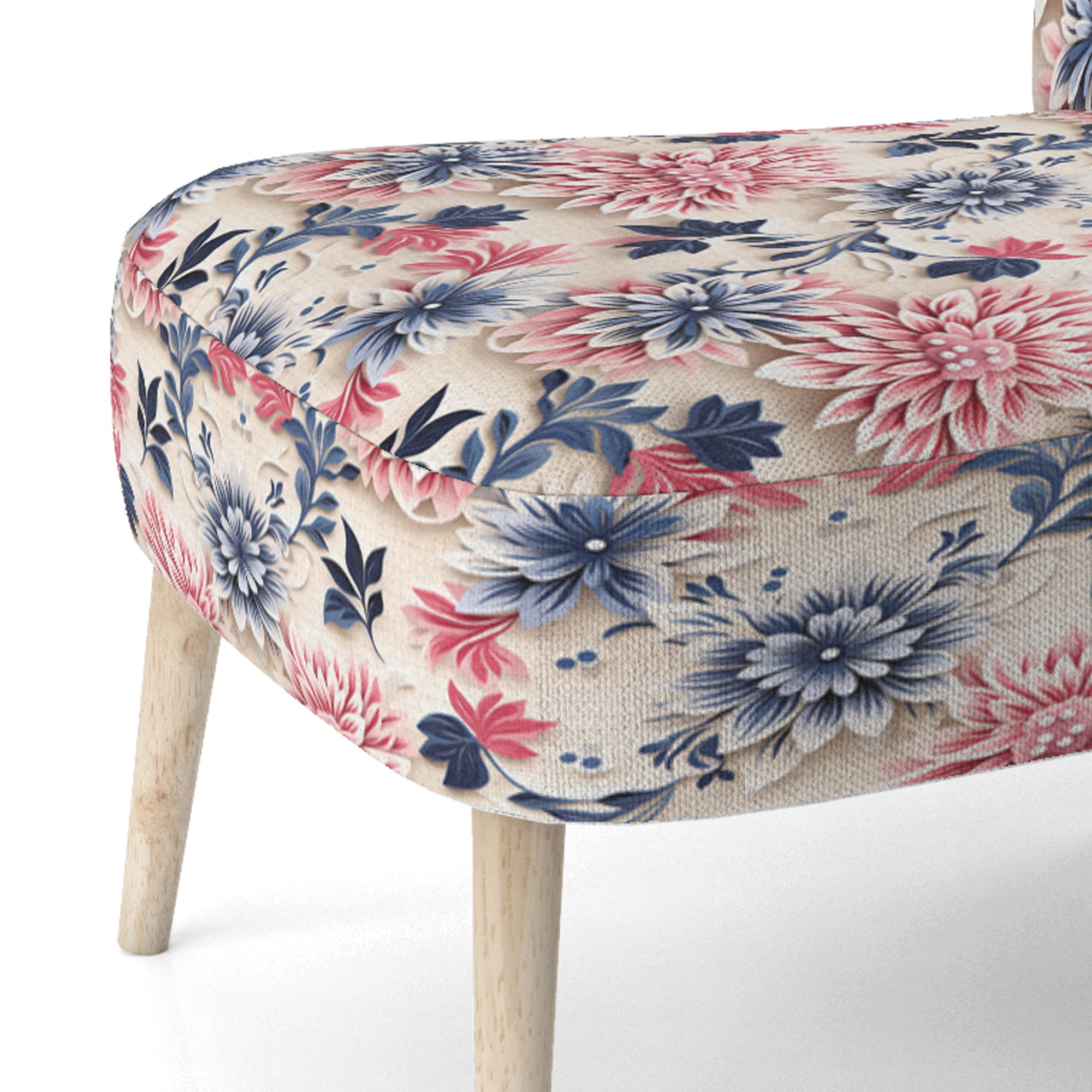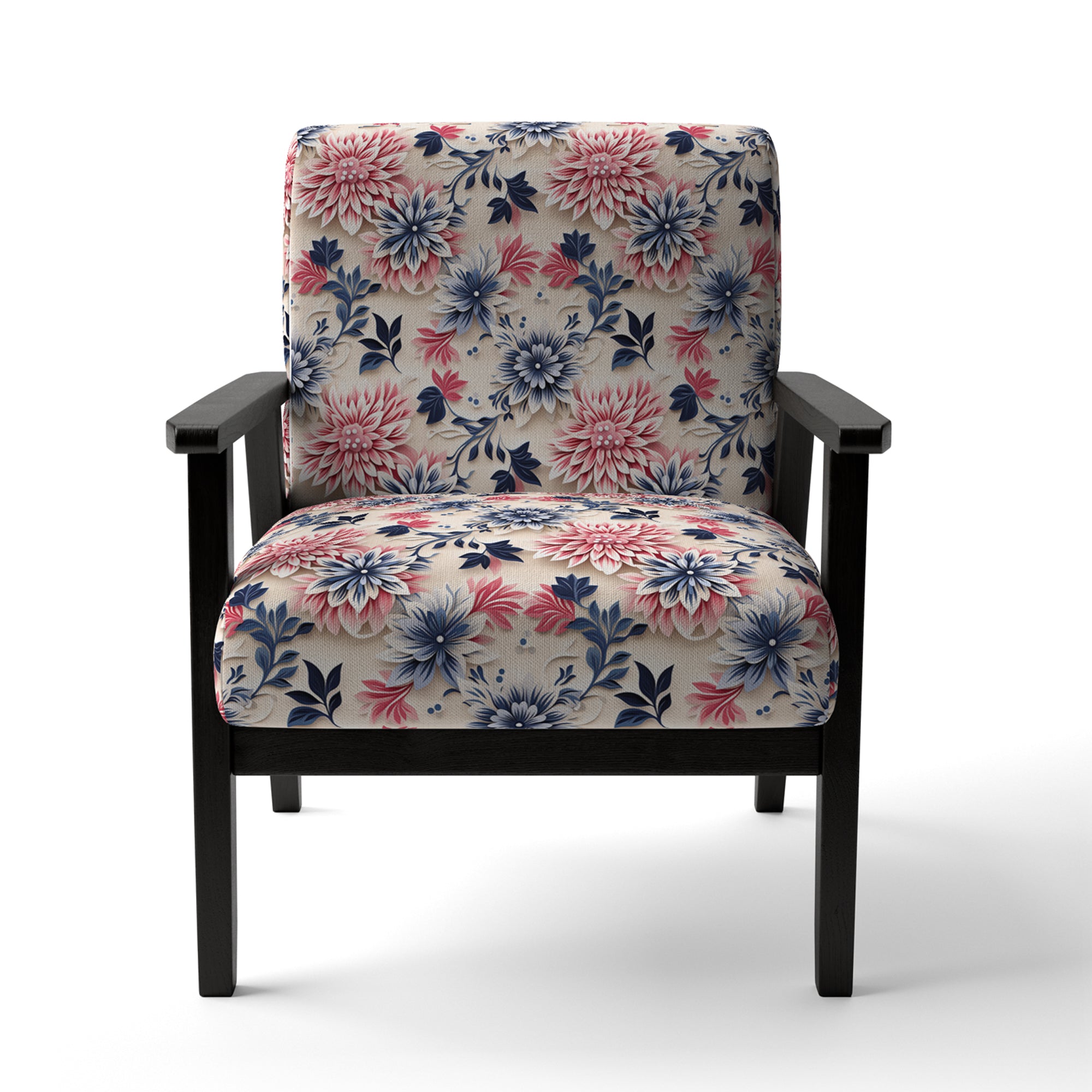 Blue Pink And White Damask Flower - Cottage Arm Chair