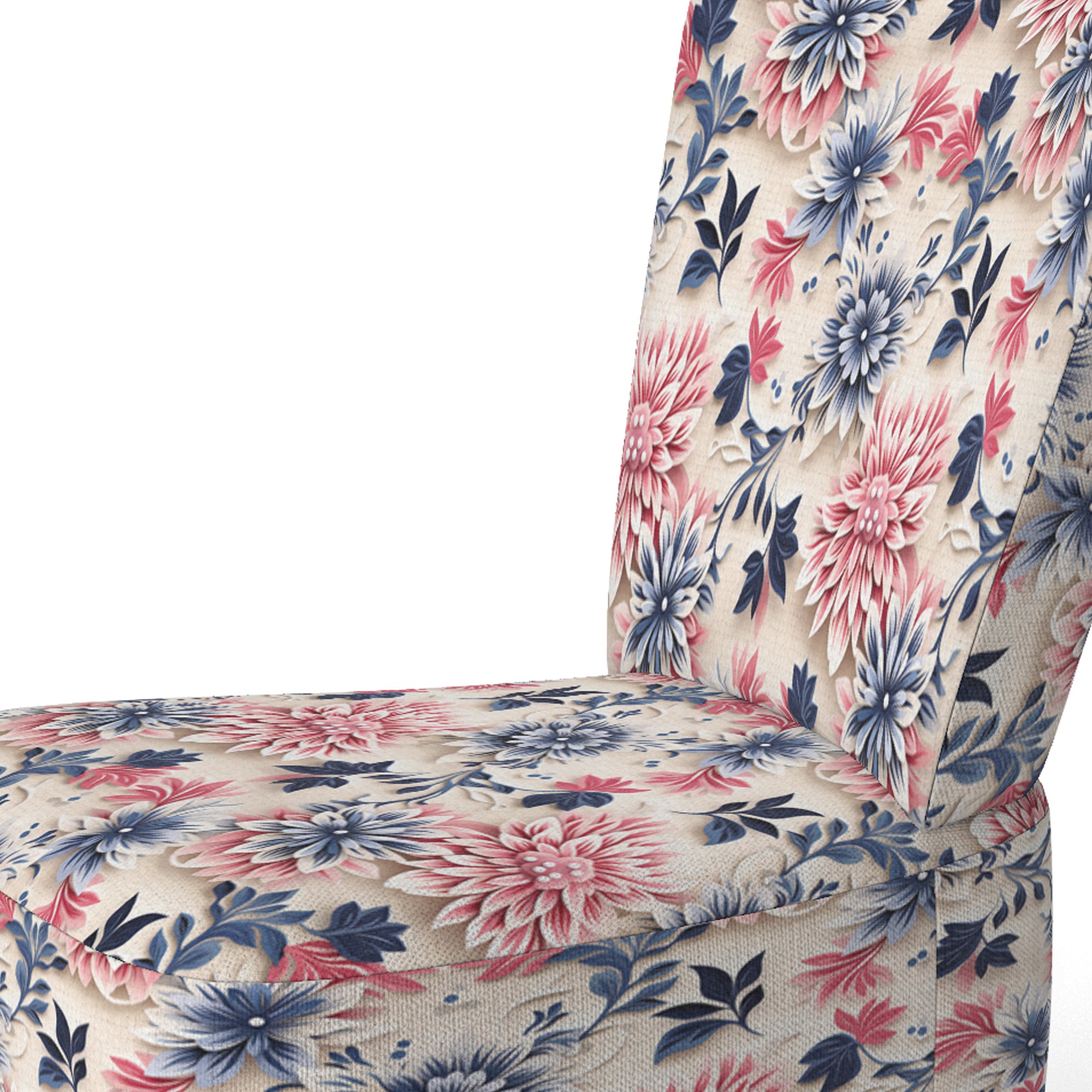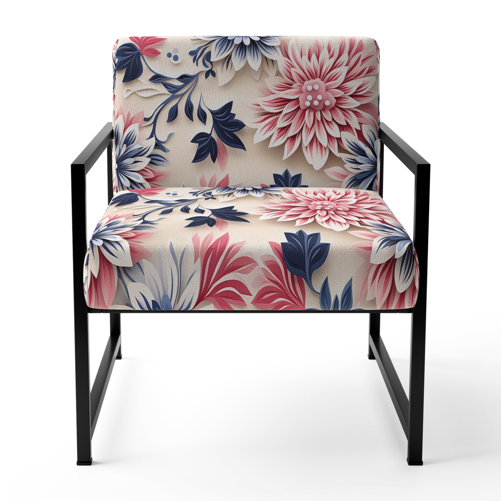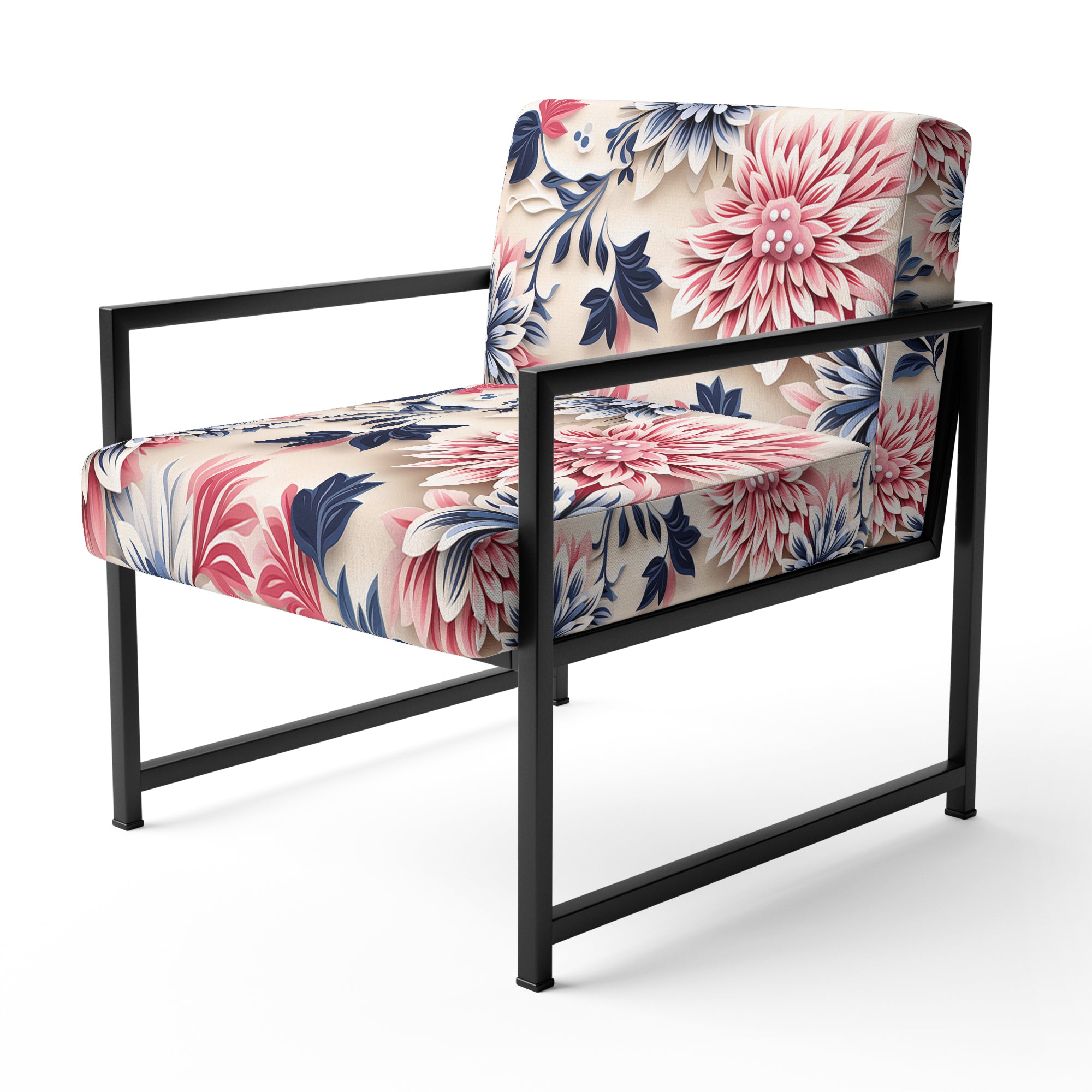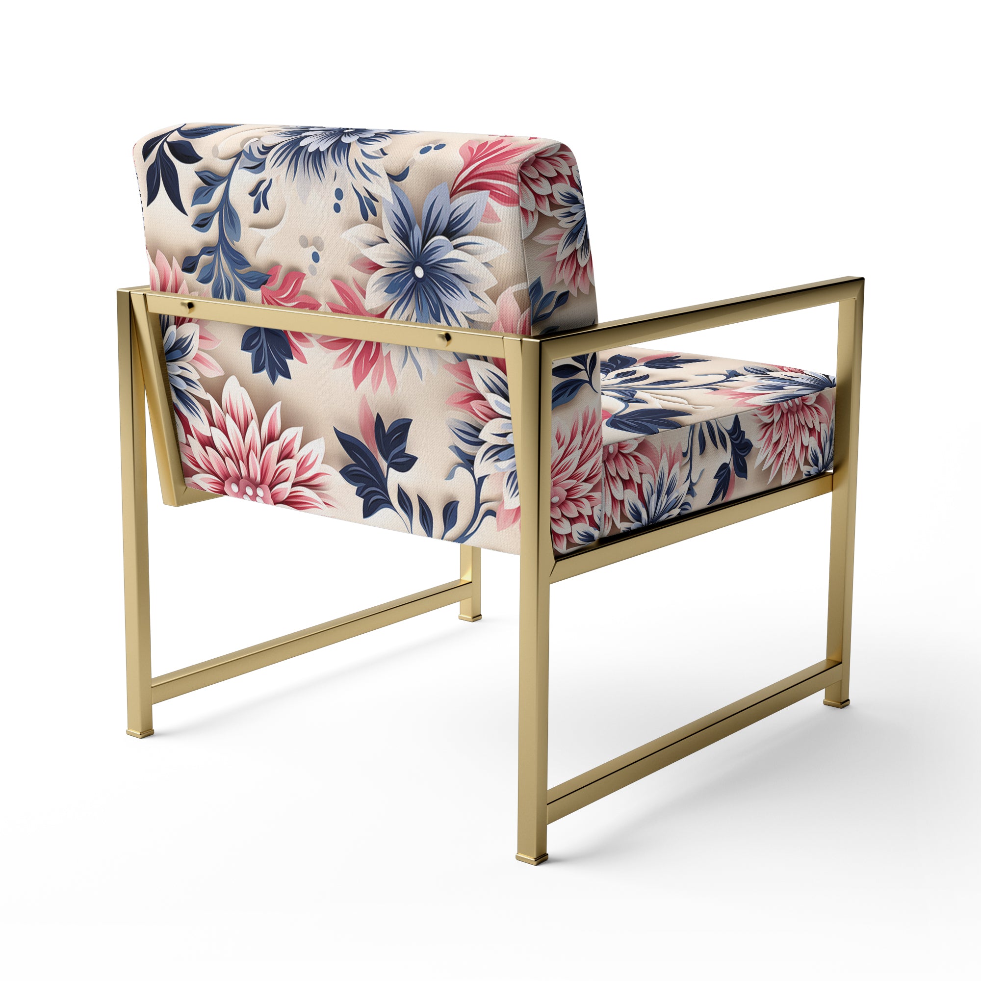 Blue Pink And White Damask Flower - Cottage Arm Chair