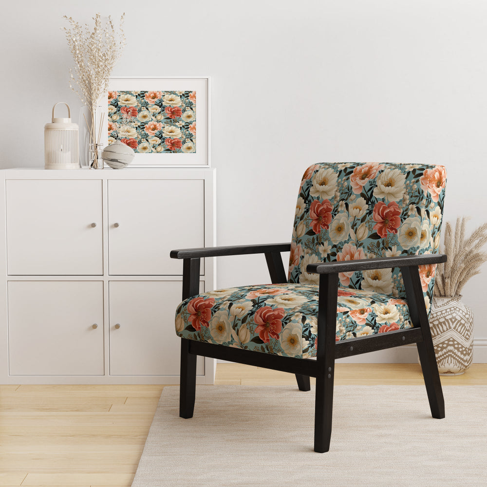 Add a beautiful accent to any room with this Cottage accent chair. Our beautiful accent chairs are a great way to add comfort and style all at the same time. All our chairs are printed using the richest colors stemming from high density Italian ink and sewn using the softest fabrics. Enjoy our sturdy hardwood frame chairs in multiple designs and colors.