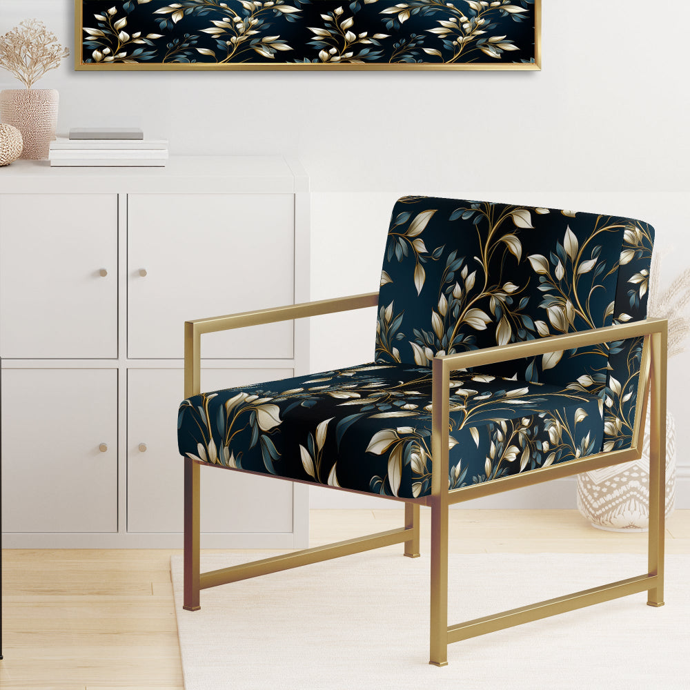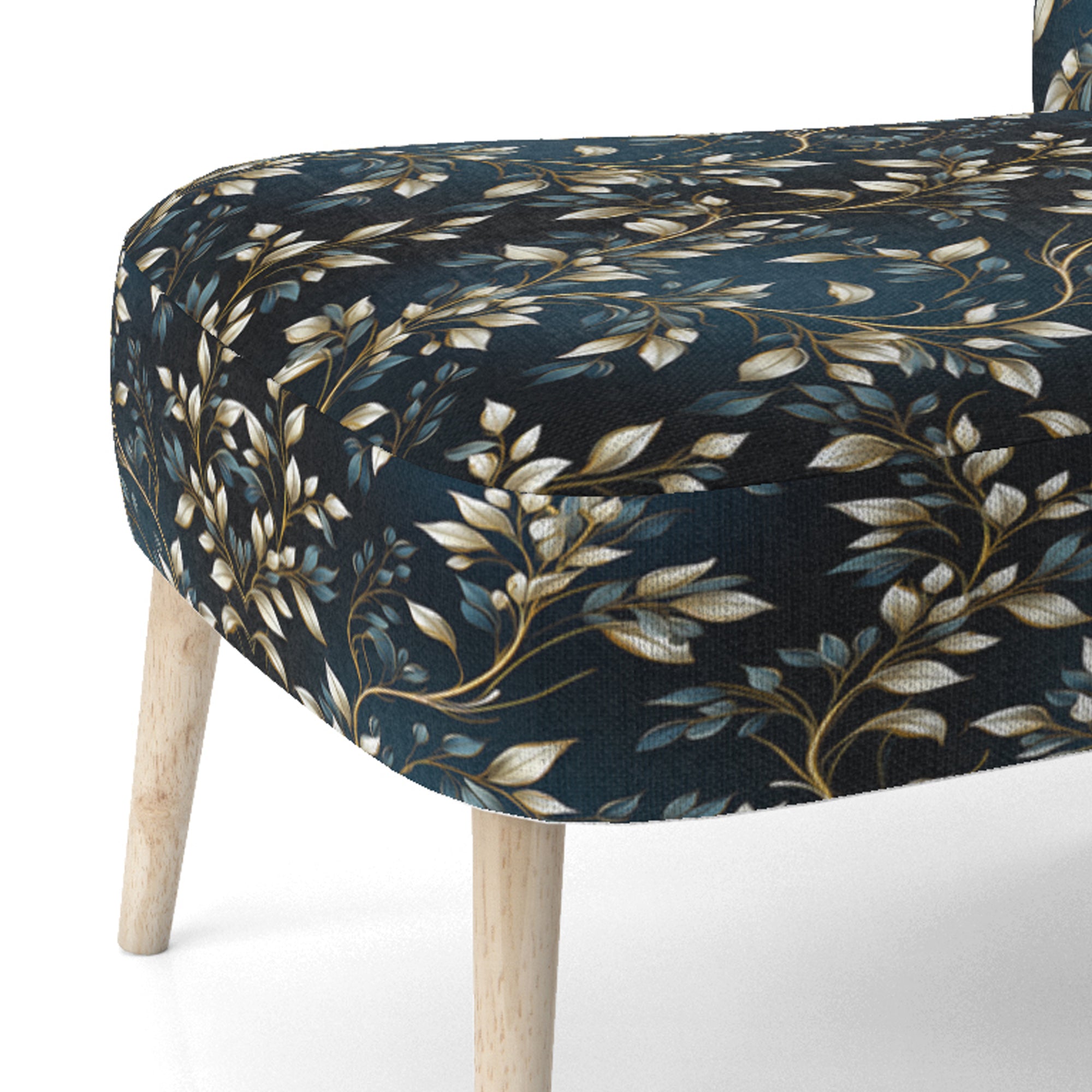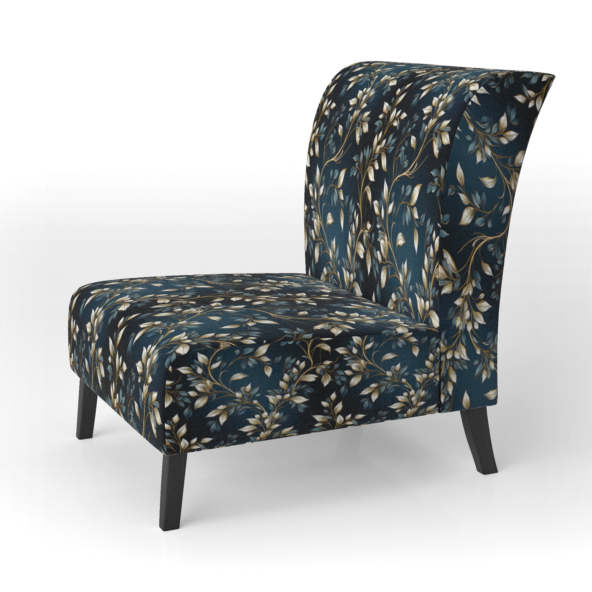 Gold And Blue Royal Botanical Vines - Cottage Accent Side Chair