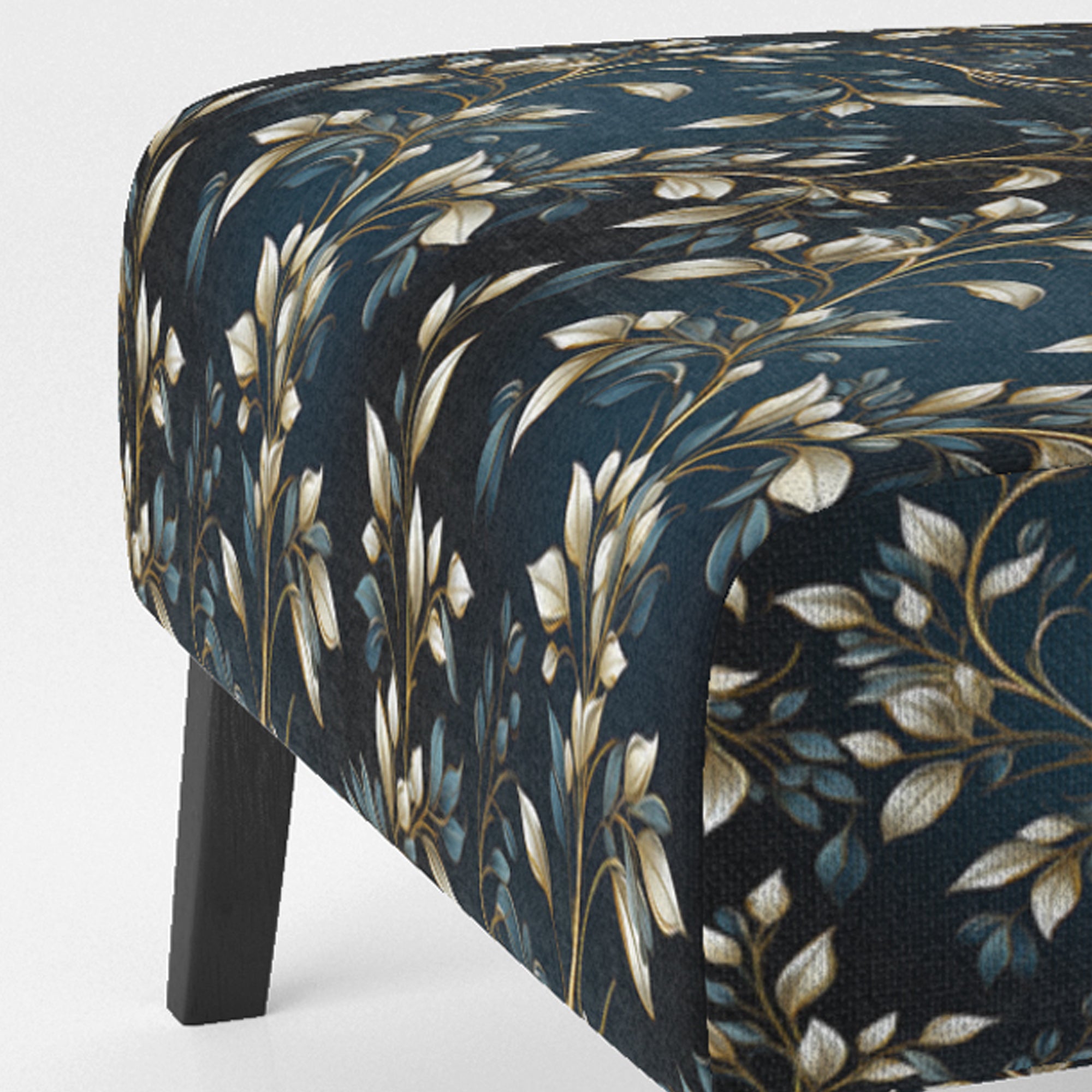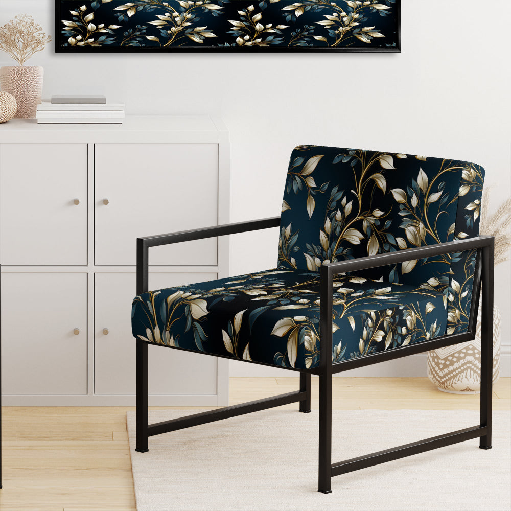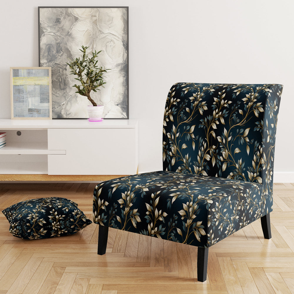Gold And Blue Royal Botanical Vines - Cottage Accent Side Chair