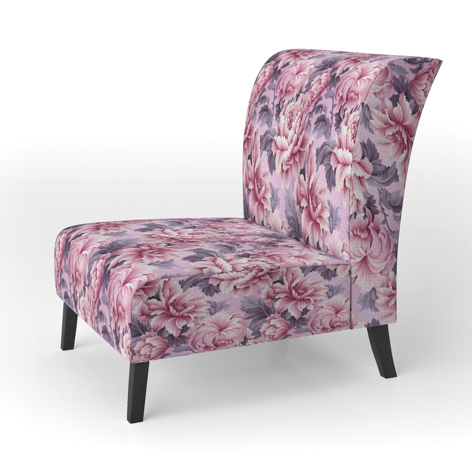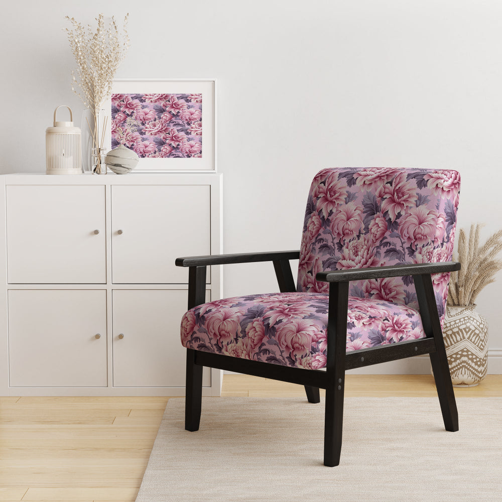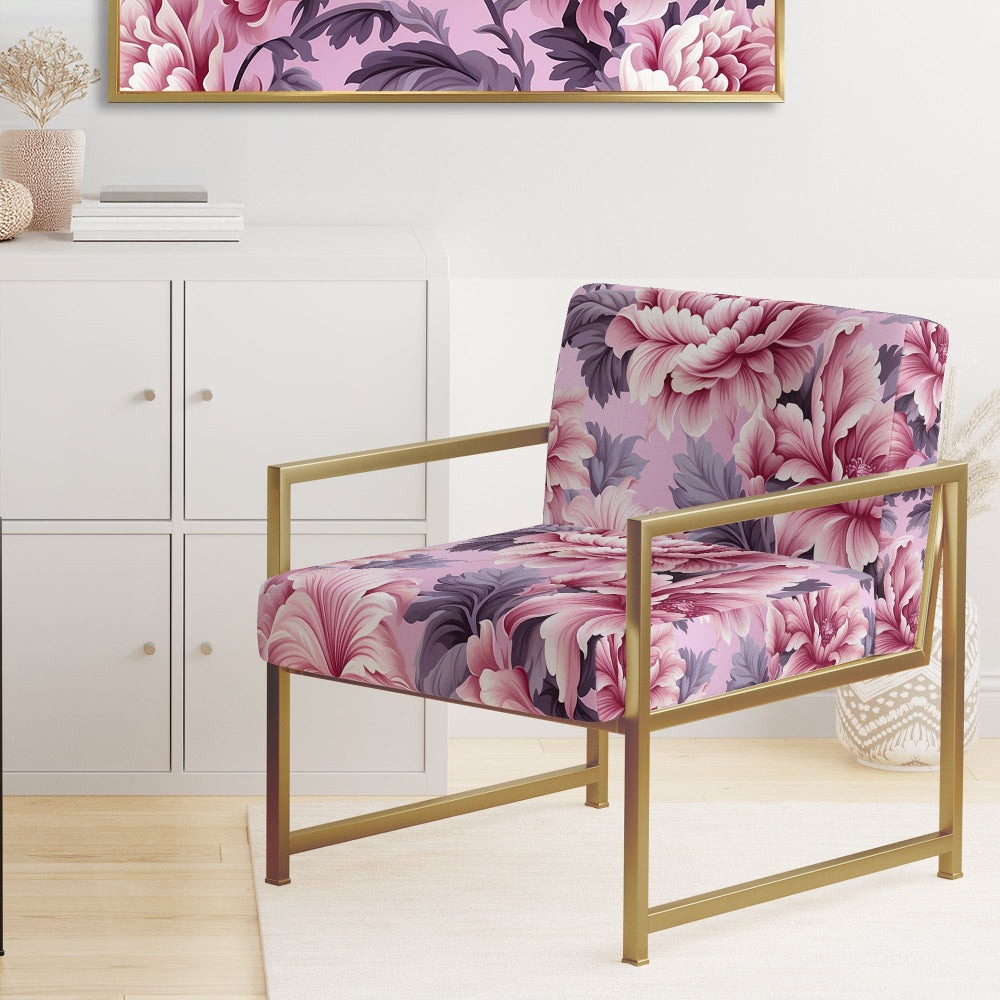 Harmony Pink Peonies Pattern - Upholstered Cottage Accent Chairs
