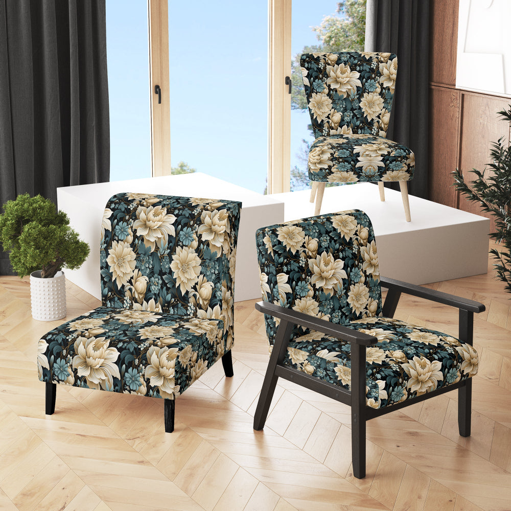 White And Blue Symphony Of Petal Gardens - Upholstered Cottage Accent Chairs