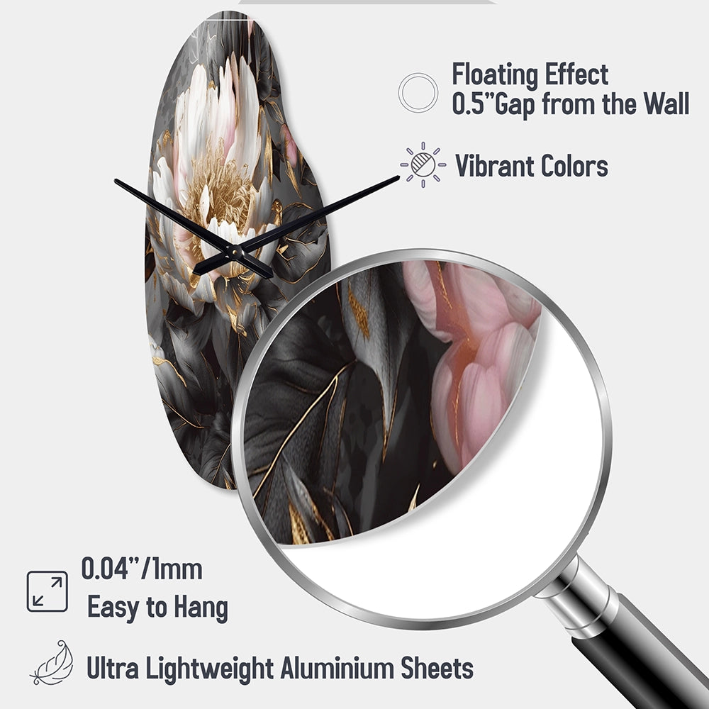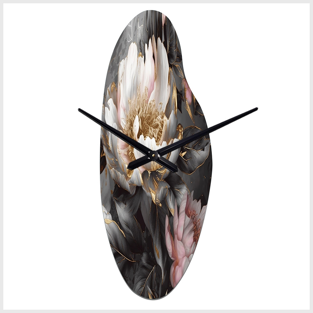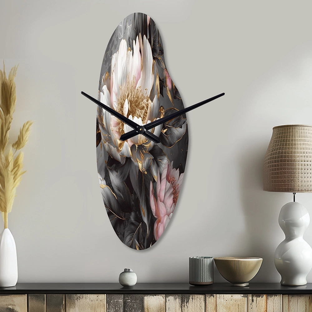 Pink Grey Peonies Blooming II - Asymmetric Metal Wall Clock