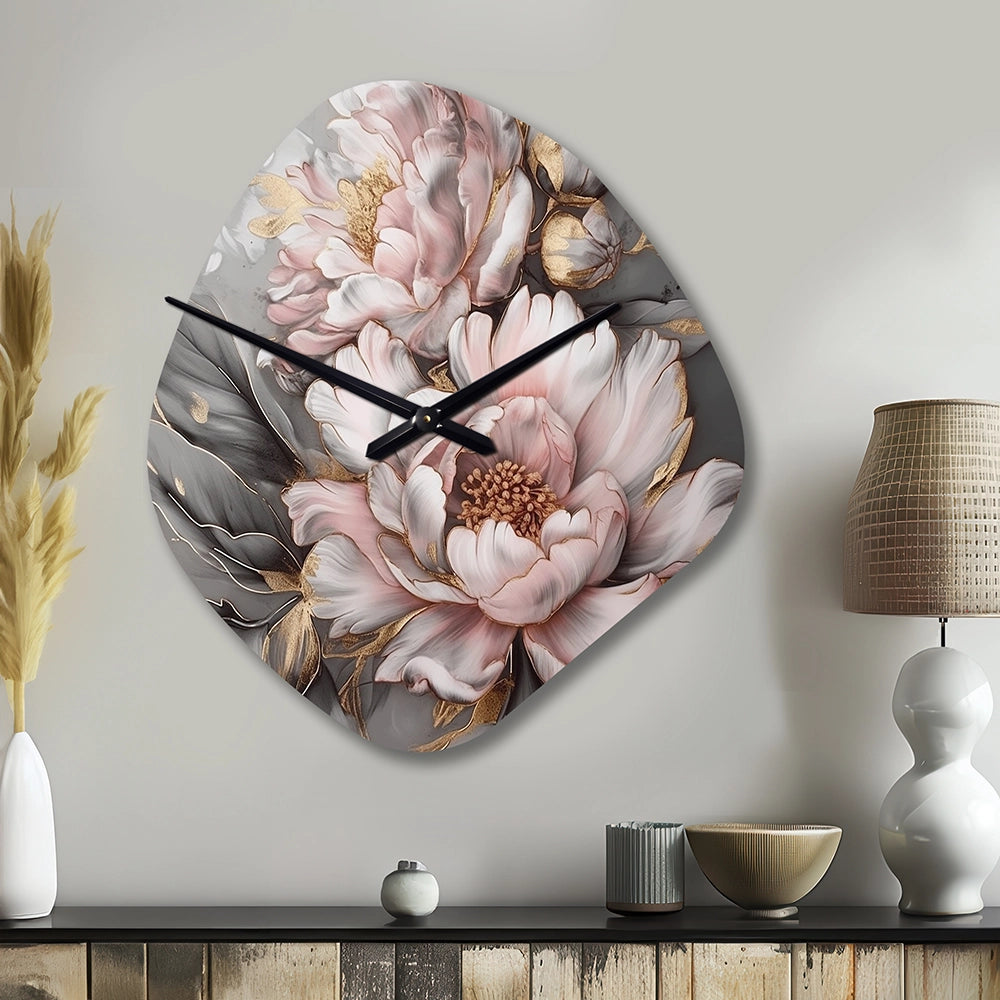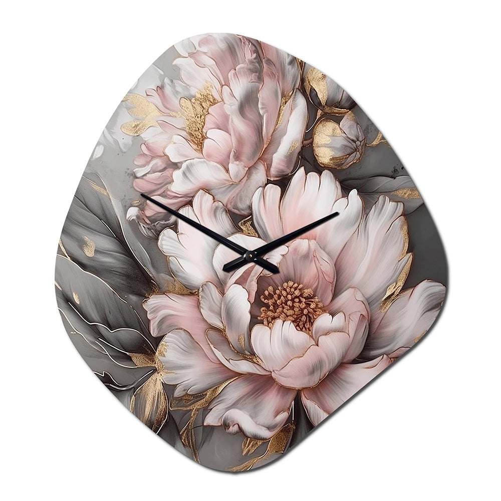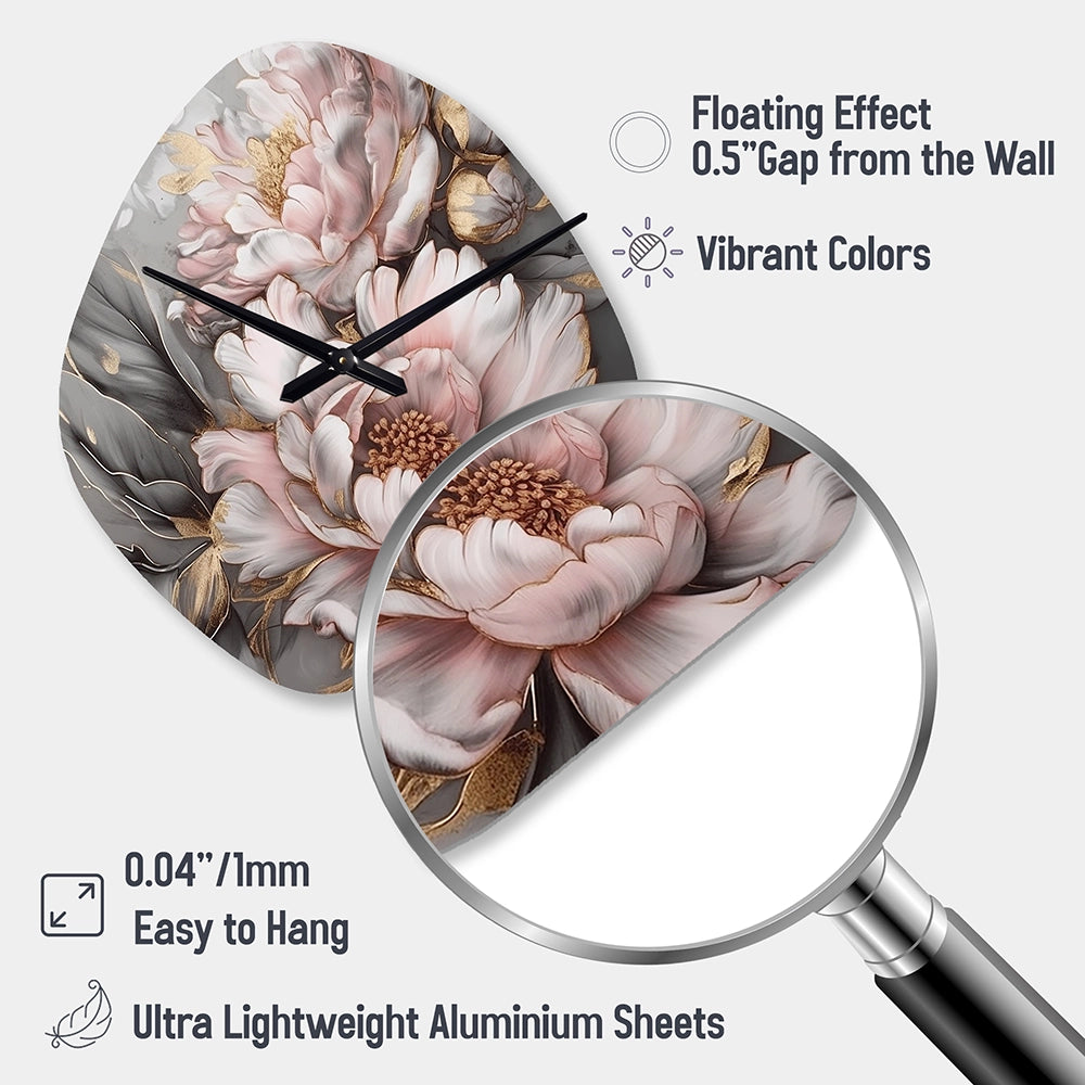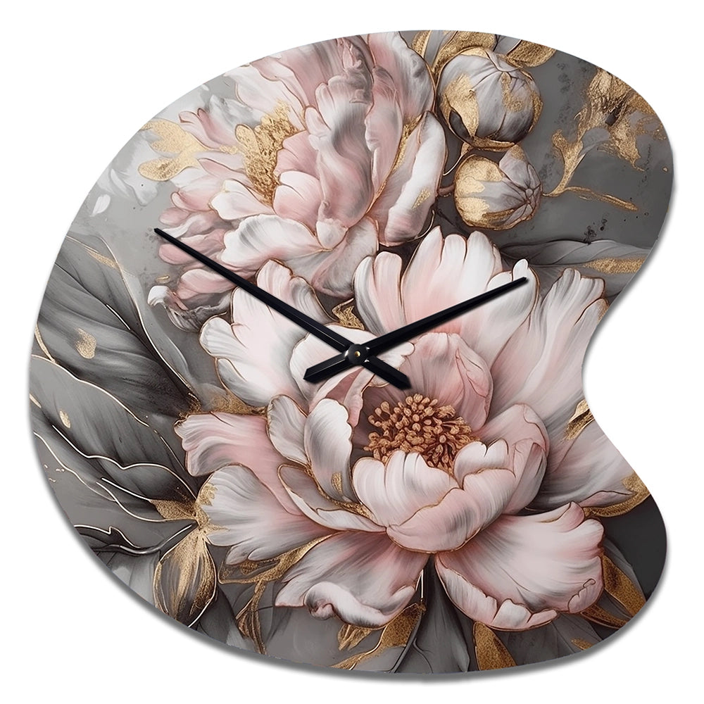 Pink Grey Peonies Elegance I - Asymmetric Metal Wall Clock