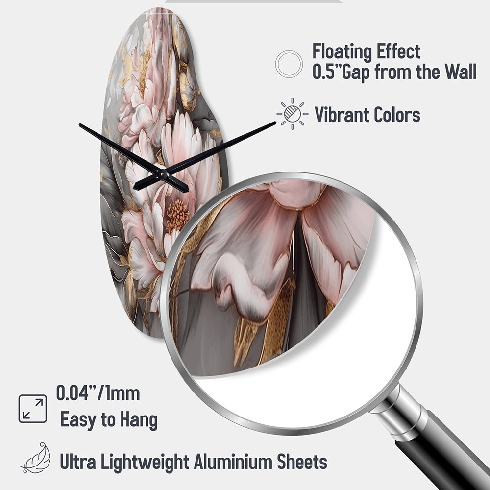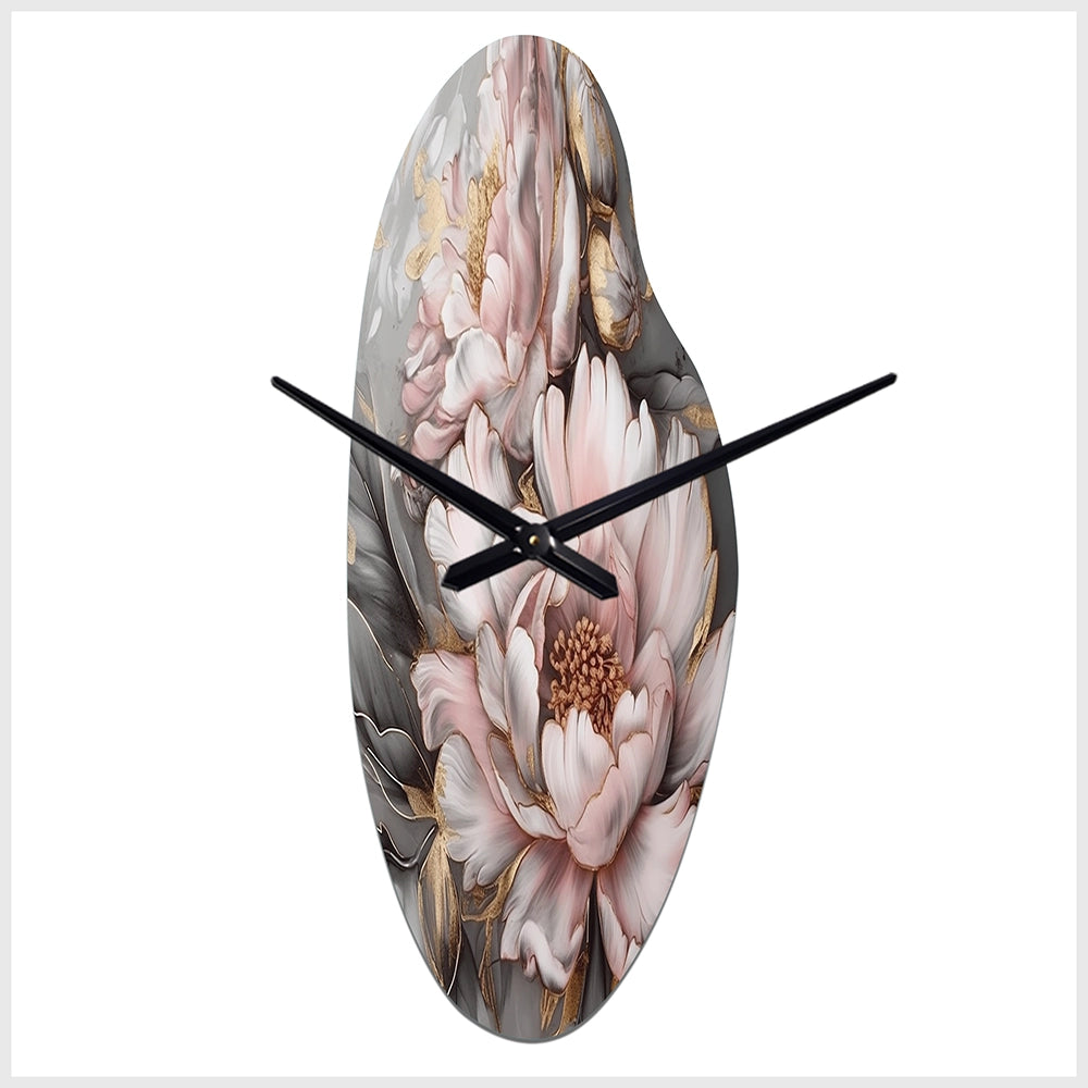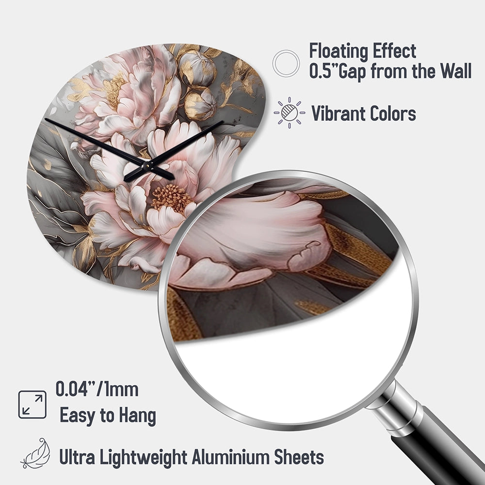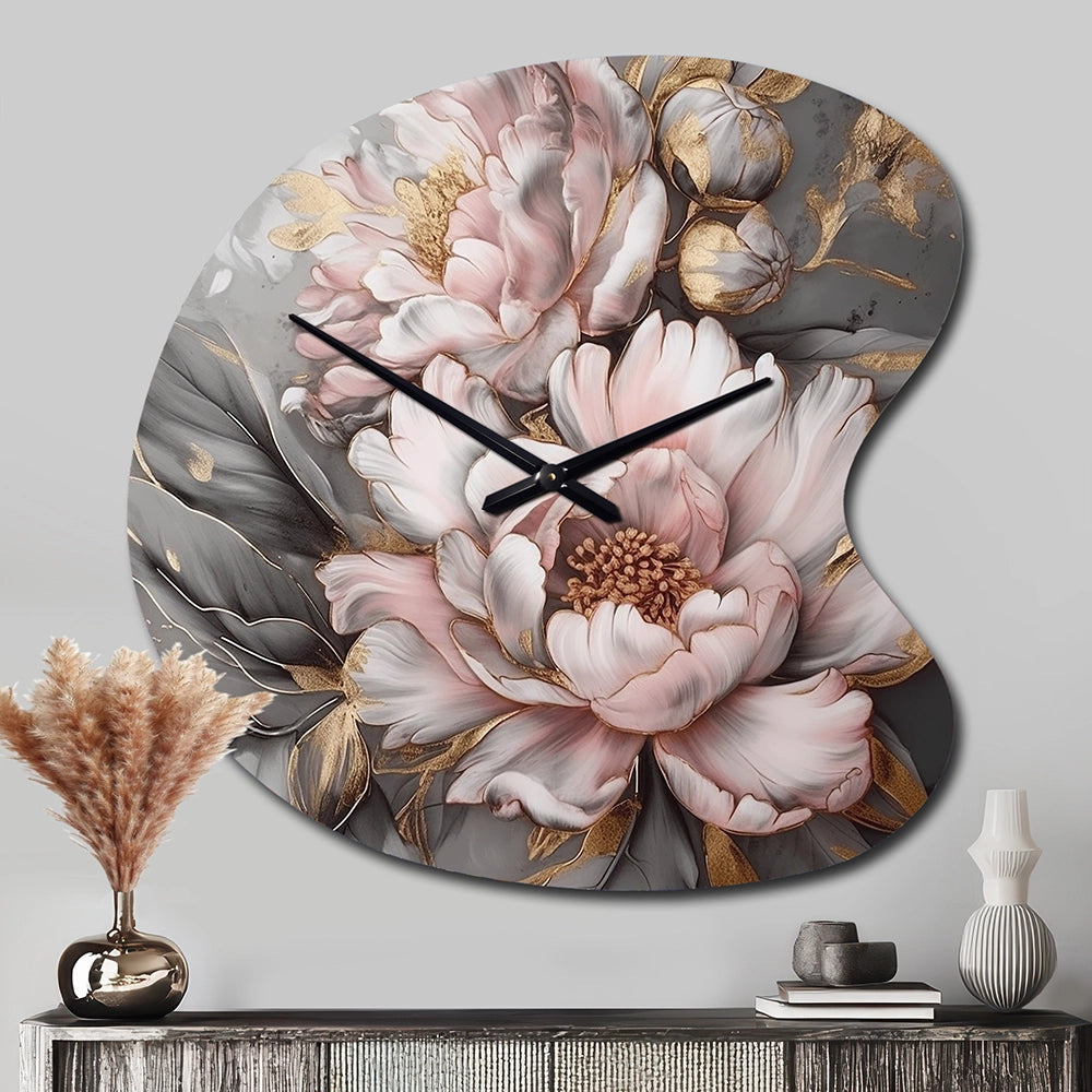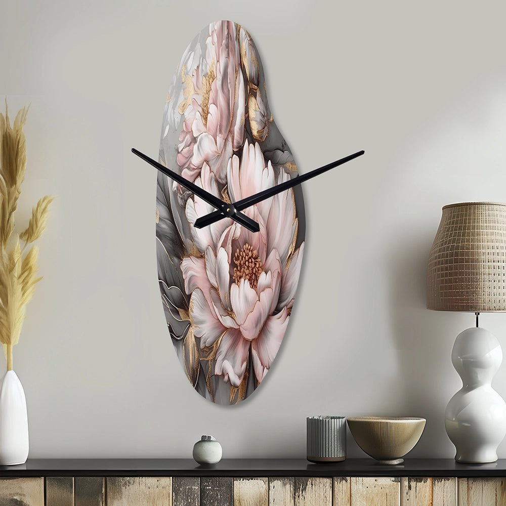 Pink Grey Peonies Elegance I - Asymmetric Metal Wall Clock