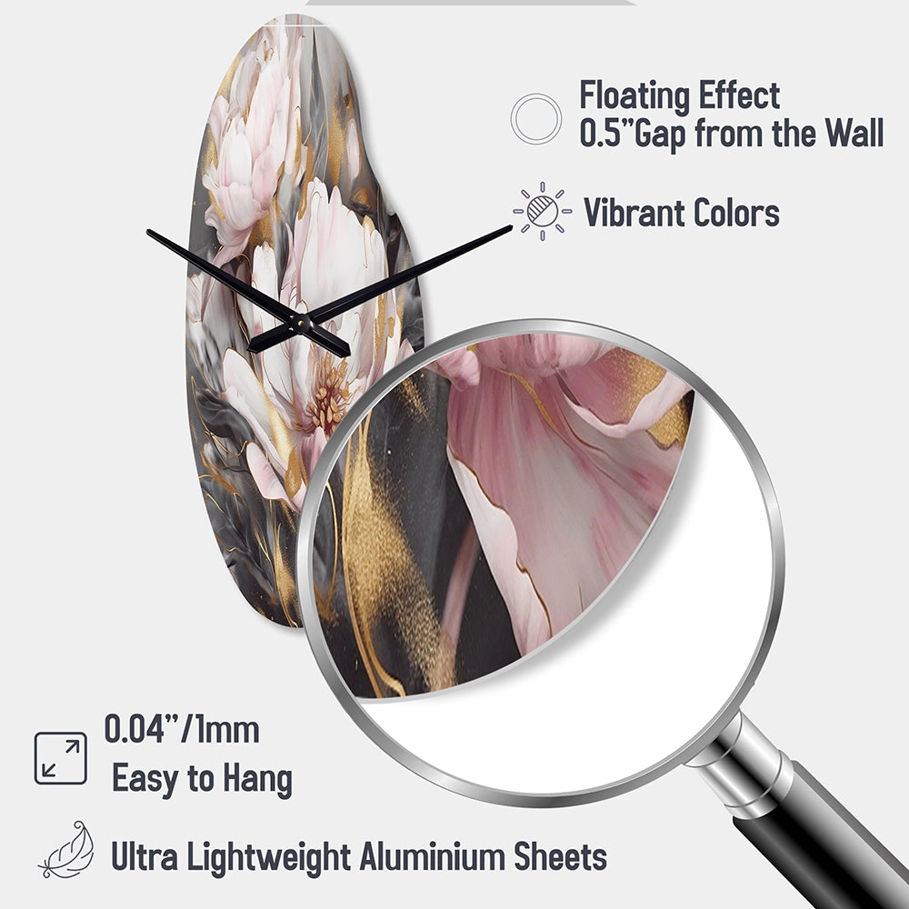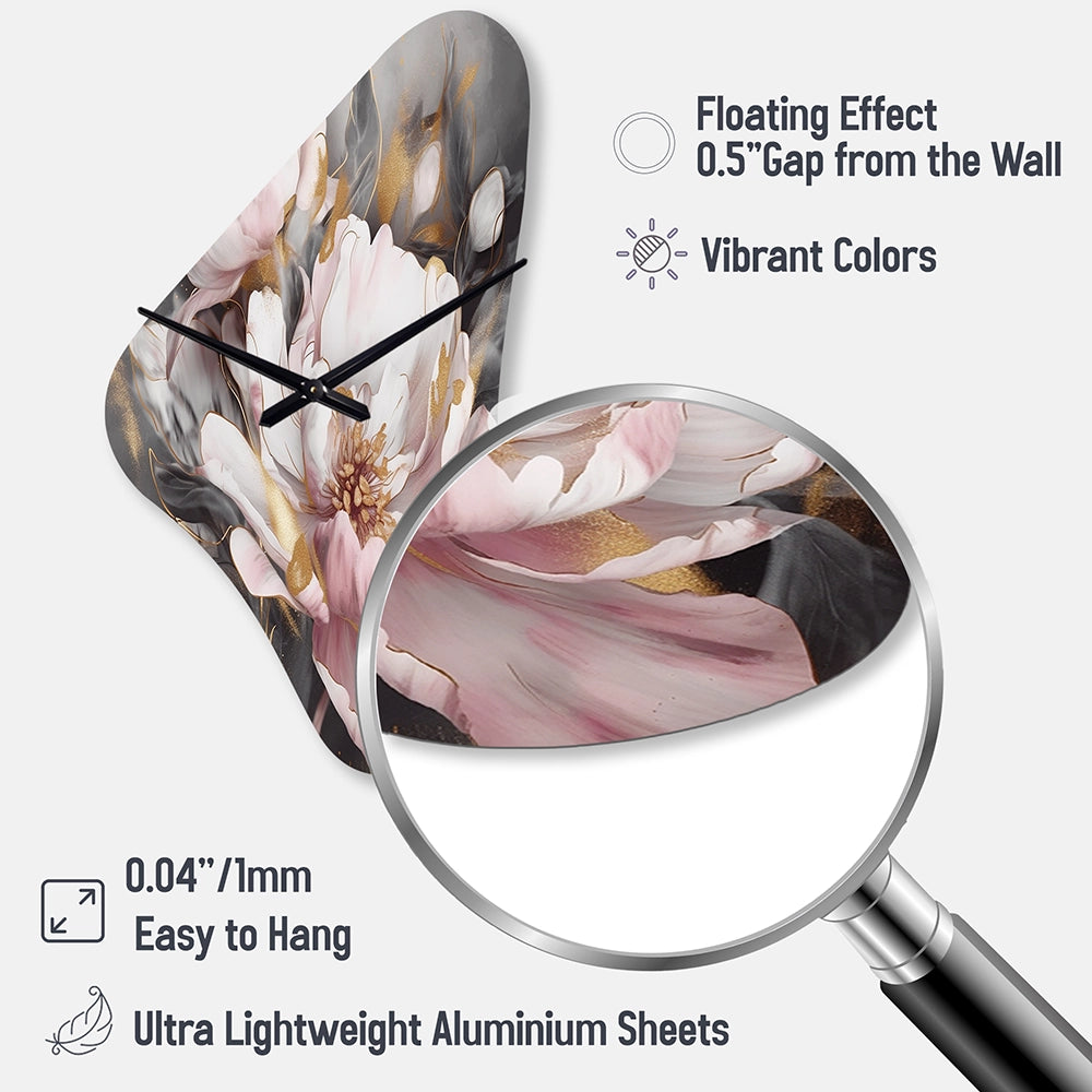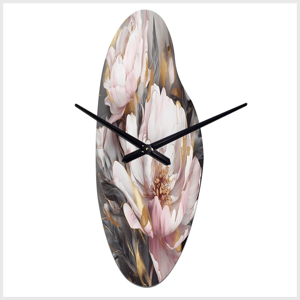 Pink Grey Peonies Elegance II - Asymmetric Metal Wall Clock