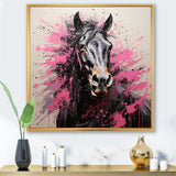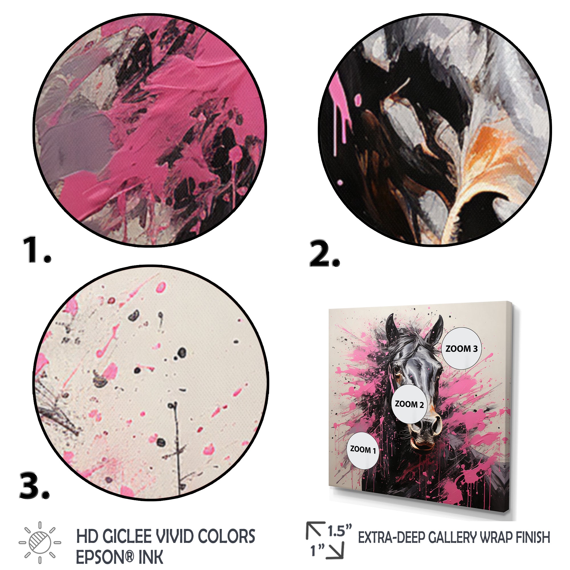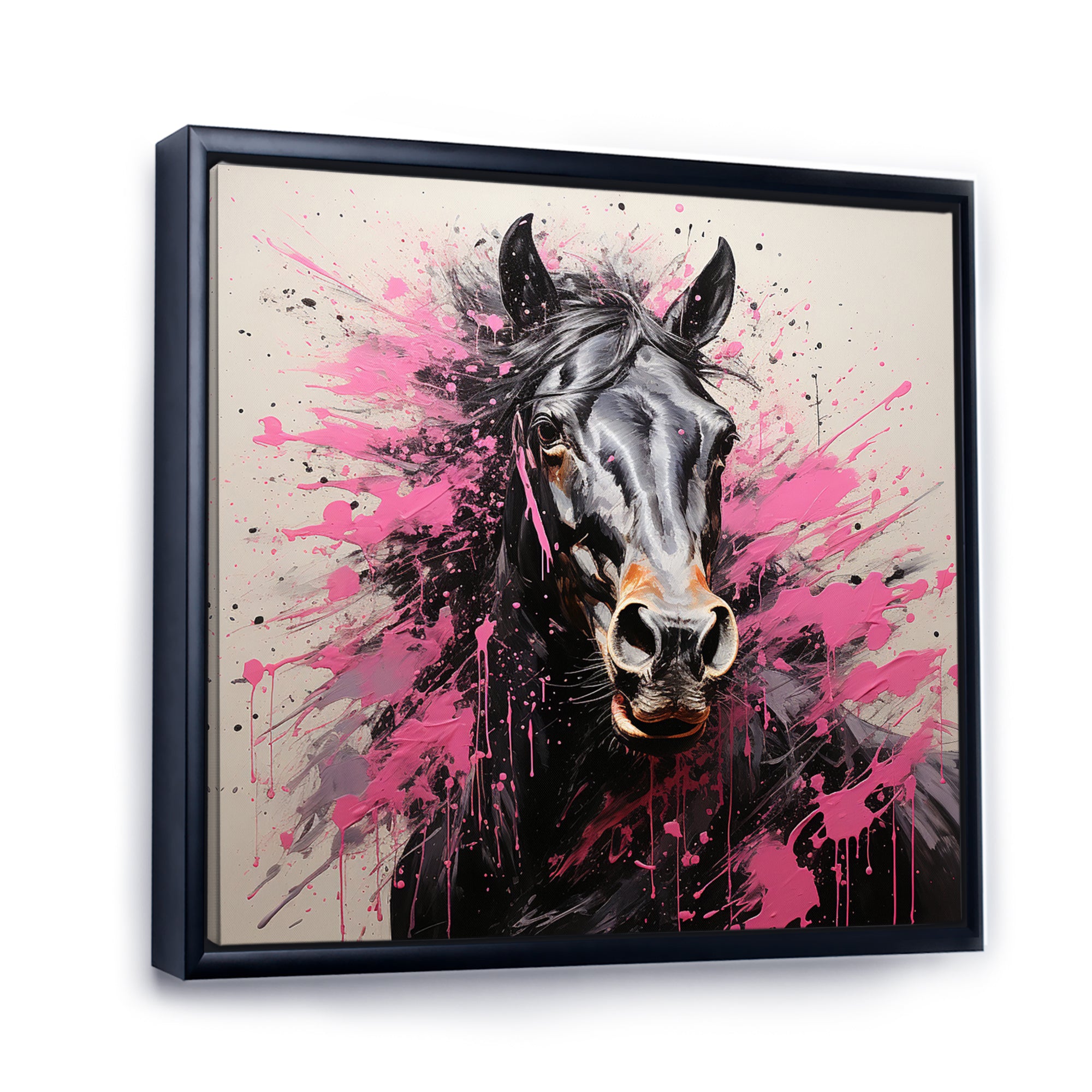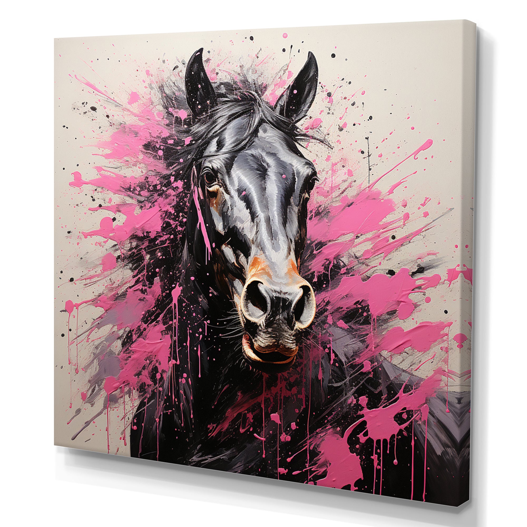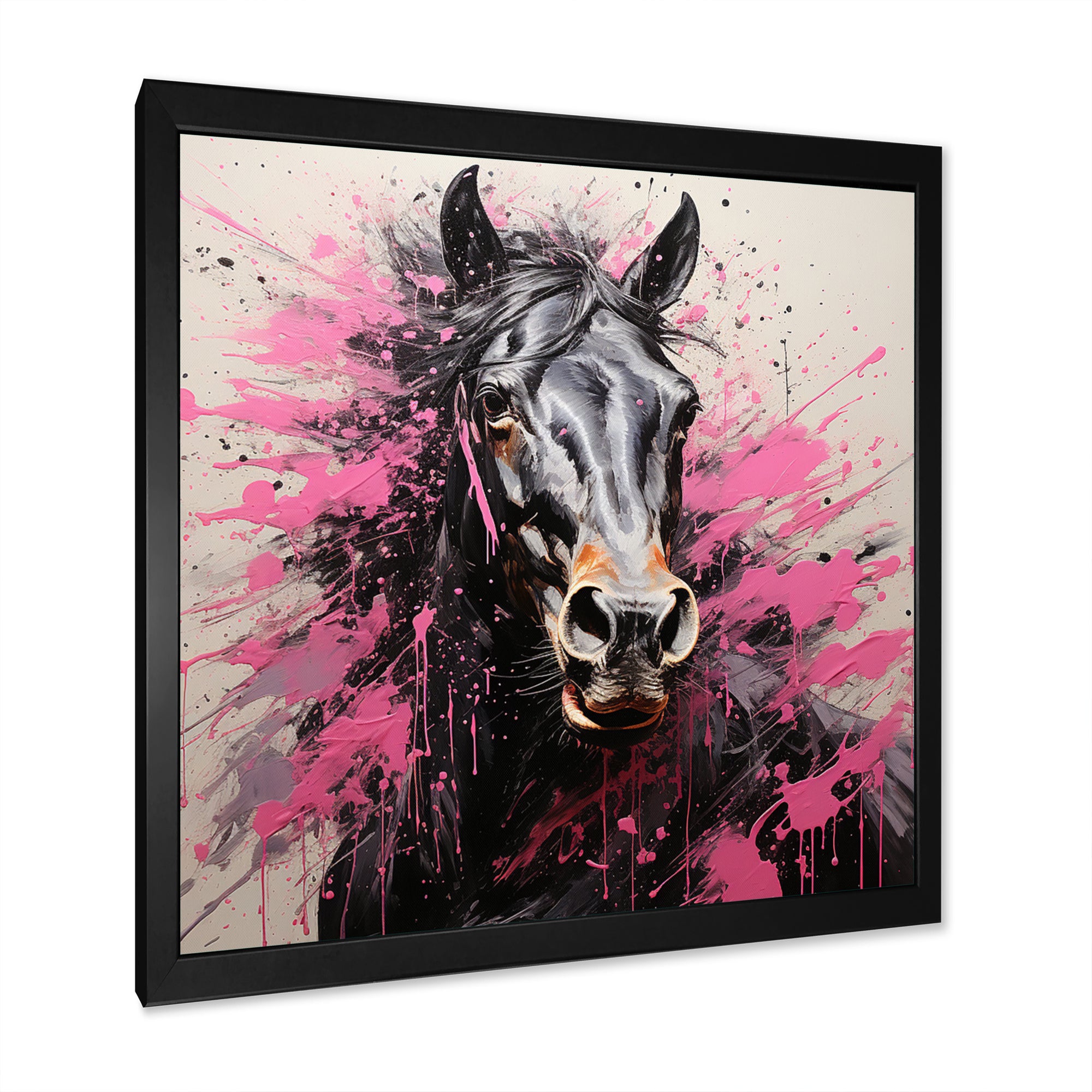 Black Pink Horse Vibrant Equine Pointillism - Horse Wall Decor