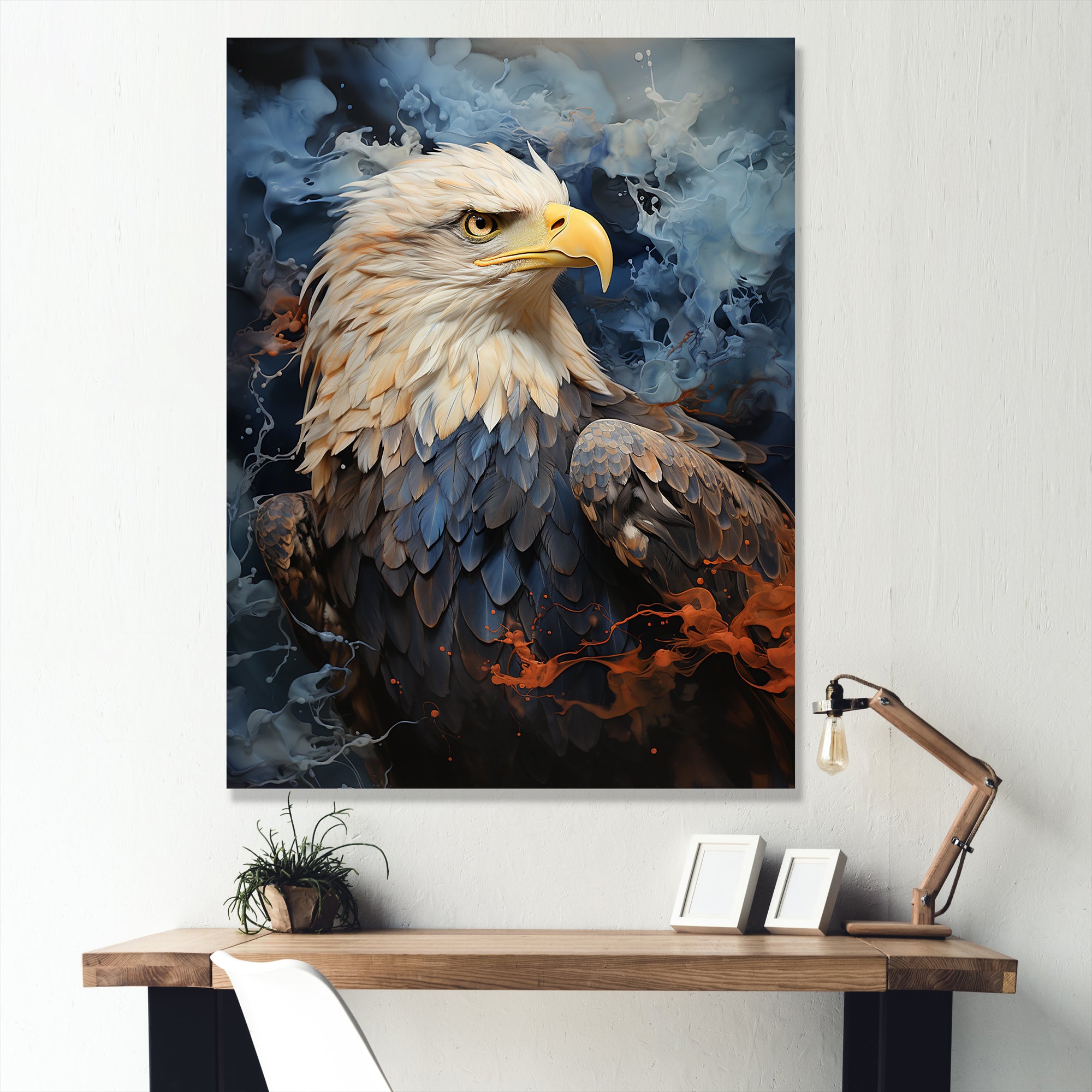 This beautiful Blue and Black Abstract Eagle Canvas Art is printed using the highest quality fade-resistant ink on canvas. Every one of our fine art giclee canvas prints is printed on premium quality cotton canvas, using the finest quality inks which will not fade over time. Each giclee print is stretched tightly over a 1-inch wood sub frame for small size prints or a 1.5-inch wood subframe for large size prints ensuring the canvas is taught and does not buckle. This canvas art print is gallery-wrapped (the design continues on the sides), giving it a real art gallery feel. All of our canvas prints are carefully packaged with plastic protection, fragile labeling, and sturdy boxes to ensure safe delivery. Every canvas print arrives ready to hang on the wall, with the hanging kits included.