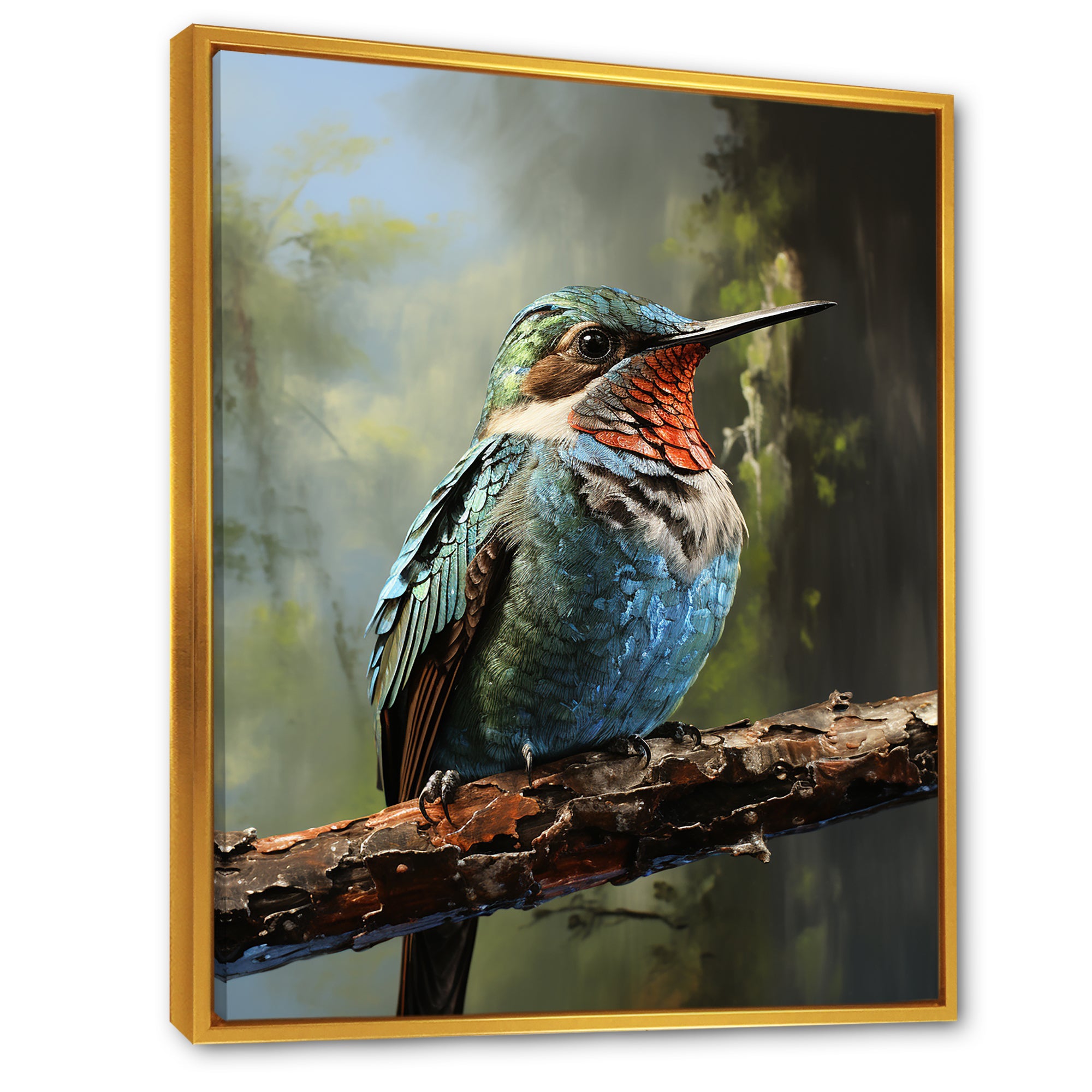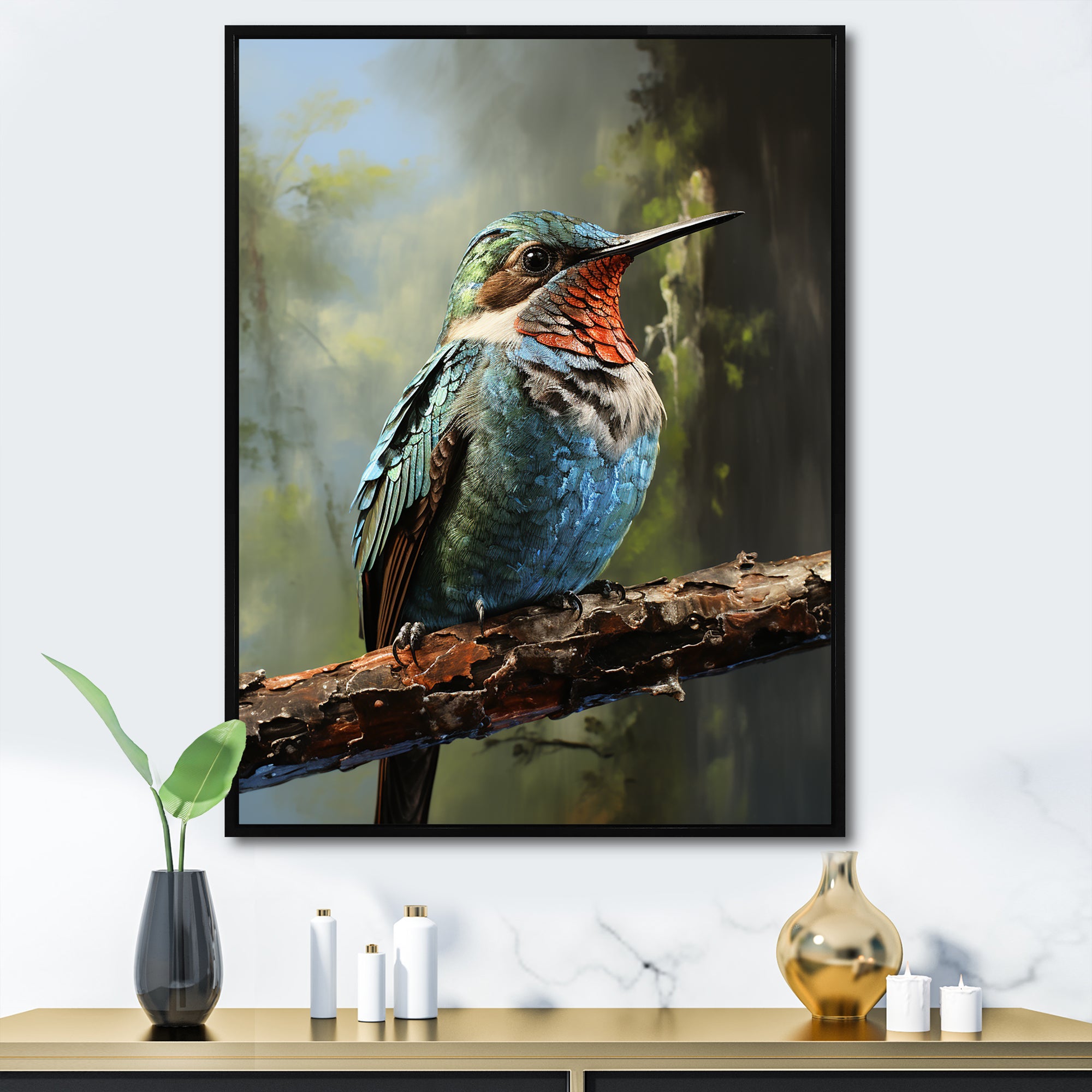 Blue and green Radiant hummingbird Beauty - Hummingbird Framed Canvas Art