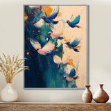 Blue And Yellow Bird Shuttlecock Frenzy - Blue Bird Wall Art