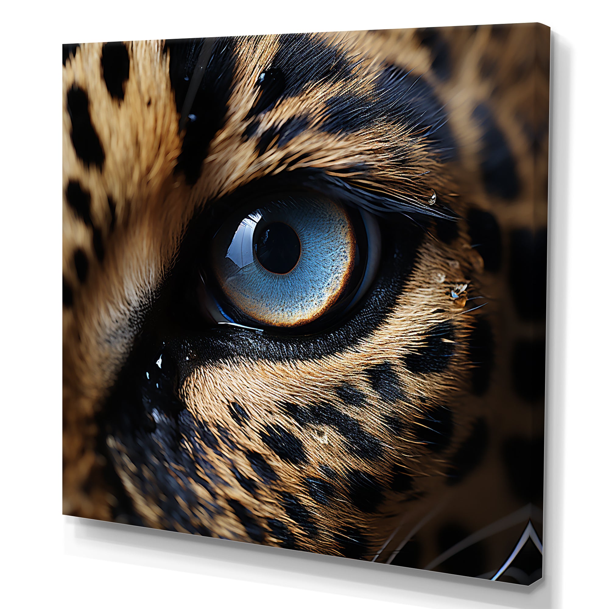 This beautiful Blue Eyes Of The Jungle Canvas Art is printed using the highest quality fade-resistant ink on canvas. Every one of our fine art giclee canvas prints is printed on premium quality cotton canvas, using the finest quality inks which will not fade over time. Each giclee print is stretched tightly over a 1-inch wood sub frame for small size prints or a 1.5-inch wood subframe for large size prints ensuring the canvas is taught and does not buckle. This canvas art print is gallery-wrapped (the design continues on the sides), giving it a real art gallery feel. All of our canvas prints are carefully packaged with plastic protection, fragile labeling, and sturdy boxes to ensure safe delivery. Every canvas print arrives ready to hang on the wall, with the hanging kits included.