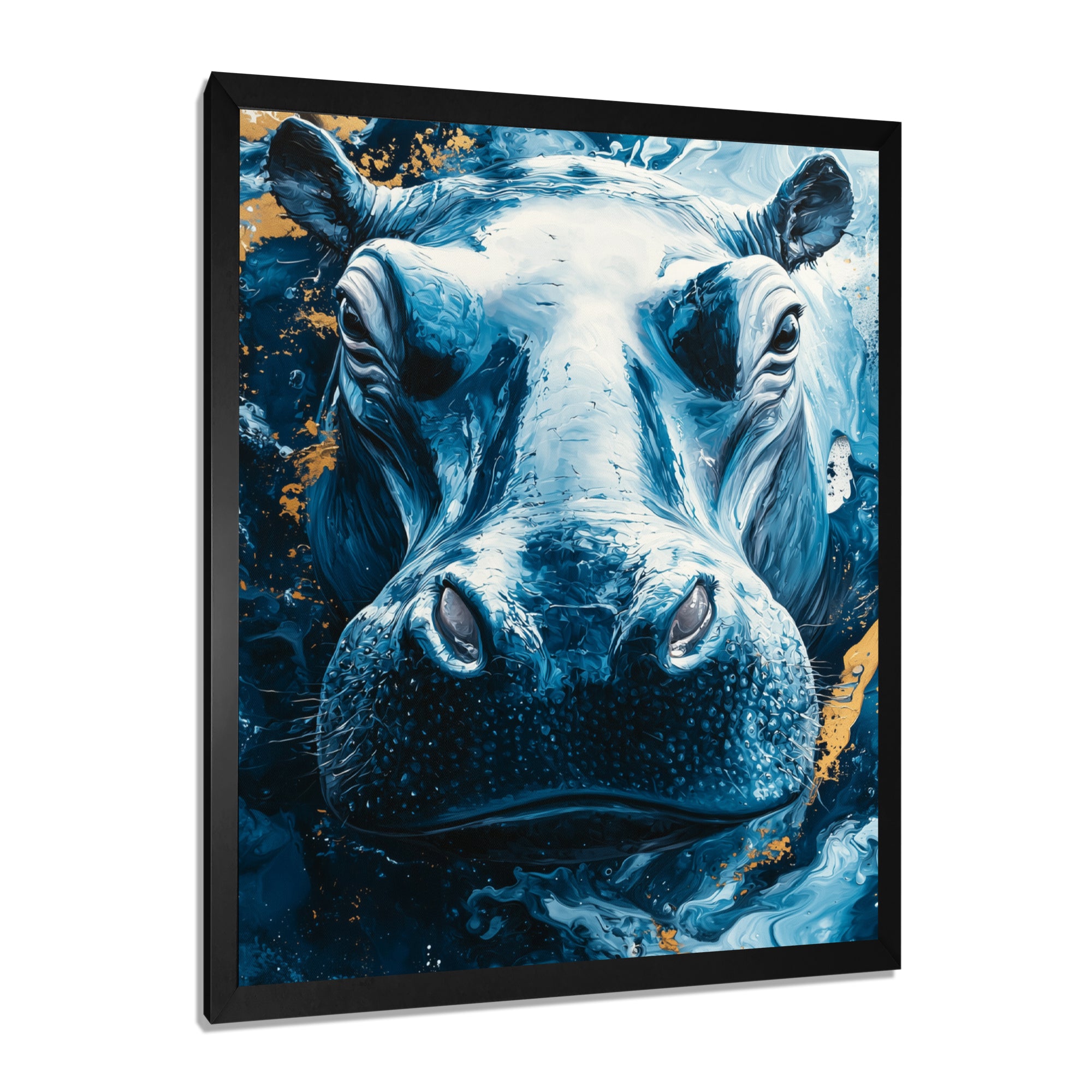 Blue Hippo Portrait - Hippopotamus Bedroom Wall Art