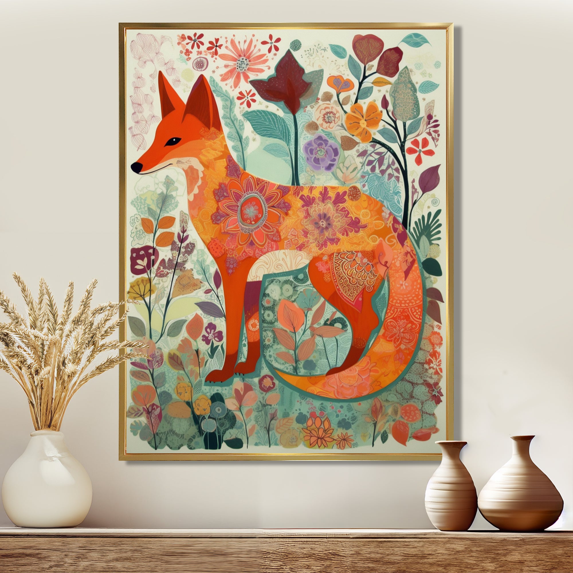 Boho Fox In Flower Forest - Orange Fox Wall Art