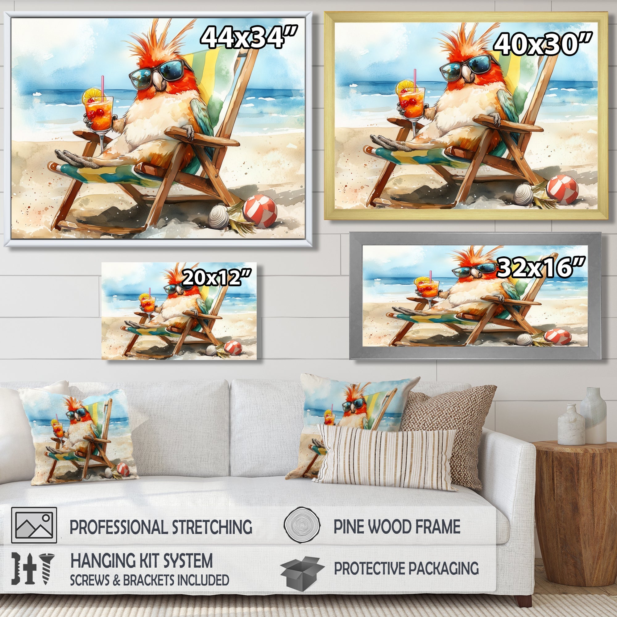 Cockatiel On The Beach Lounging - Coastal Animal Canvas Wall Art