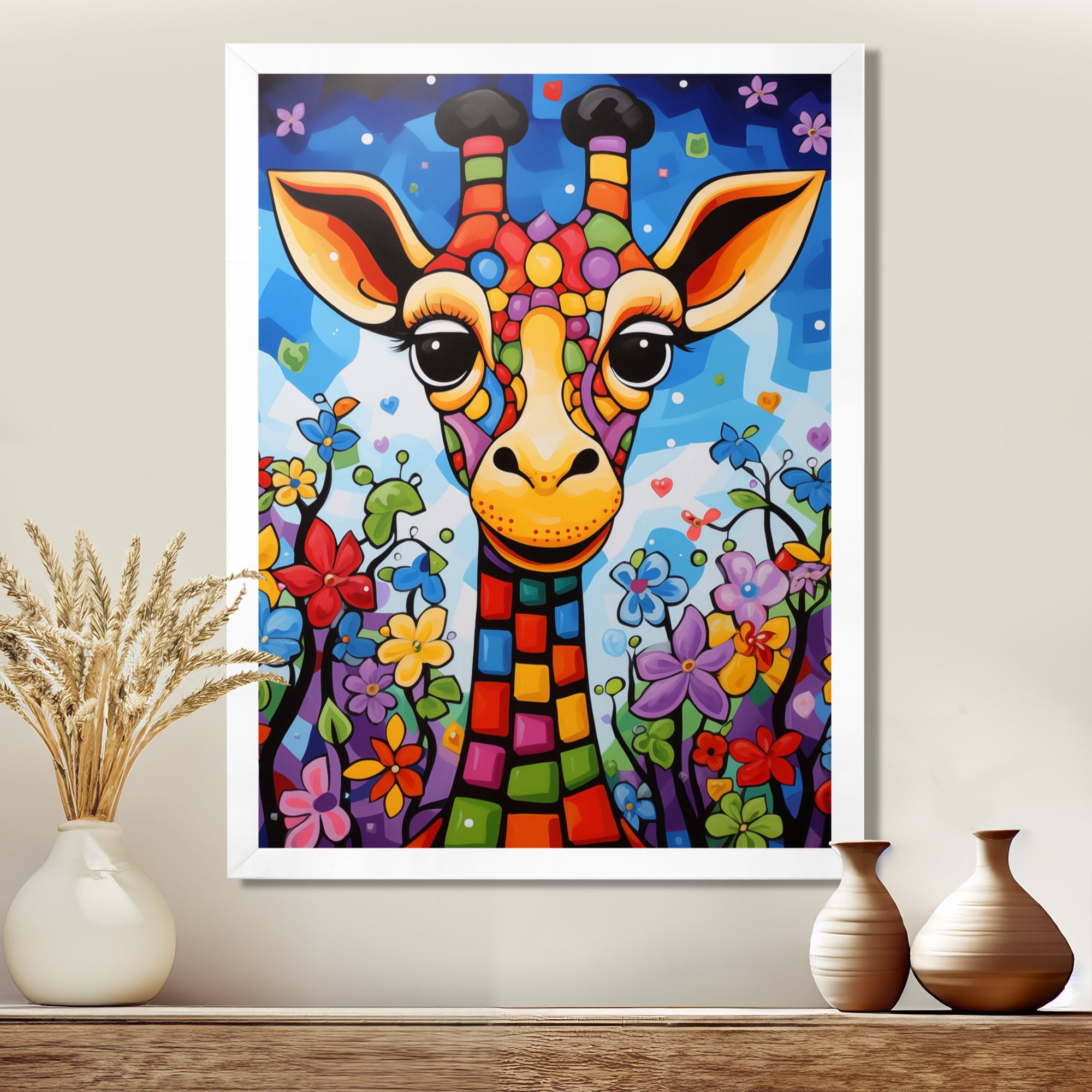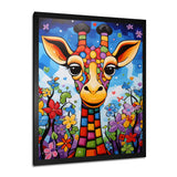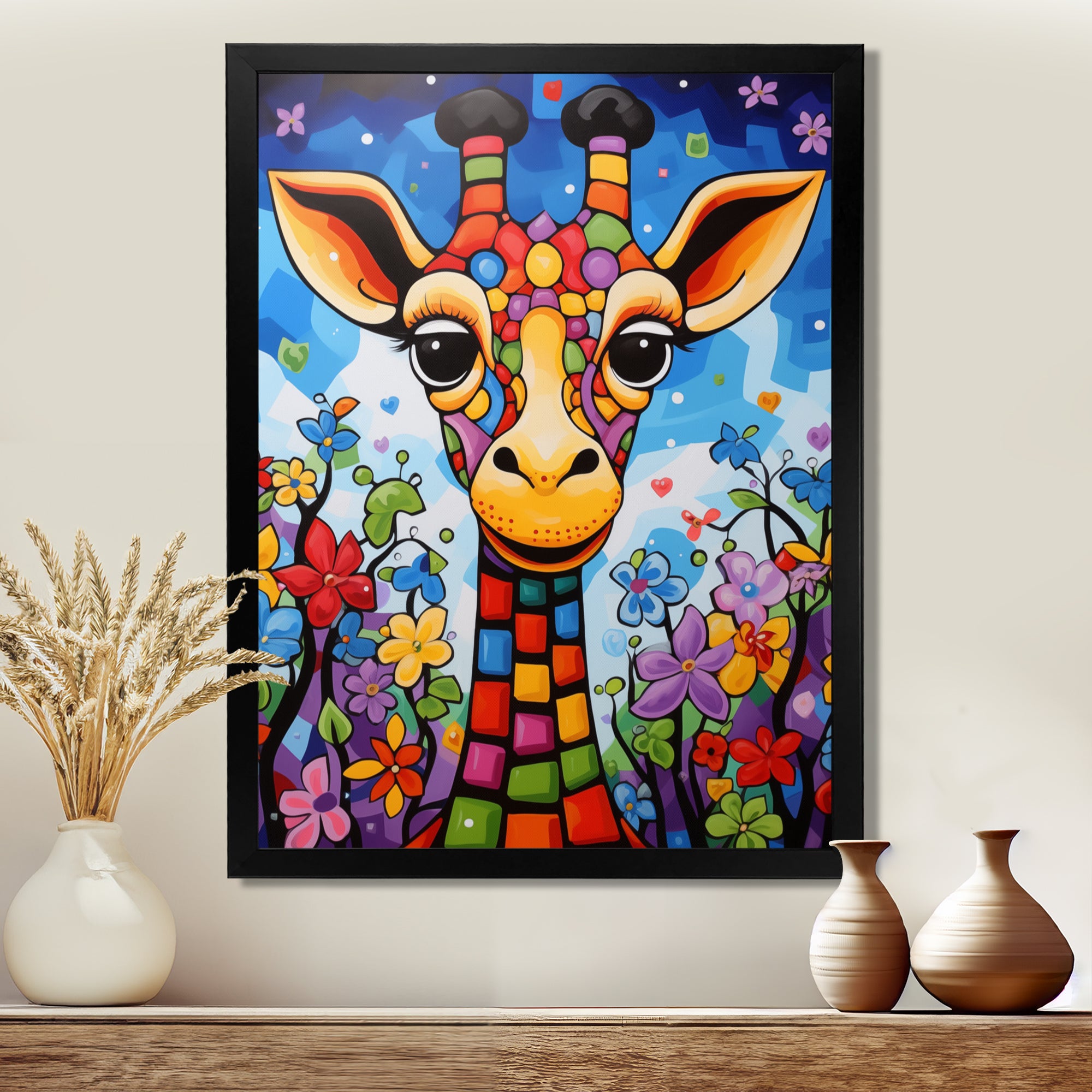 Colorful cute Giraffe in jungle landscape - Giraffe Framed Canvas Art