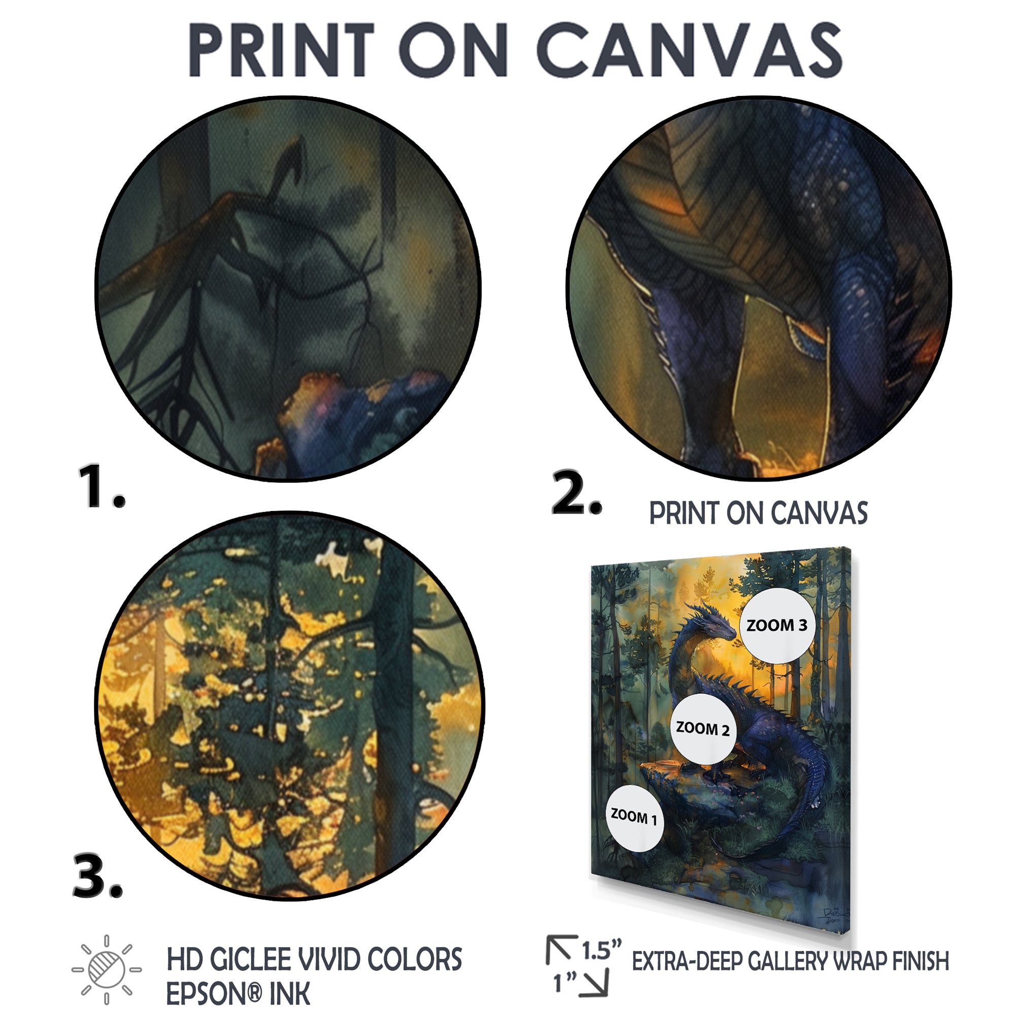 This beautiful Darkness and Mystic Forest Dragon Canvas Art is printed using the highest quality fade-resistant ink on canvas. Every one of our fine art giclee canvas prints is printed on premium quality cotton canvas, using the finest quality inks which will not fade over time. Each giclee print is stretched tightly over a 1-inch wood sub frame for small size prints or a 1.5-inch wood subframe for large size prints ensuring the canvas is taught and does not buckle. This canvas art print is gallery-wrapped (the design continues on the sides), giving it a real art gallery feel. All of our canvas prints are carefully packaged with plastic protection, fragile labeling, and sturdy boxes to ensure safe delivery. Every canvas print arrives ready to hang on the wall, with the hanging kits included.