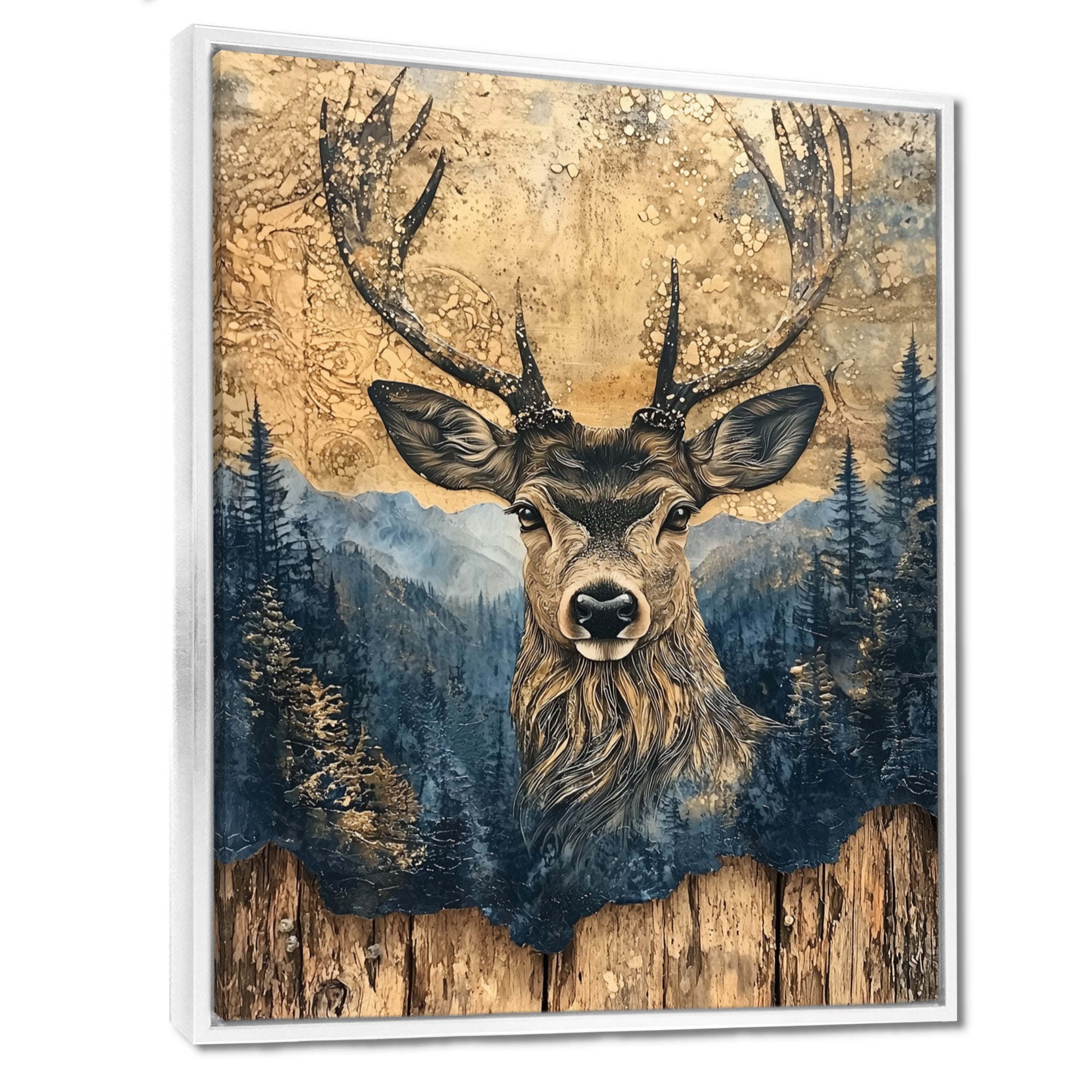 Deer Portrait With Chinese Ink Landscape - Deer Living Room Wall Art