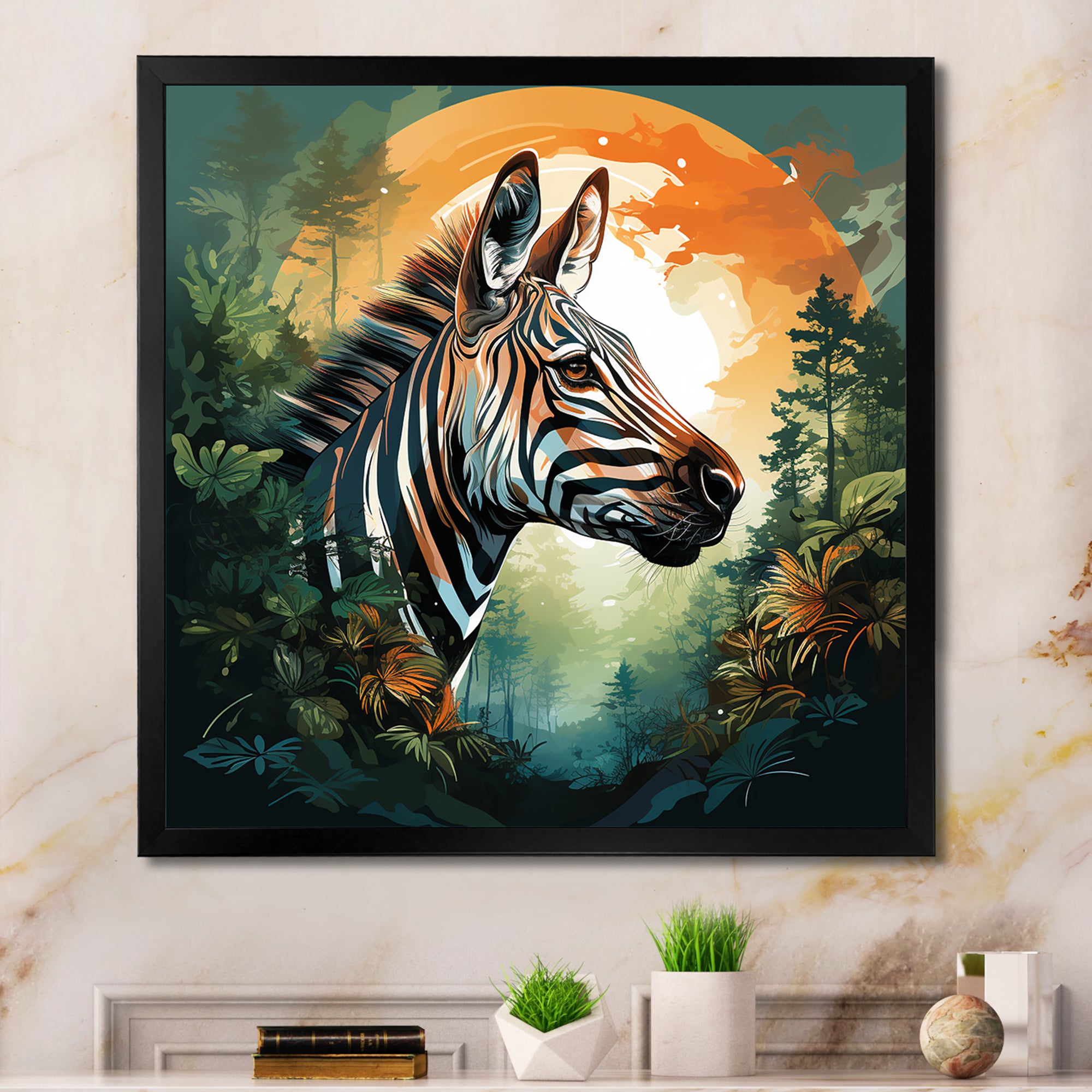 Elegant sunset Zebra portrait - Zebra Framed Canvas Art