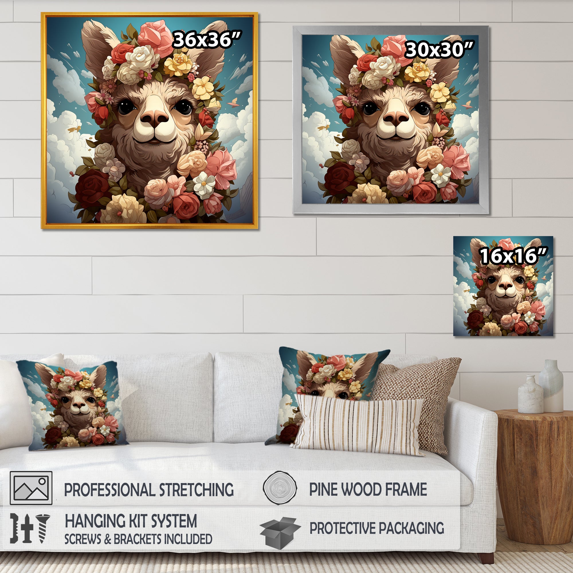 Flower crown Llama beauty - Llama Framed Canvas Art