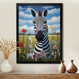 Funny Zebra meadows cartoon Portrait - Zebra Wall Decor