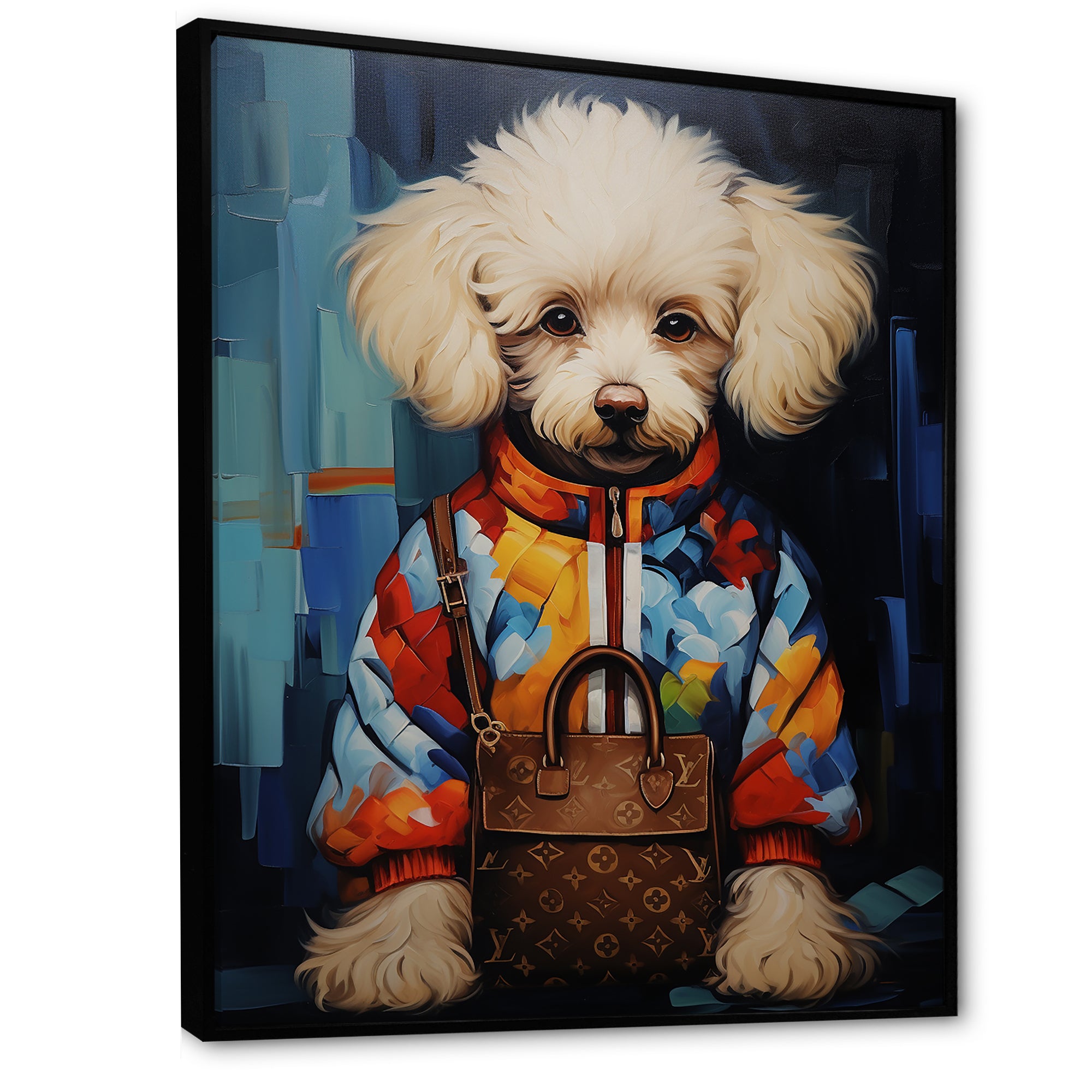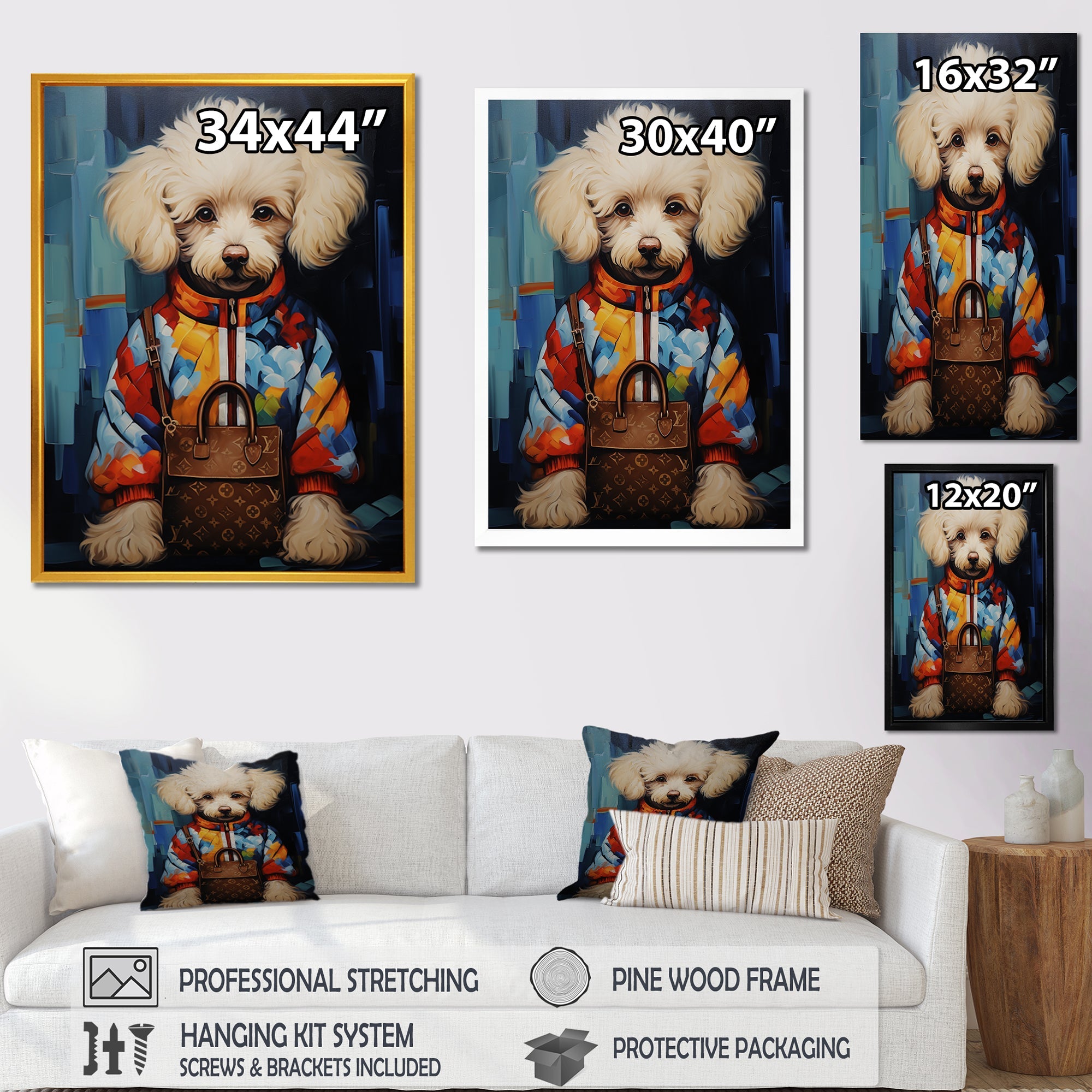 This beautiful Glam Dog with fashion brand Canvas Art is printed using the highest quality fade-resistant ink on canvas. Every one of our fine art giclee canvas prints is printed on premium quality cotton canvas, using the finest quality inks which will not fade over time. Each giclee print is stretched tightly over a 1-inch wood sub frame for small size prints or a 1.5-inch wood subframe for large size prints ensuring the canvas is taught and does not buckle. This canvas art print is gallery-wrapped (the design continues on the sides), giving it a real art gallery feel. All of our canvas prints are carefully packaged with plastic protection, fragile labeling, and sturdy boxes to ensure safe delivery. Every canvas print arrives ready to hang on the wall, with the hanging kits included.