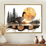 Goose In Sunrise Forest Lake Landscape - Goose Wall Art Prints